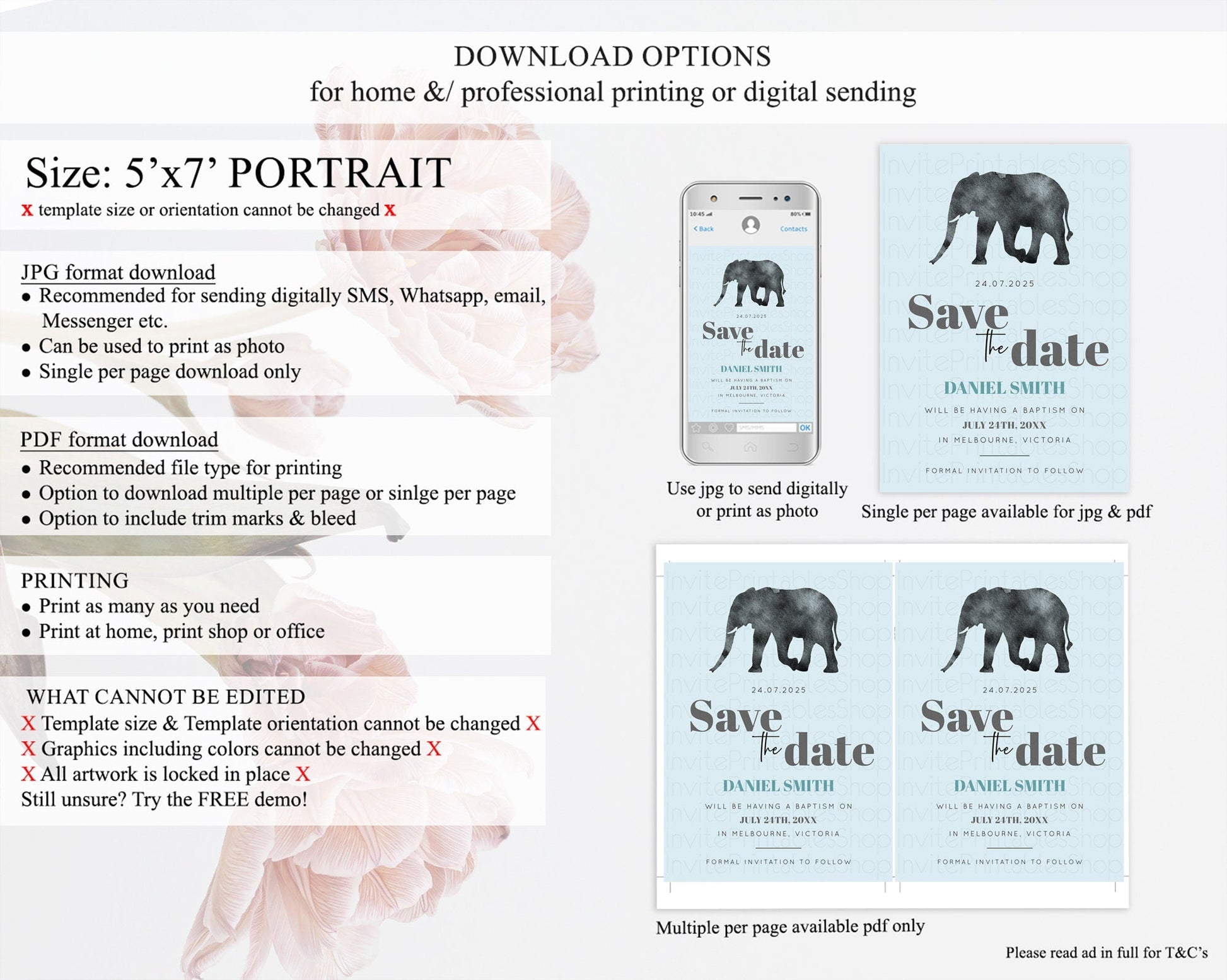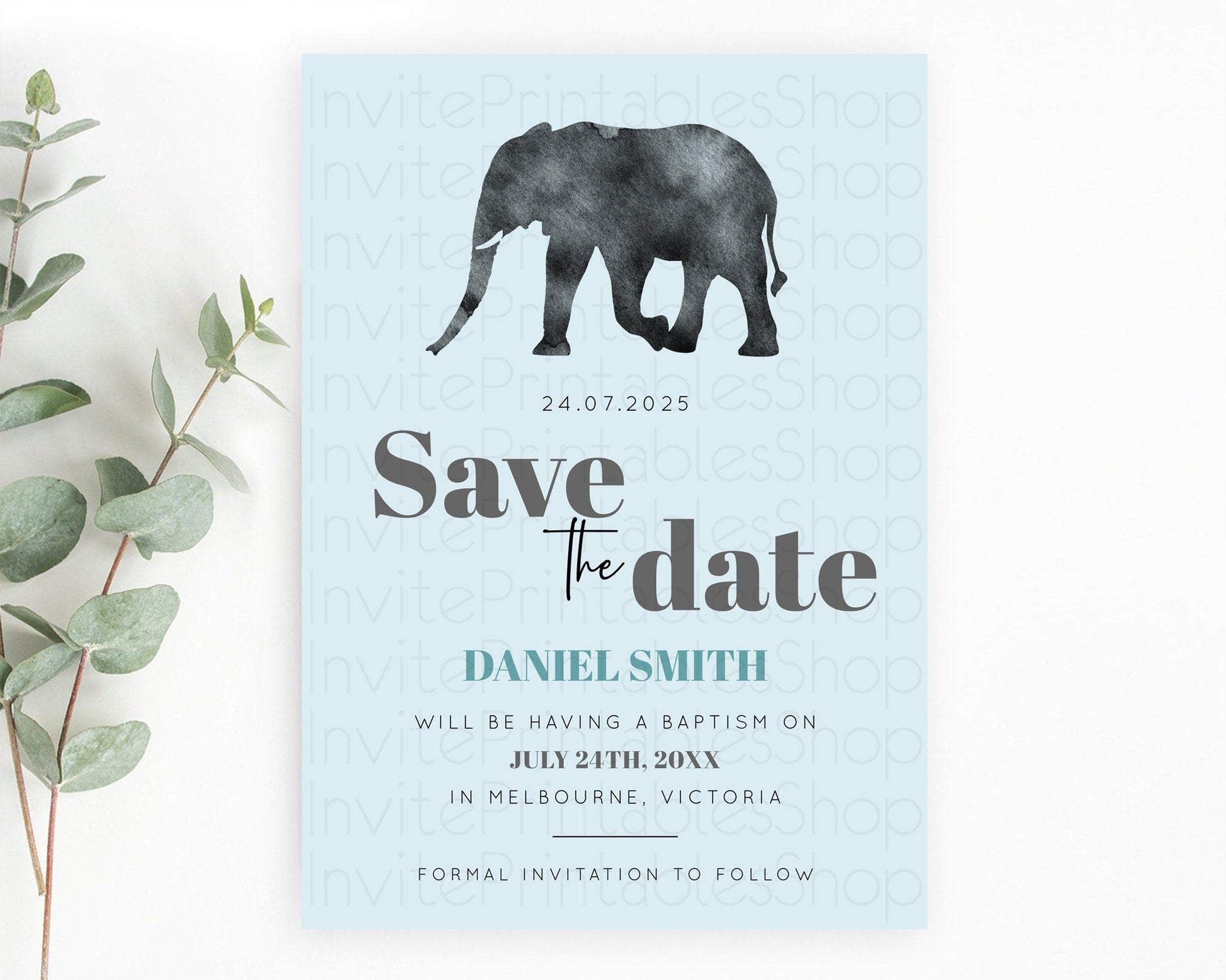 Elephant Save The Date Template Elephant Safari Adventure Party Dried Palm Fern Zoo 1st Birthday Baptism Baby Shower Bridal Shower D10802