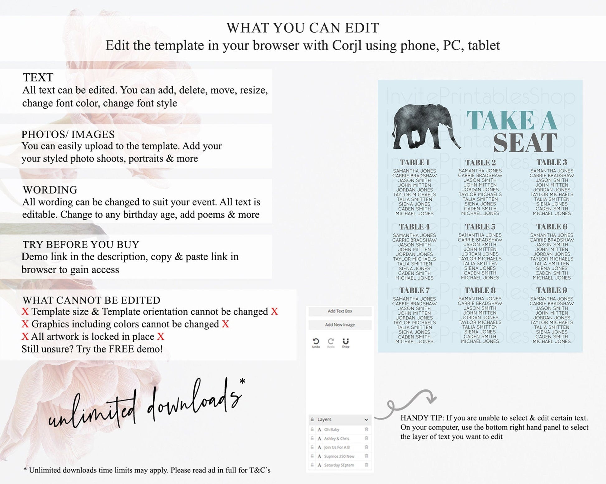 • After purchase, Corjl emails your editing link. Allow up to 15 minutes for delivery.
