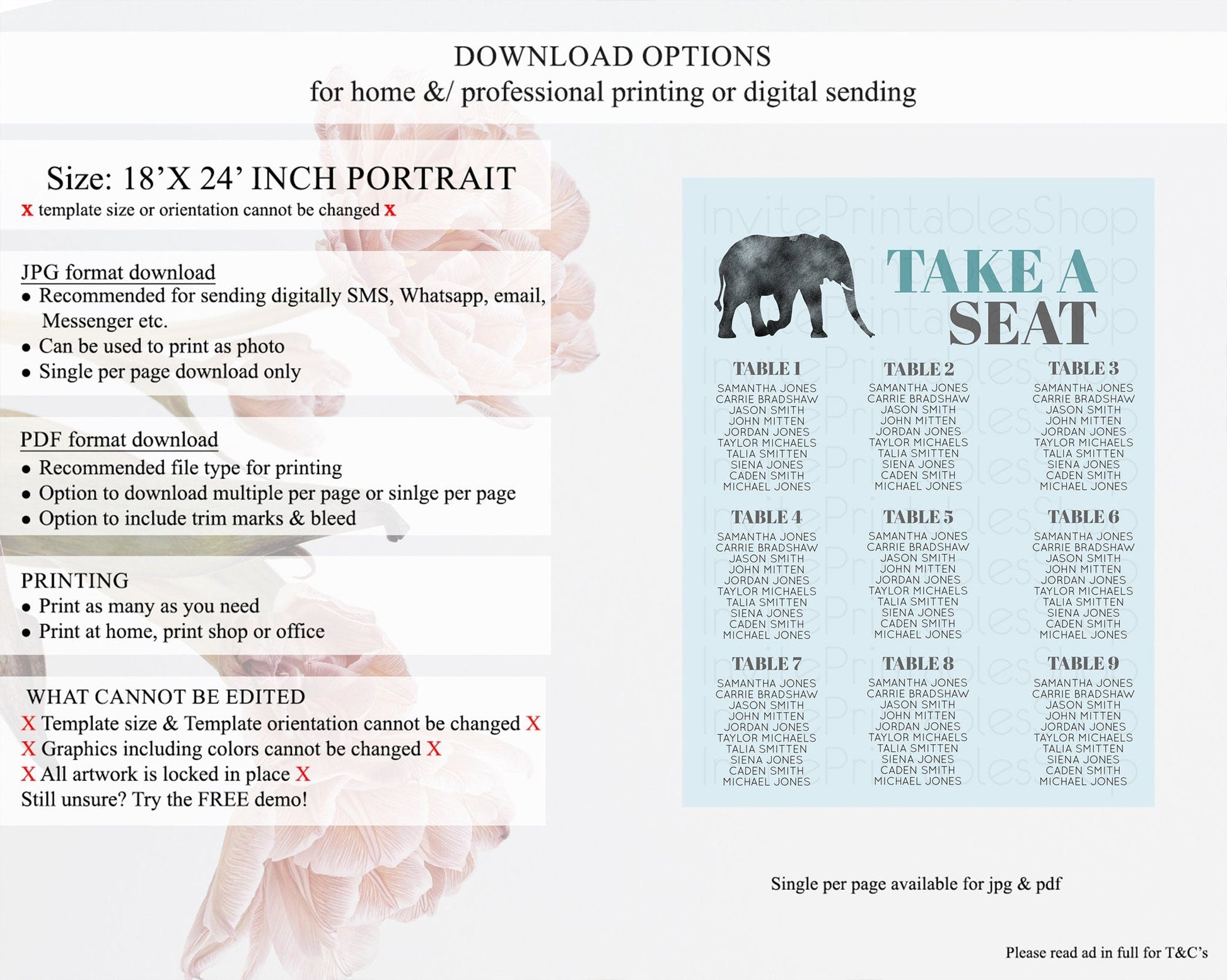 • Template size & orientation cannot be changed. Please use the demo link to confirm this product suits your needs.