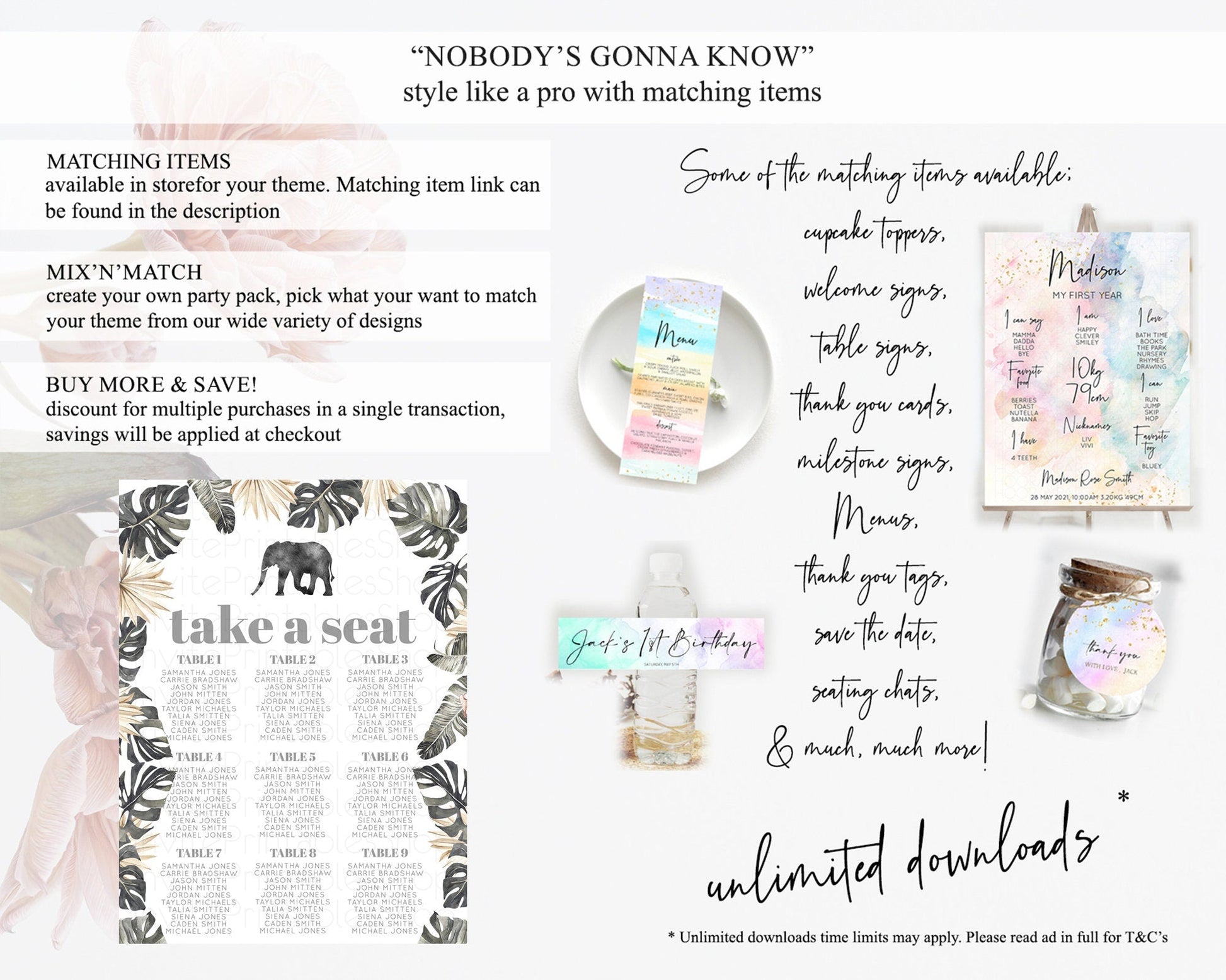 Elephant Seating Chart Elephant Seating Sign Elephant Party Safari Adventure Elephant Take A Seat Elephant Decor Zoo Fern Palm Leaf D10803