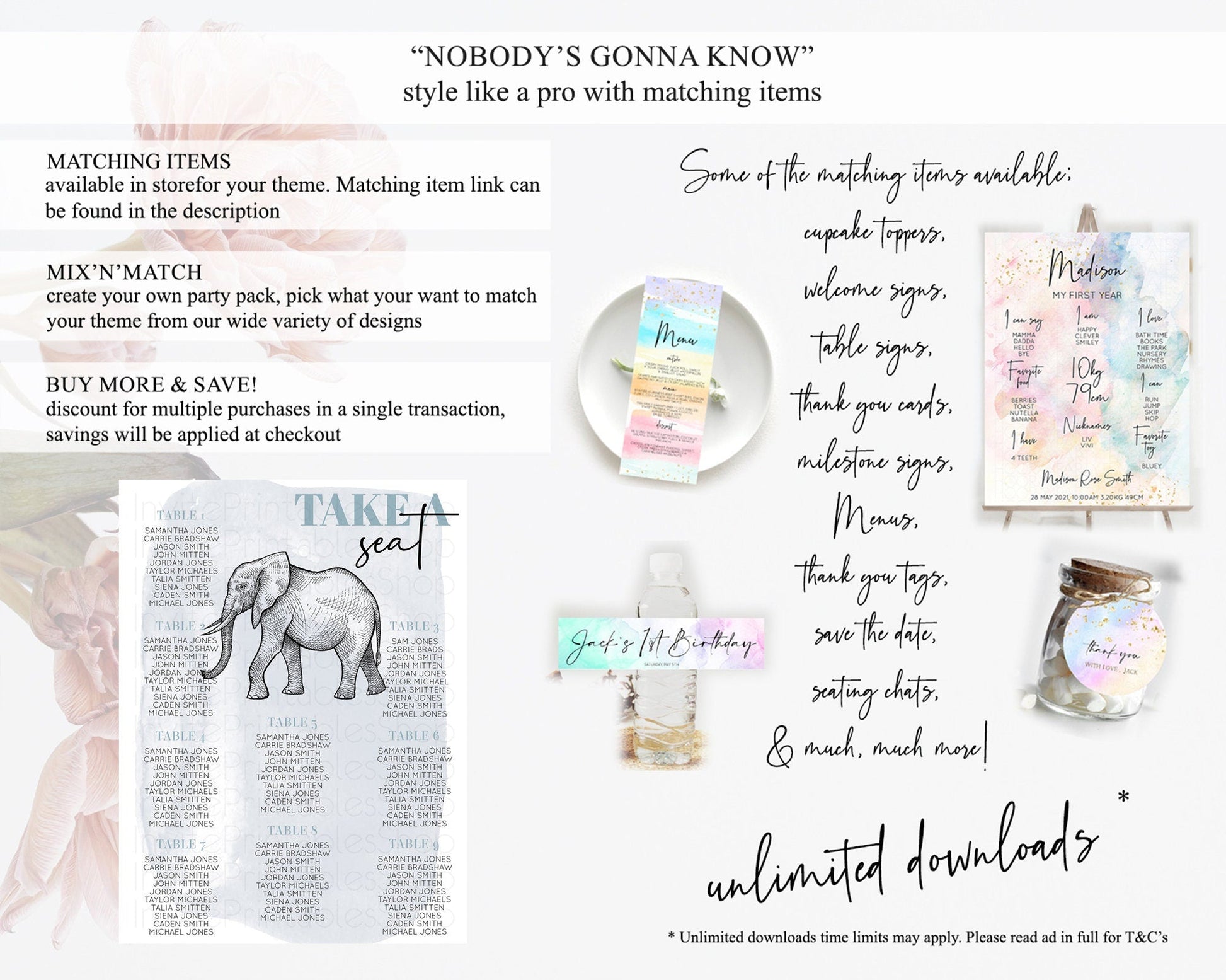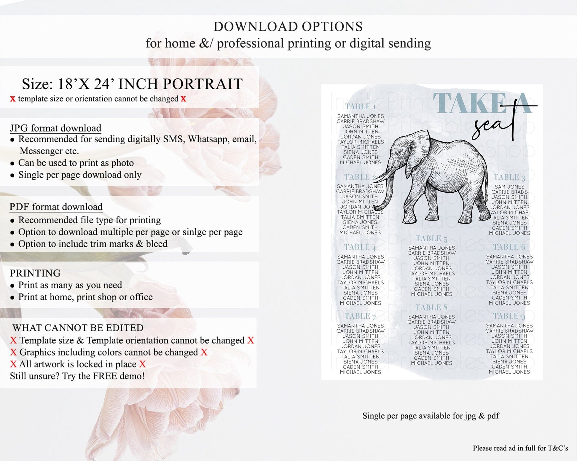Elephant Seating Chart Elephant Seating Sign Elephant Party Safari Adventure Elephant Take A Seat Elephant Decor Zoo Fern Palm Leaf D10811