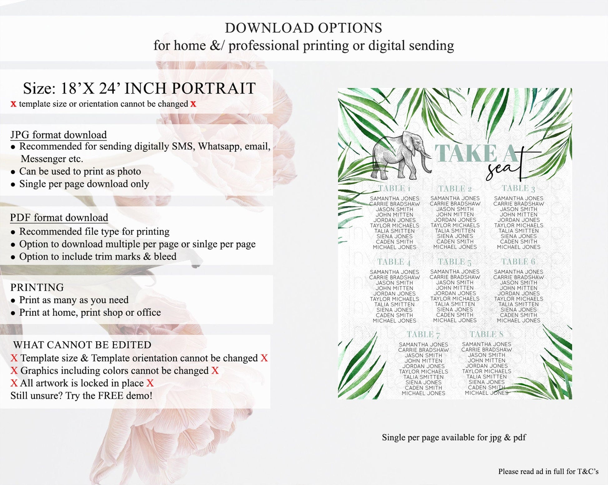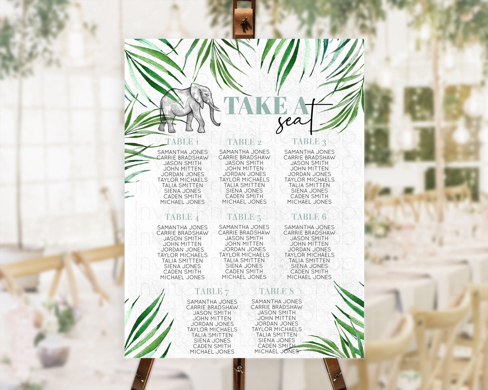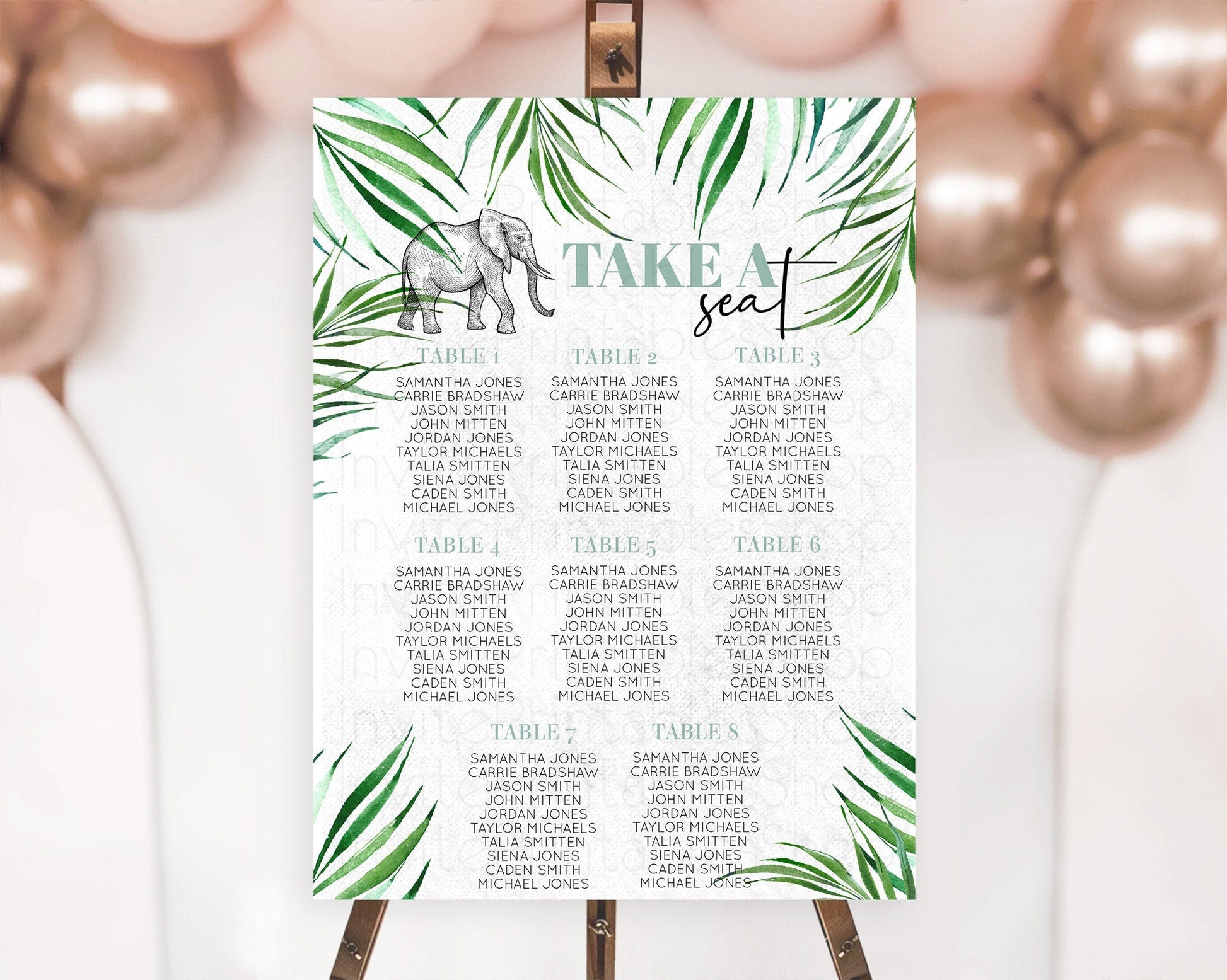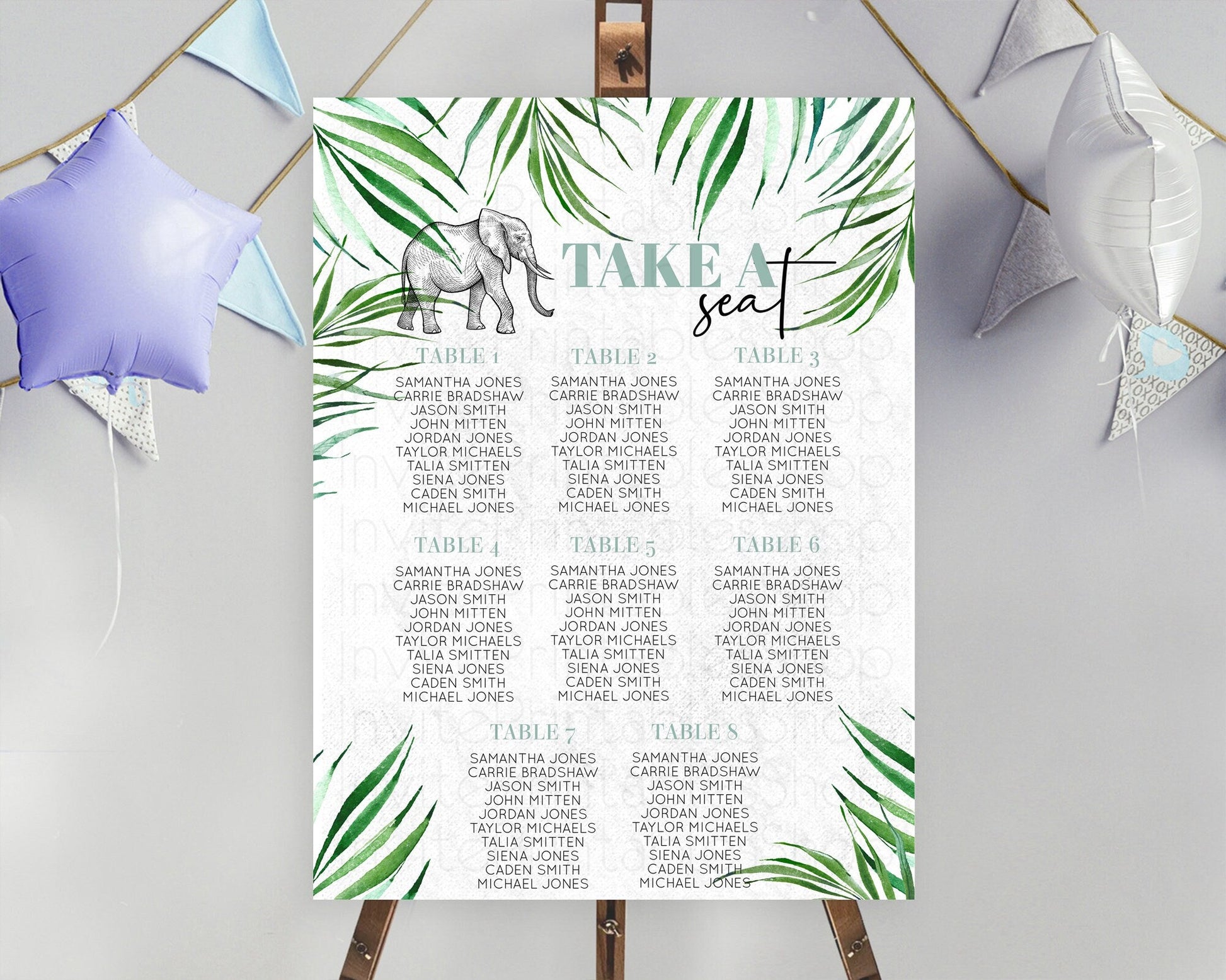 Elephant Seating Chart Elephant Seating Sign Elephant Party Safari Adventure Elephant Take A Seat Elephant Decor Zoo Fern Palm Leaf D10850