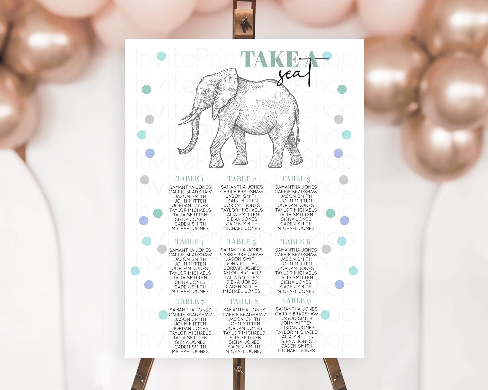 Elephant Seating Chart Elephant Seating Sign Elephant Party Safari Adventure Elephant Take A Seat Elephant Decor Zoo Fern Palm Leaf D10859