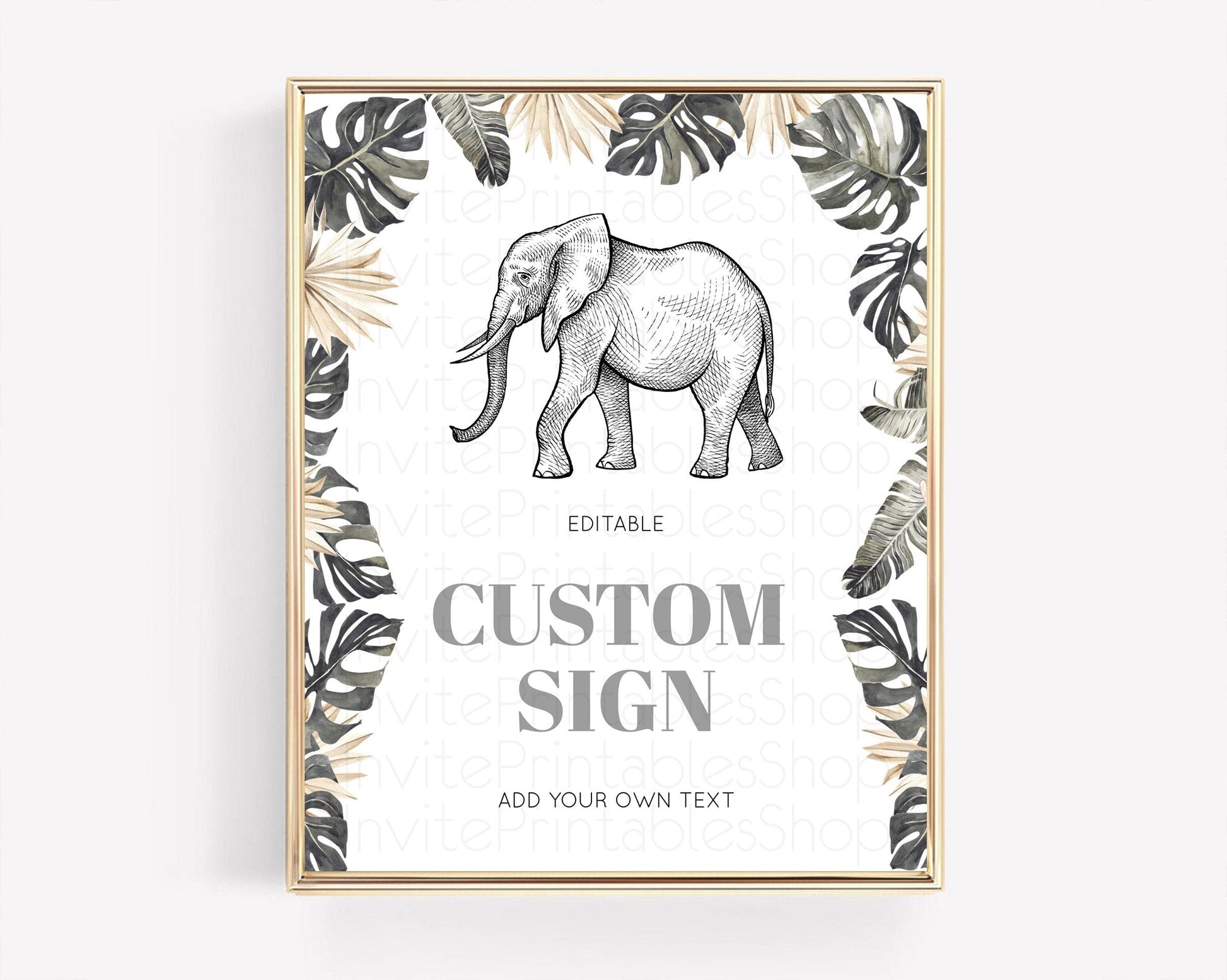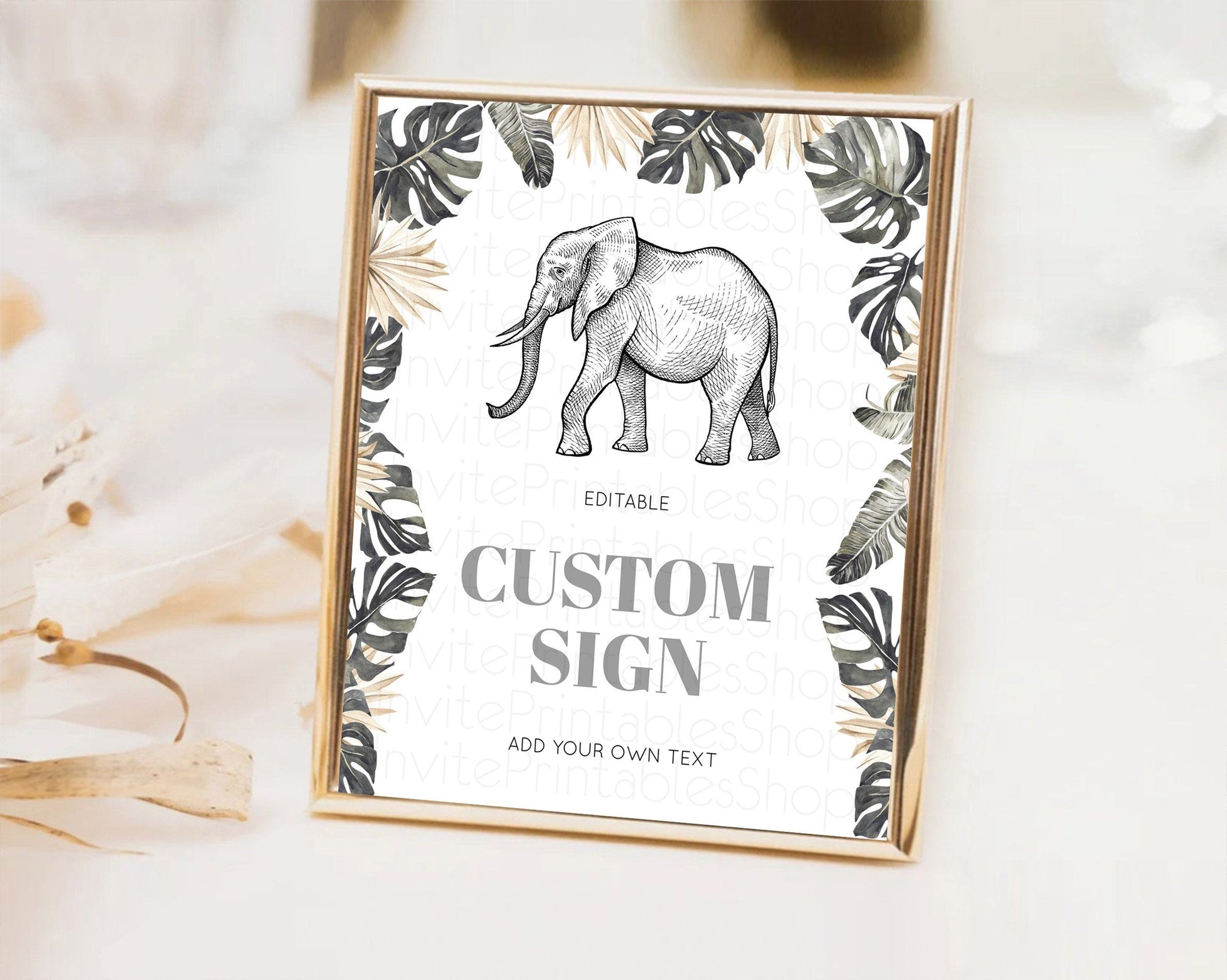Elephant Sign Elephant Safari Adventure Party Table Sign Decor Dried Palm Fern Zoo 1st Birthday Baptism Baby Shower Bridal Shower D10806