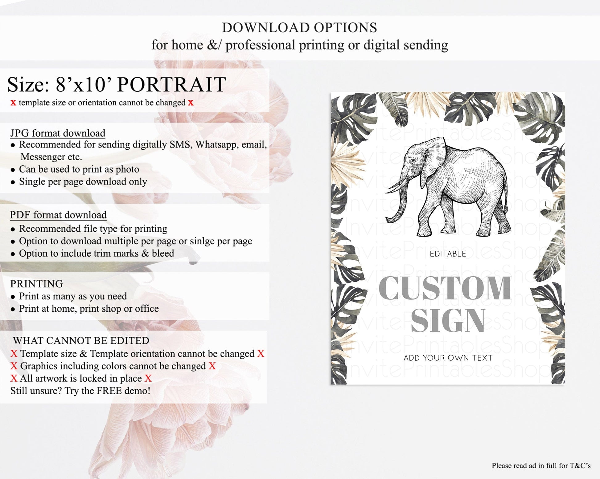 • Template size & orientation cannot be changed. Please use the demo link to confirm this product suits your needs.