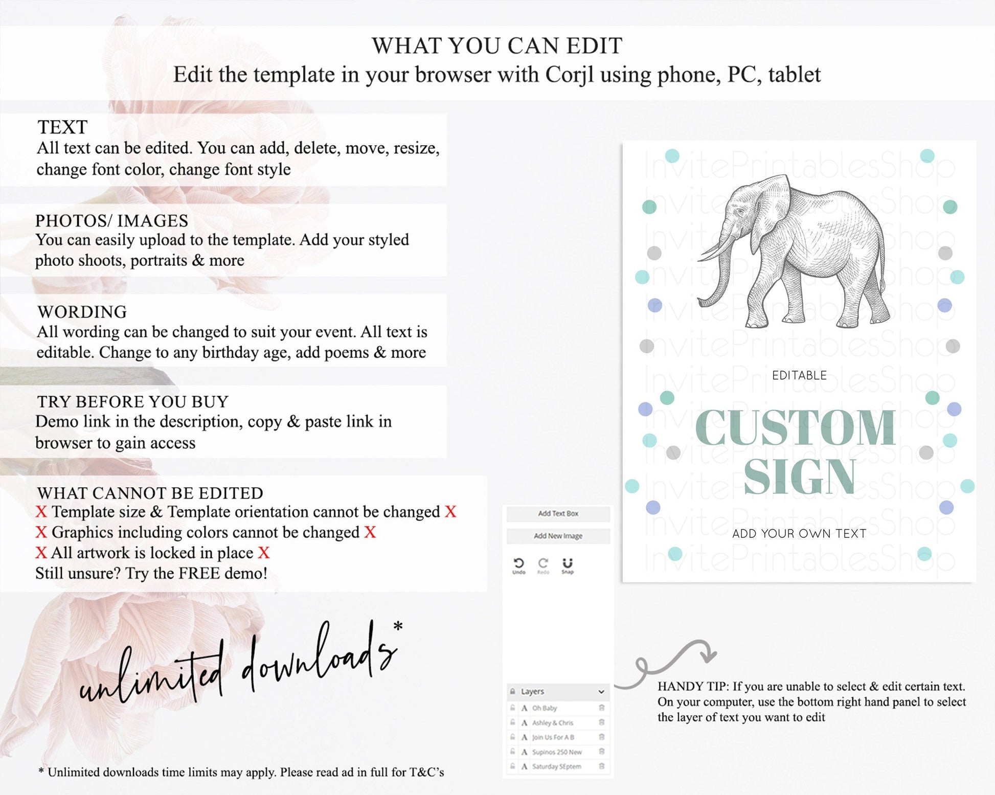 • After purchase, Corjl emails your editing link. Allow up to 15 minutes for delivery.