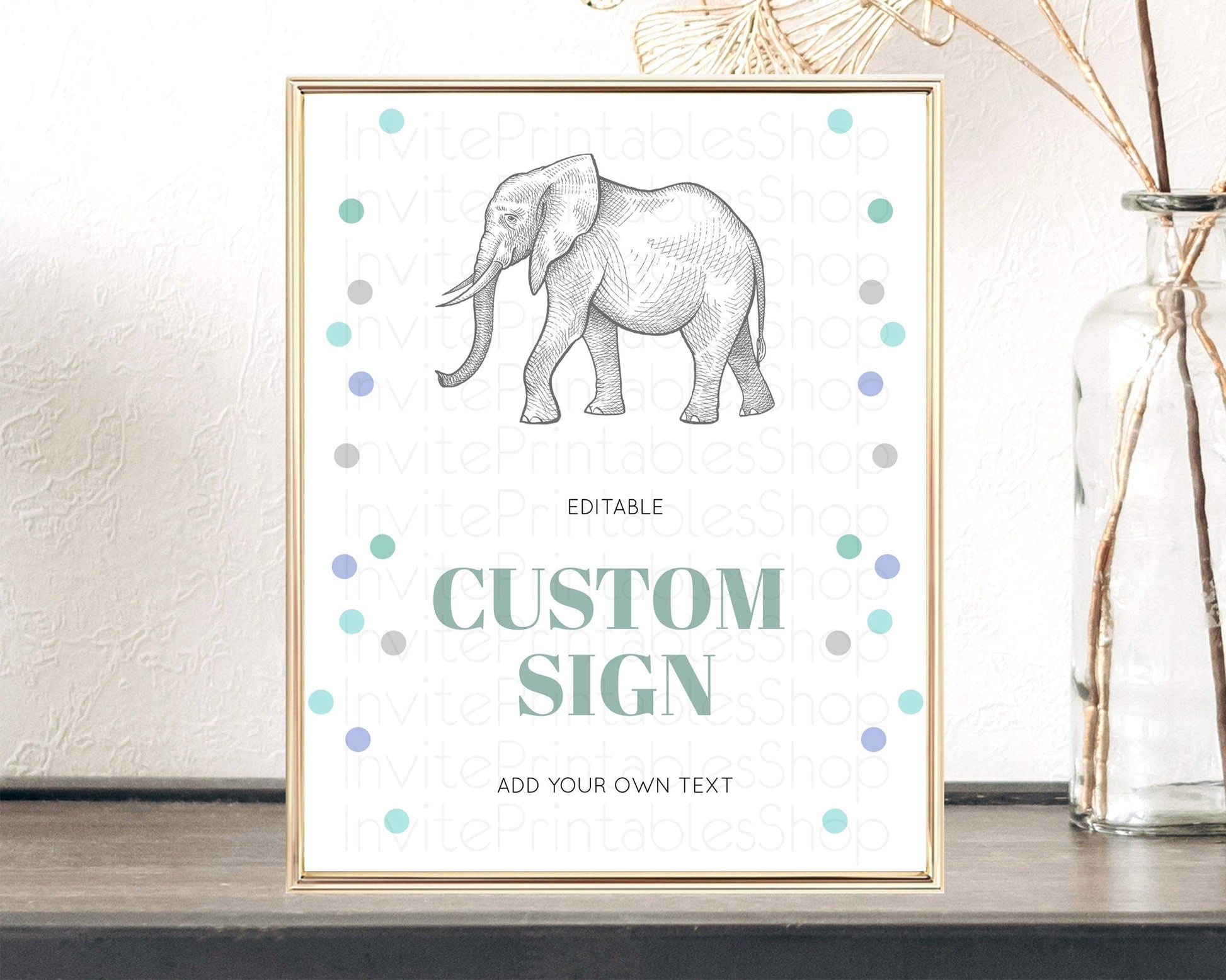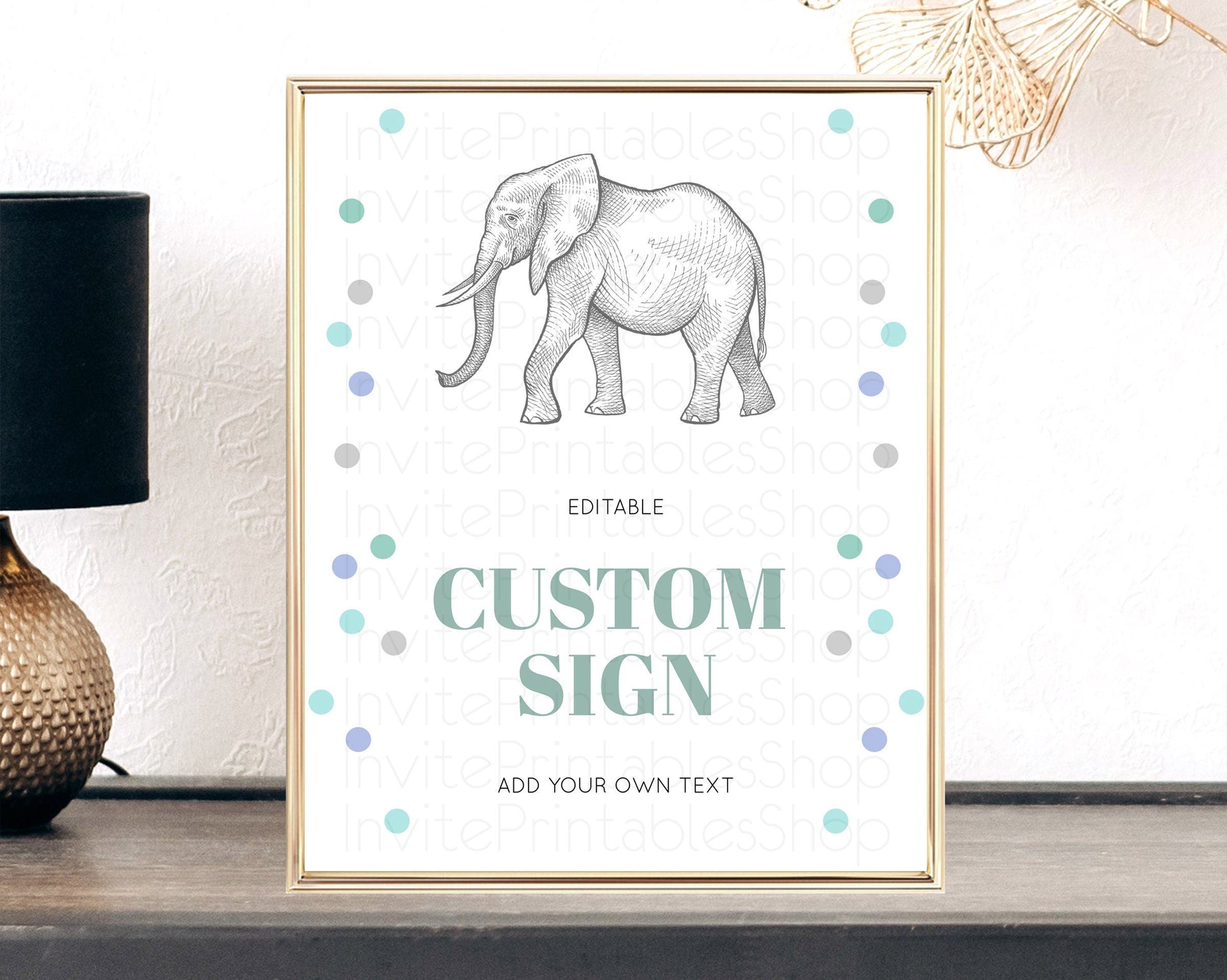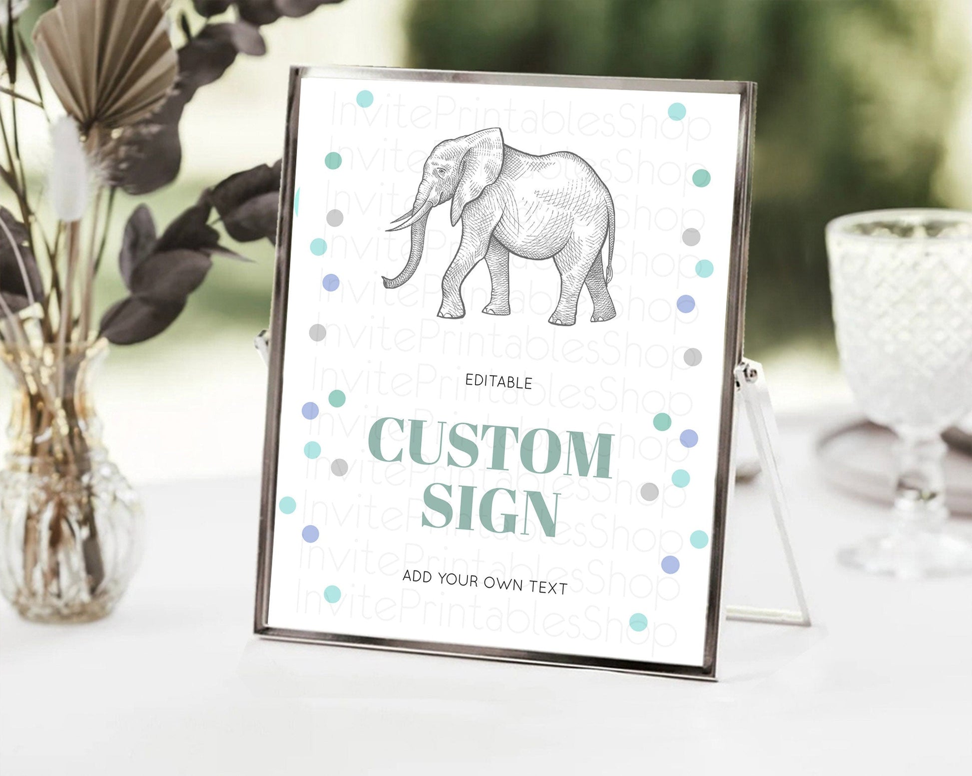 Elephant Sign Elephant Safari Adventure Party Table Sign Decor Dried Palm Fern Zoo 1st Birthday Baptism Baby Shower Bridal Shower D10859