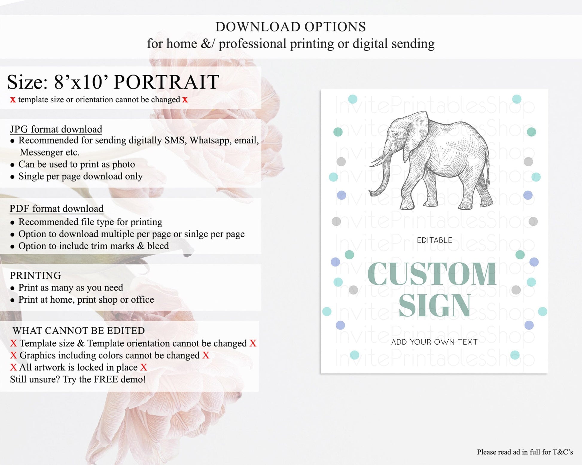 • Template size & orientation cannot be changed. Please use the demo link to confirm this product suits your needs.