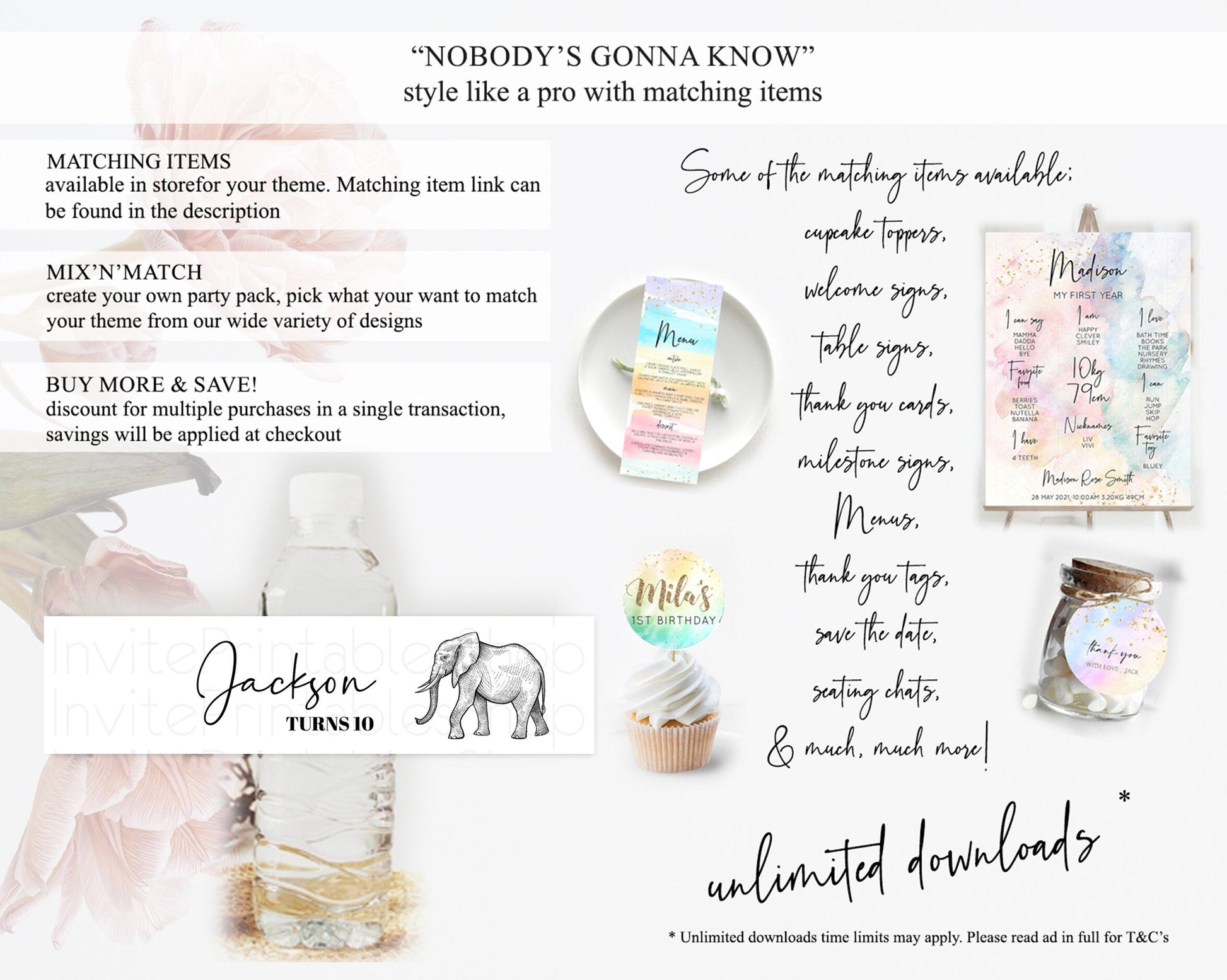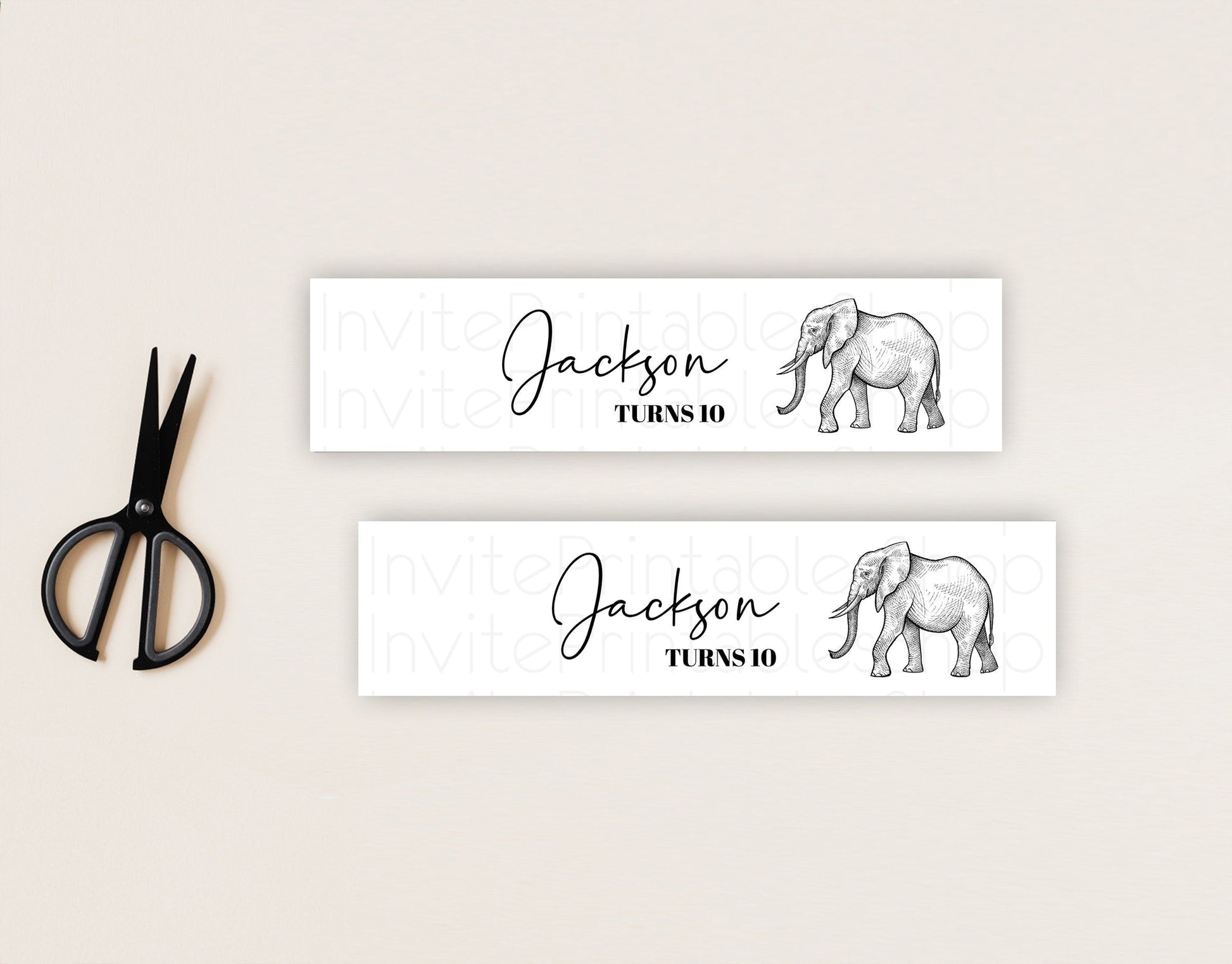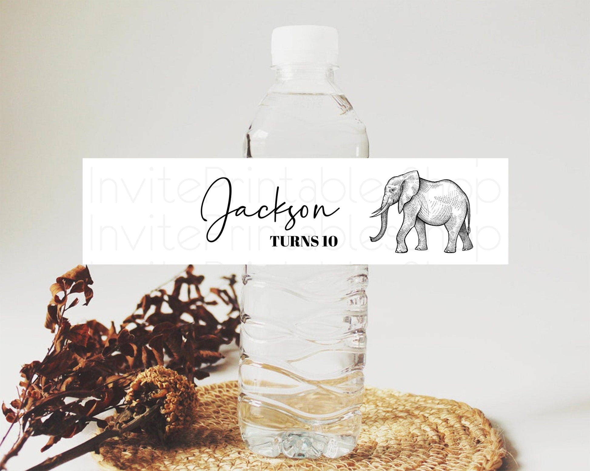 Elephant Water Label Template Elephant Safari Adventure Party Decor Dried Palm Fern Zoo Birthday Baptism Baby Shower Bridal Shower D10248