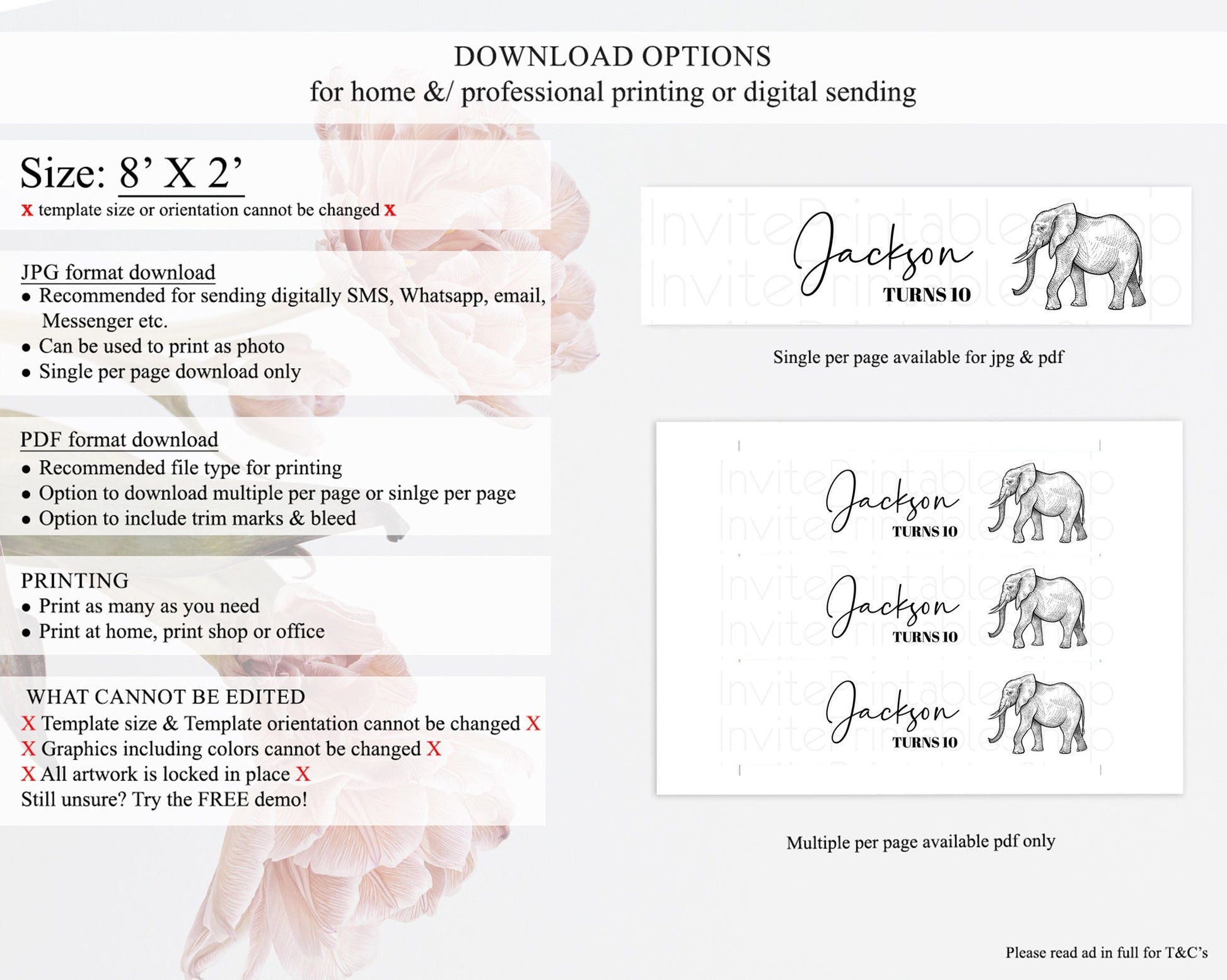 • Template size & orientation cannot be changed. Please use the demo link to confirm this product suits your needs.