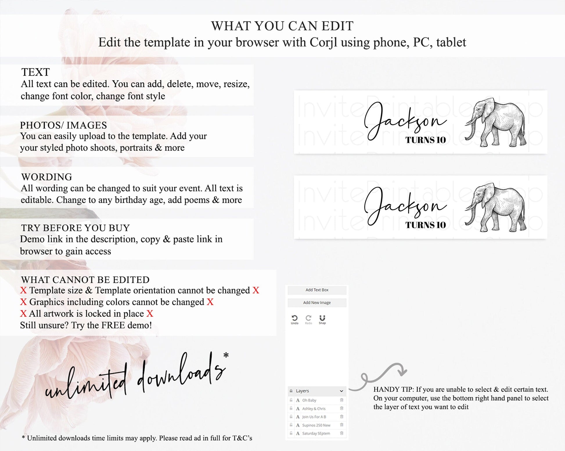 • After purchase, Corjl emails your editing link. Allow up to 15 minutes for delivery.