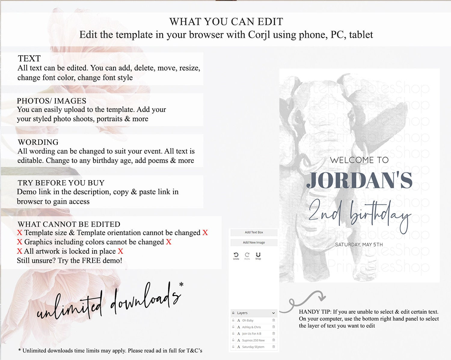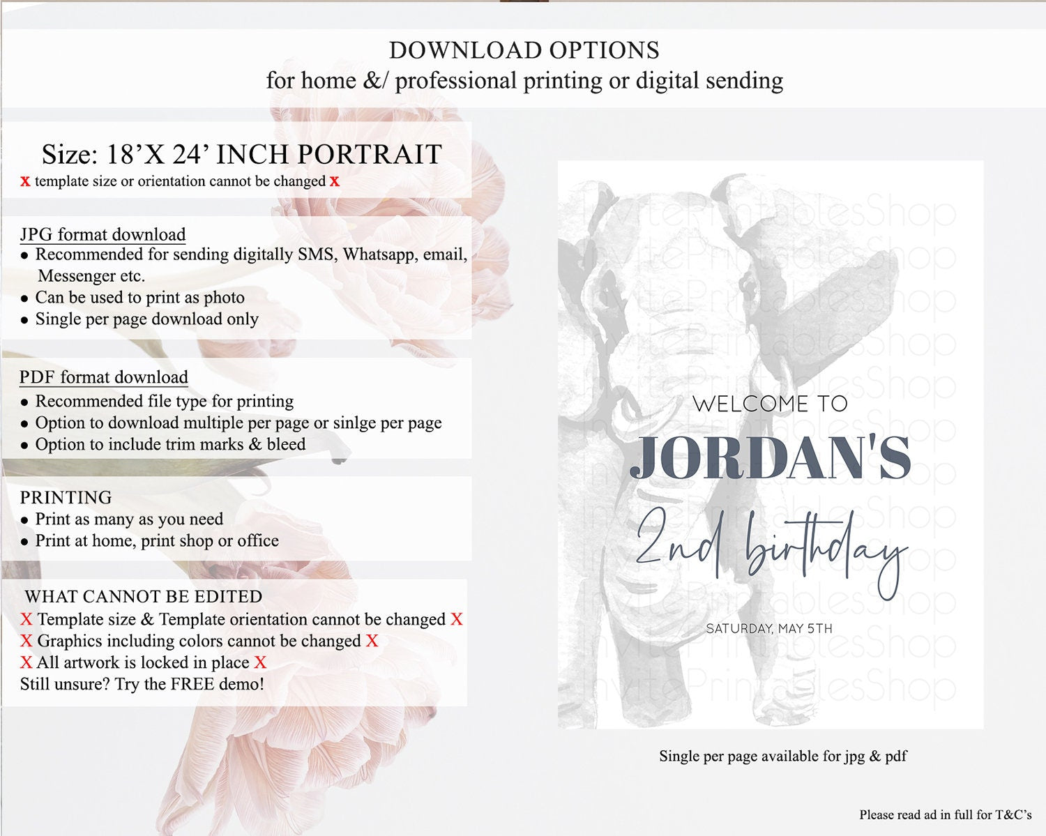 Elephant Welcome Sign Elephant Welcome Board Elephant Party Welcome Poster Safari Party Decor Elephant First Birthday Welcome Sign D10292
