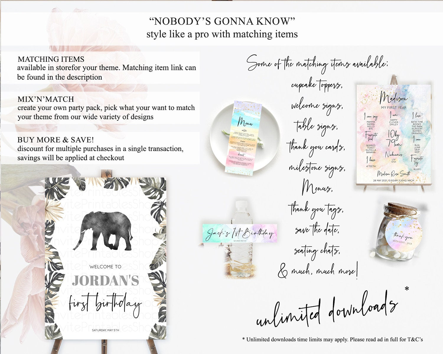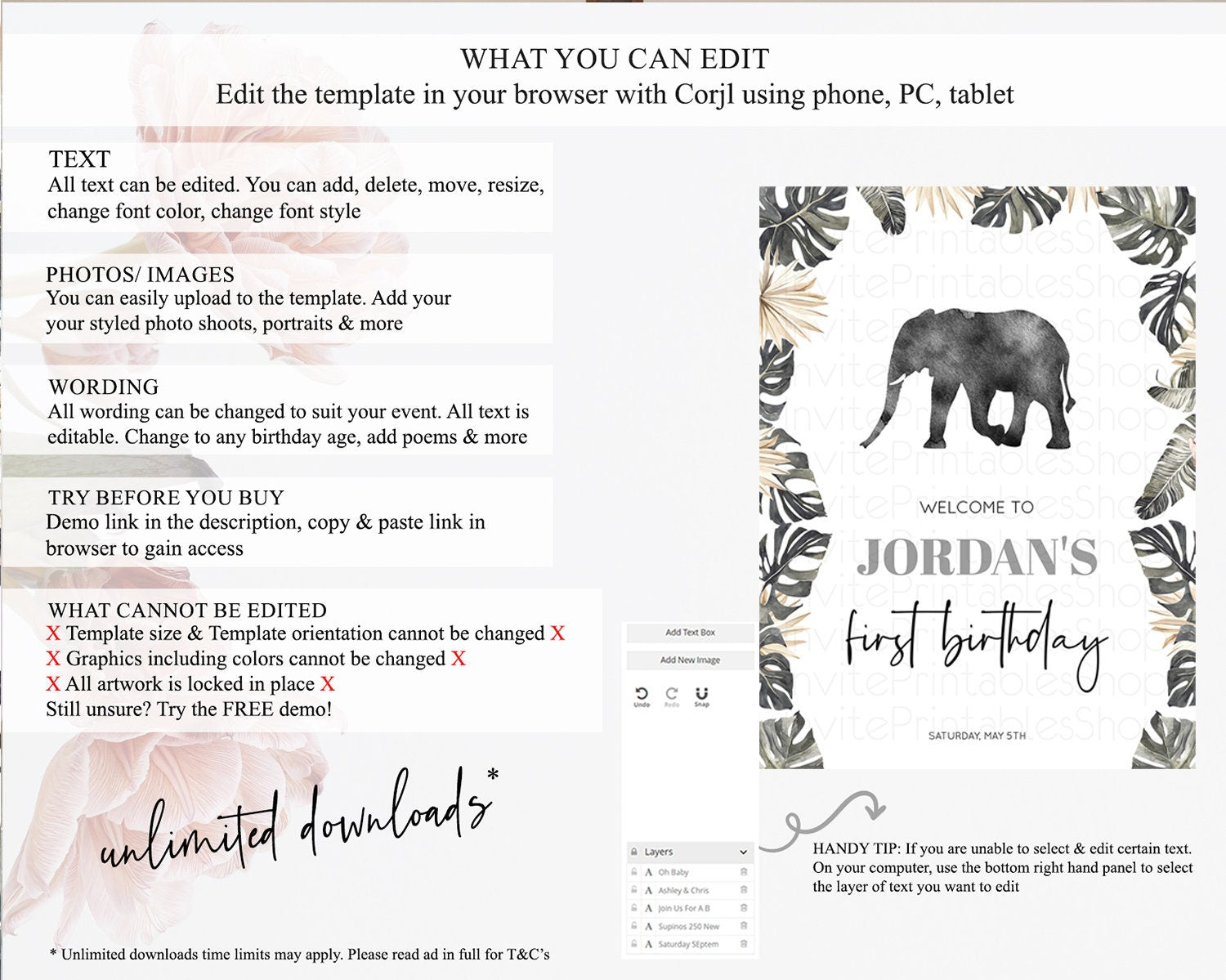 Elephant Welcome Sign Elephant Welcome Board Elephant Party Welcome Poster Safari Party Decor Elephant First Birthday Welcome Sign D10803