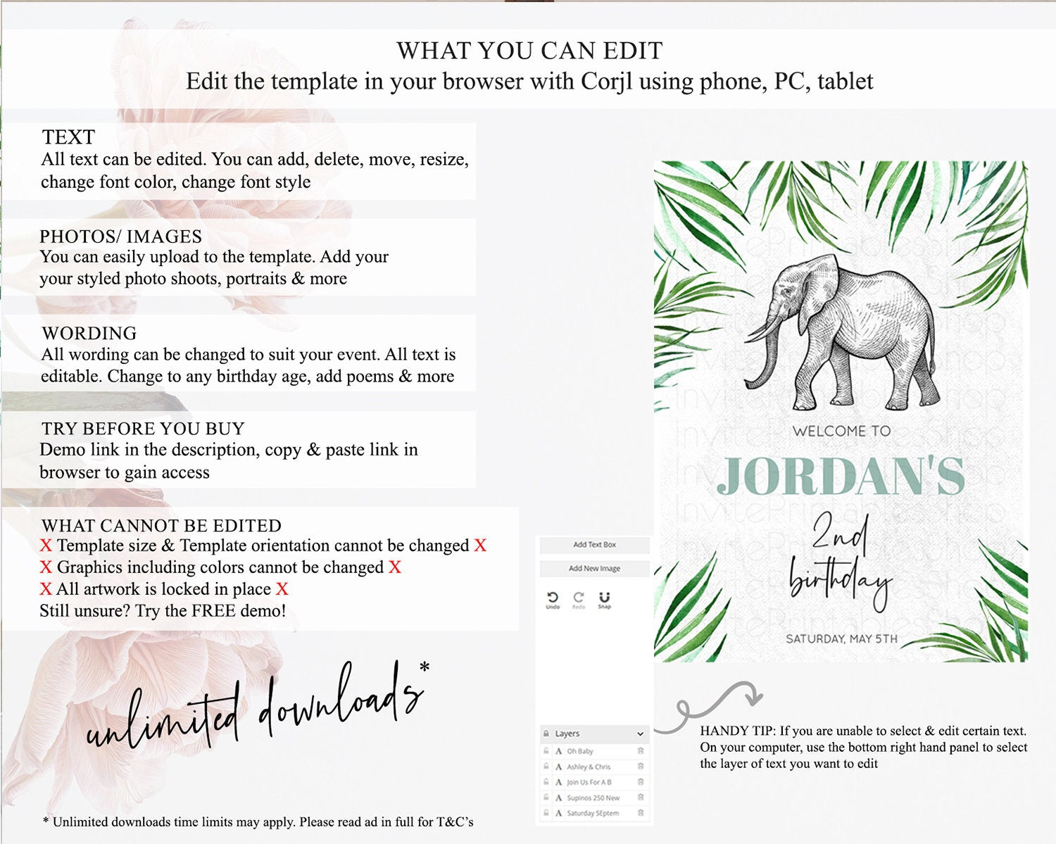 Elephant Welcome Sign Elephant Welcome Board Elephant Party Welcome Poster Safari Party Decor Elephant First Birthday Welcome Sign D10850