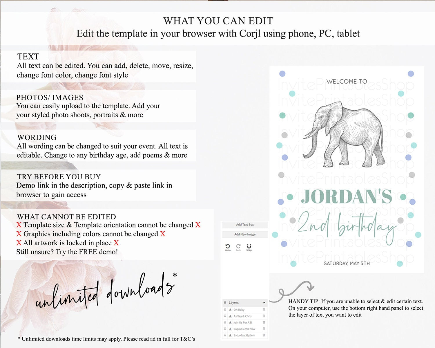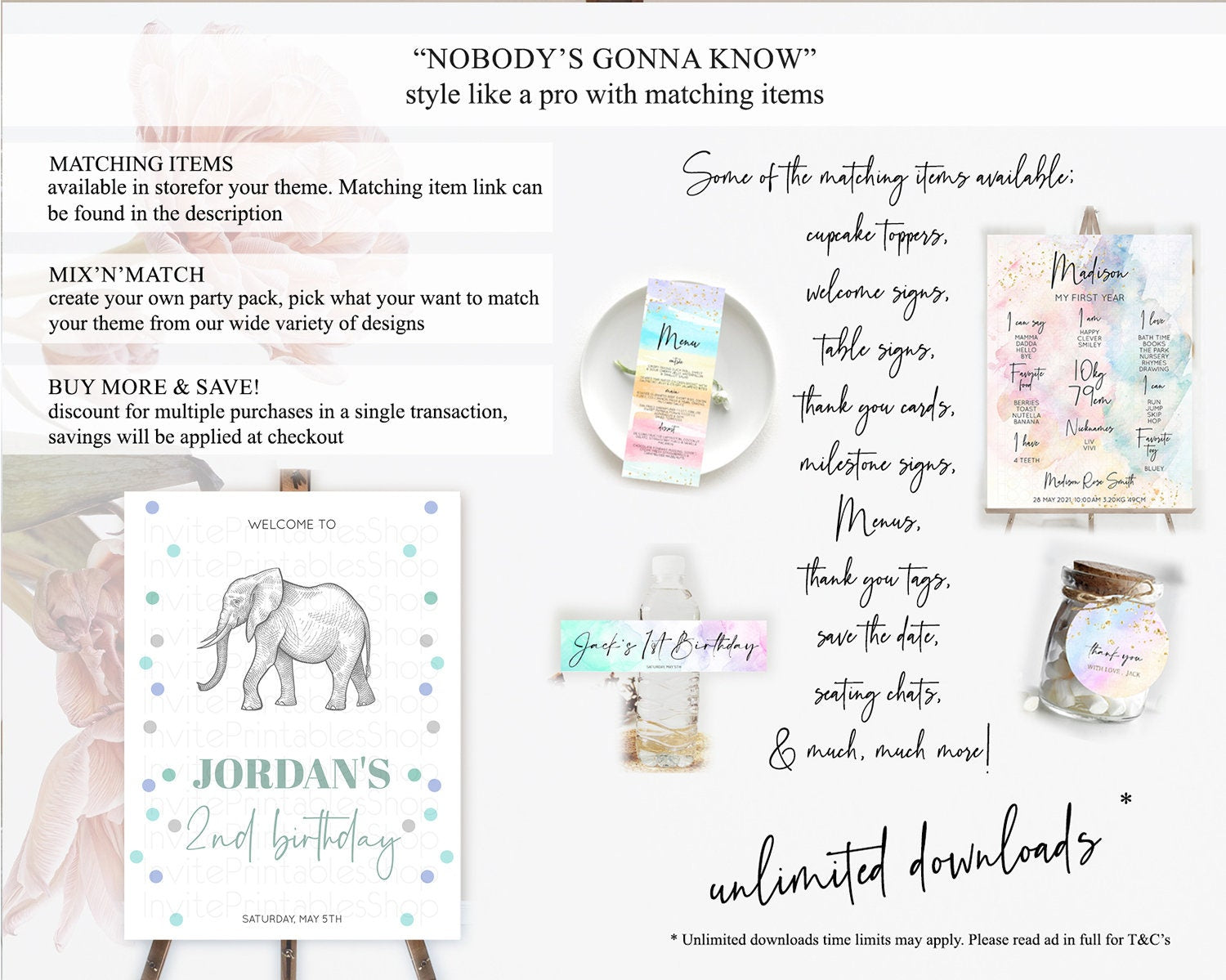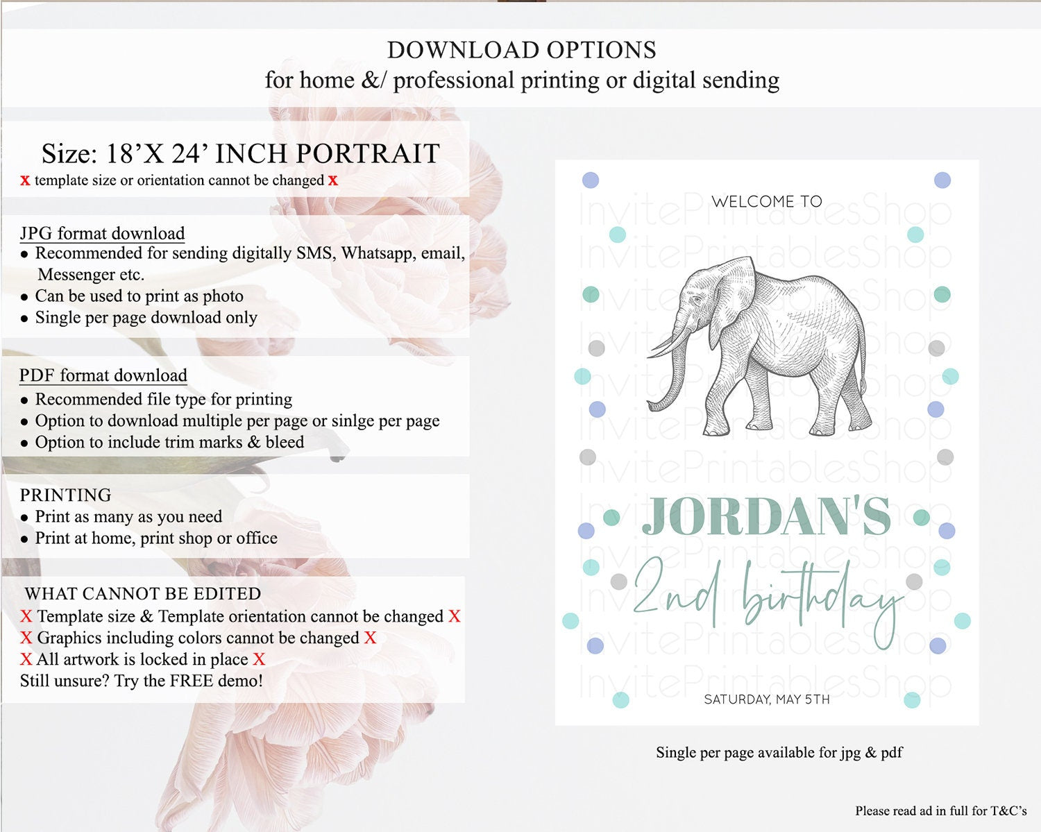 Elephant Welcome Sign Elephant Welcome Board Elephant Party Welcome Poster Safari Party Decor Elephant First Birthday Welcome Sign D10859