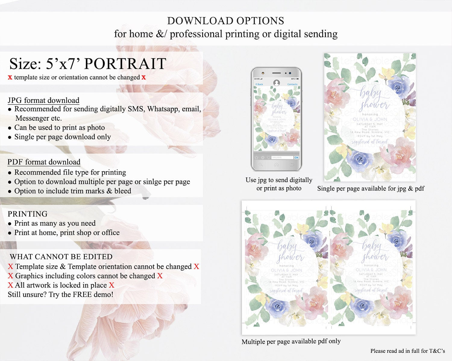 • Template size & orientation cannot be changed. Please use the demo link to confirm this product suits your needs.