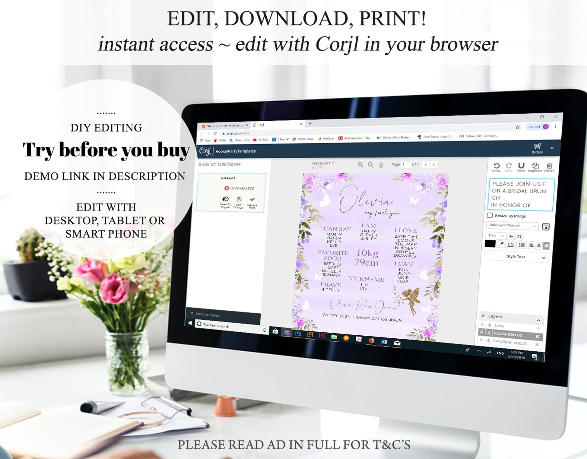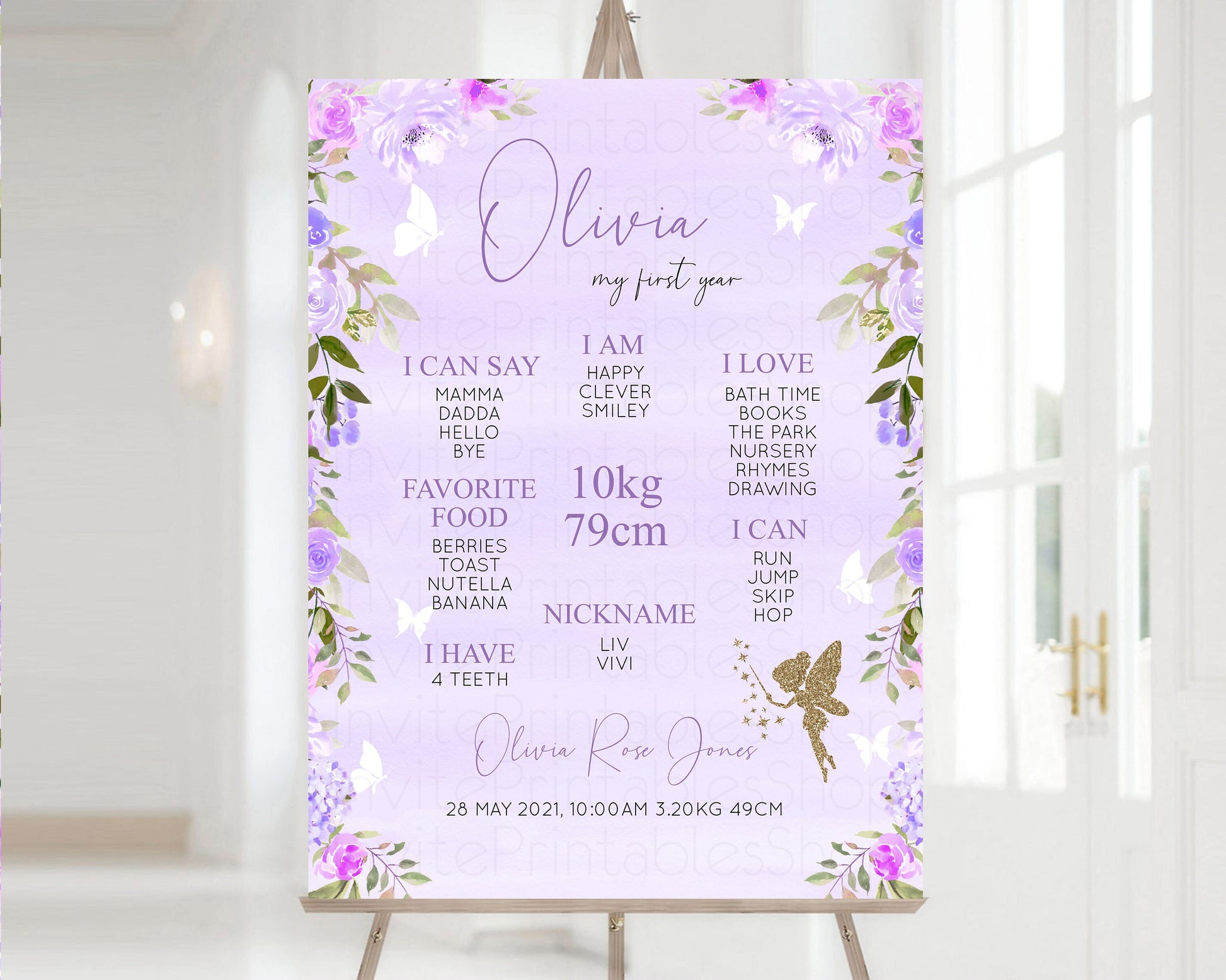 Fairy Baby Milestone Board Pastel Floral First Birthday Poster Enchanted Garden Welcome Board Glitter 1st Birthday Baby Secret Garden 47