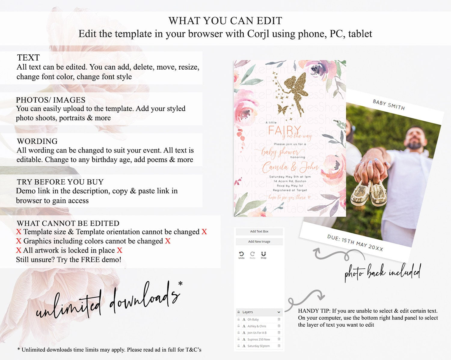 • After purchase, Corjl emails your editing link. Allow up to 15 minutes for delivery.