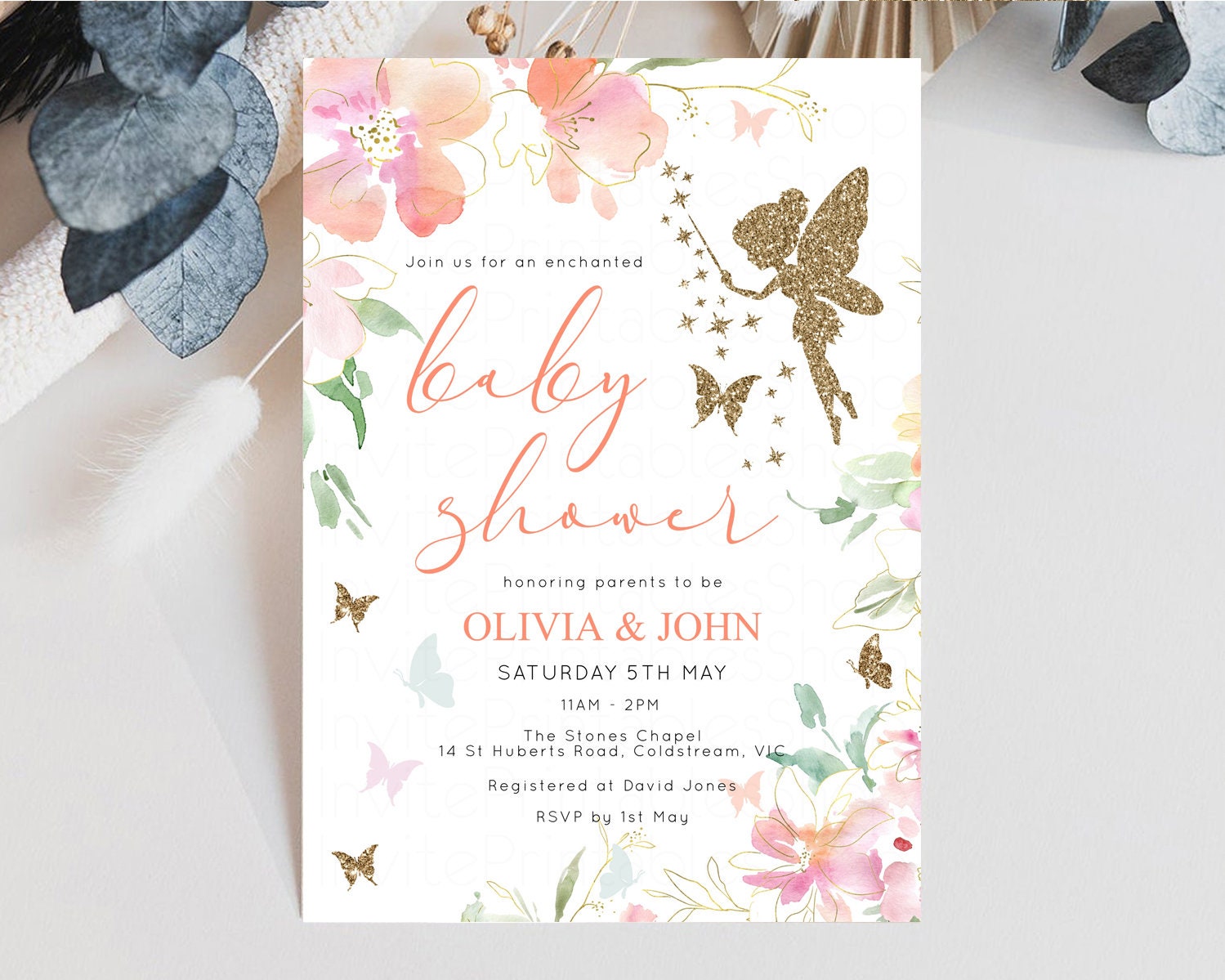 Fairy Baby Shower Invitation Enchanted Forest Baby Shower Secret Garden Shower Whimsical Floral Shower Boho Botanical High Tea Party 91