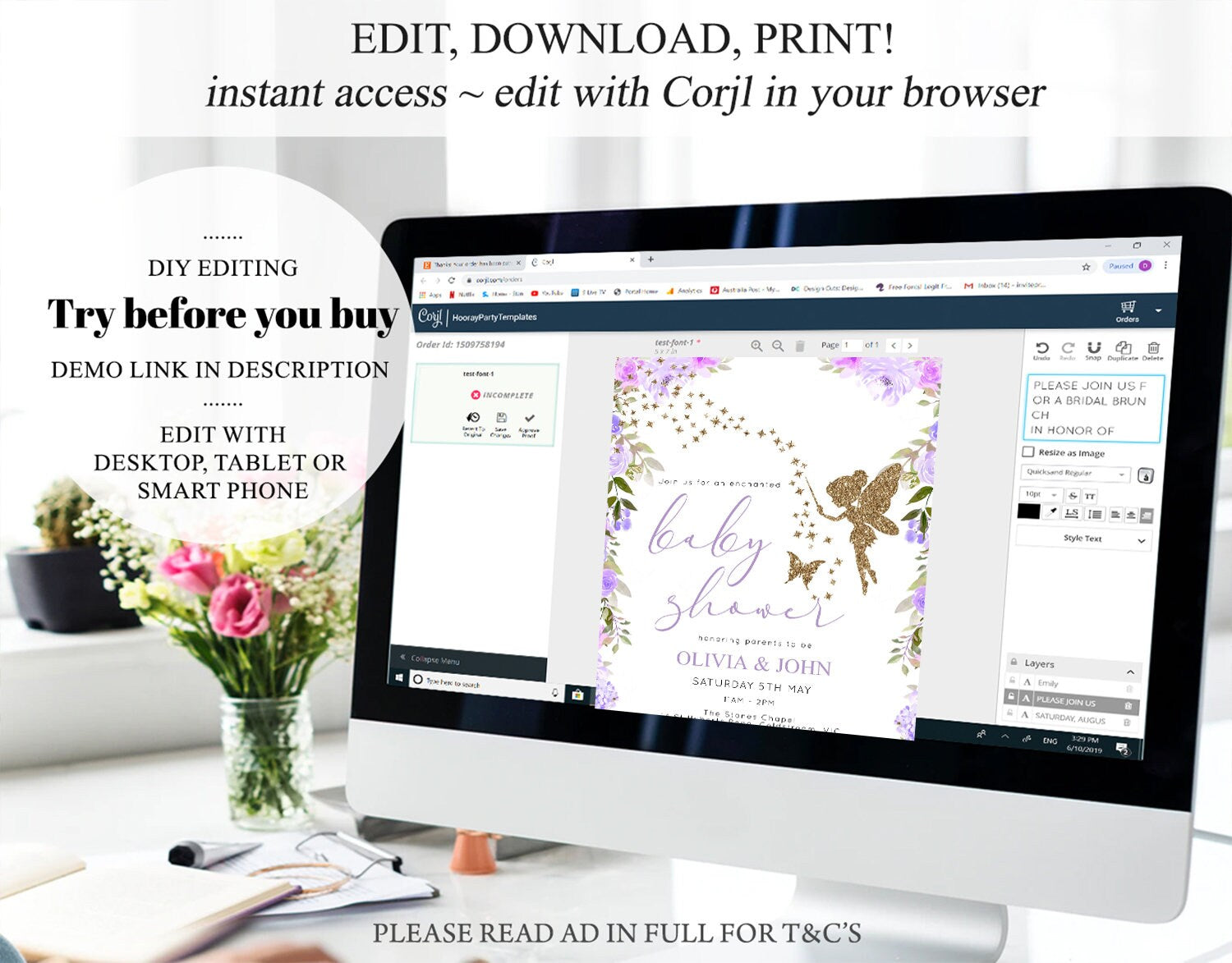 Fairy Baby Shower Invitation Enchanted Forest Baby Shower Secret Garden Shower Whimsical Floral Shower Boho Botanical High Tea Party D10910