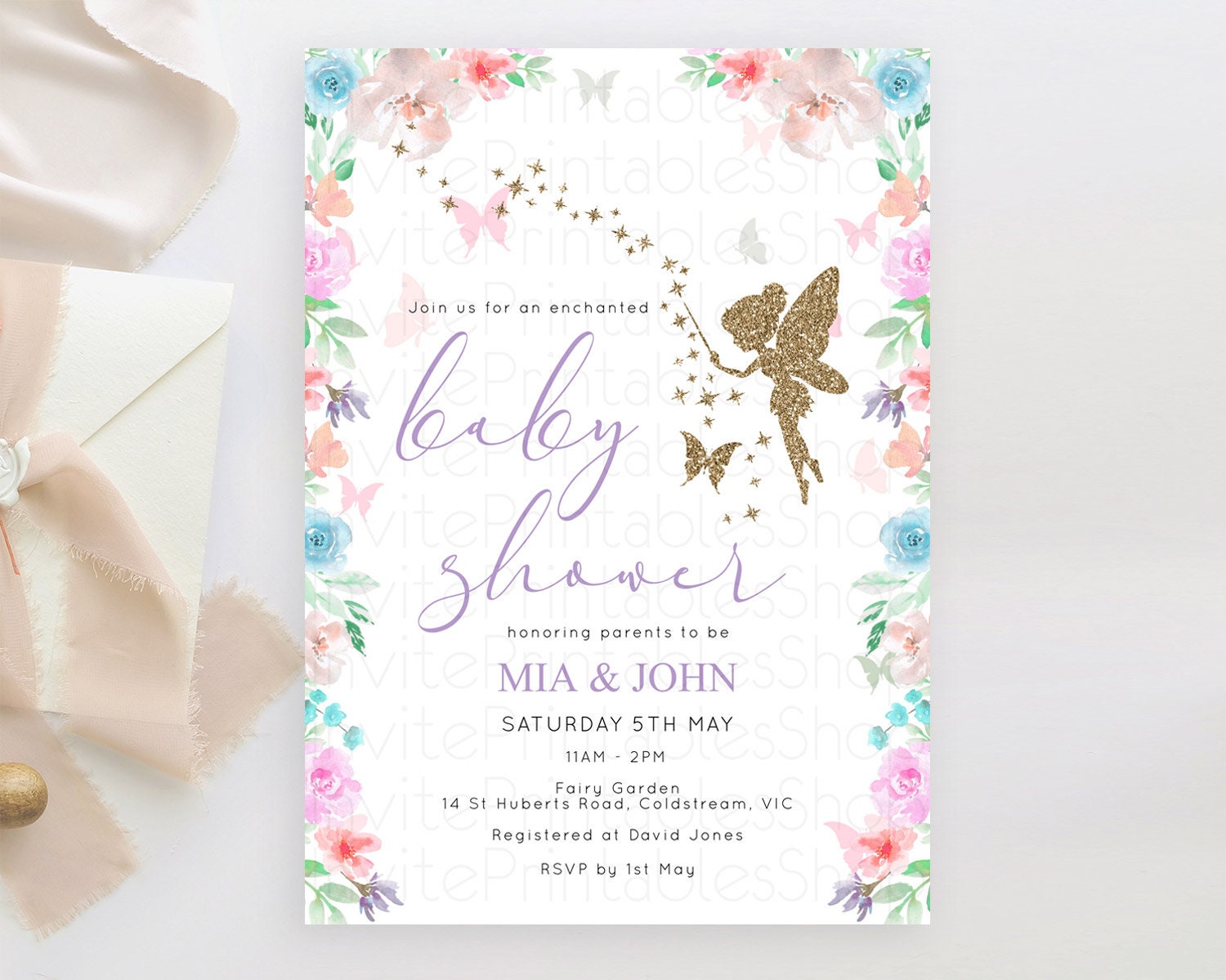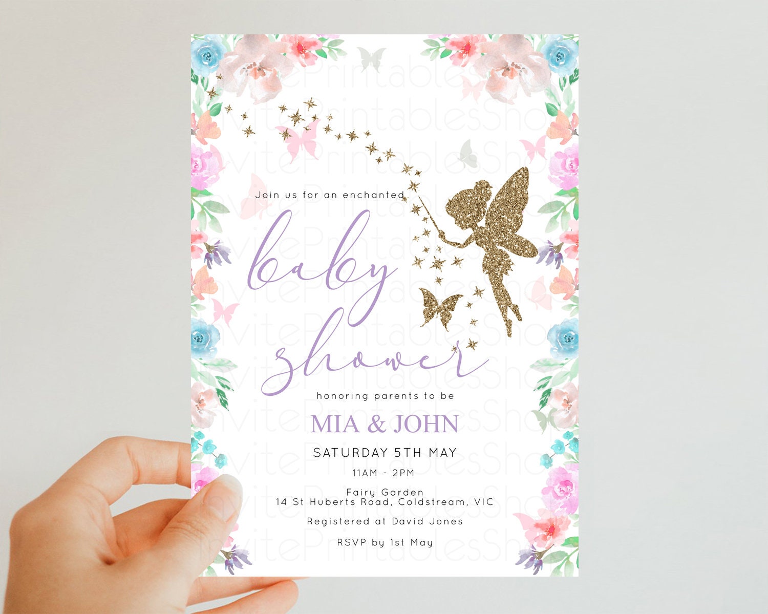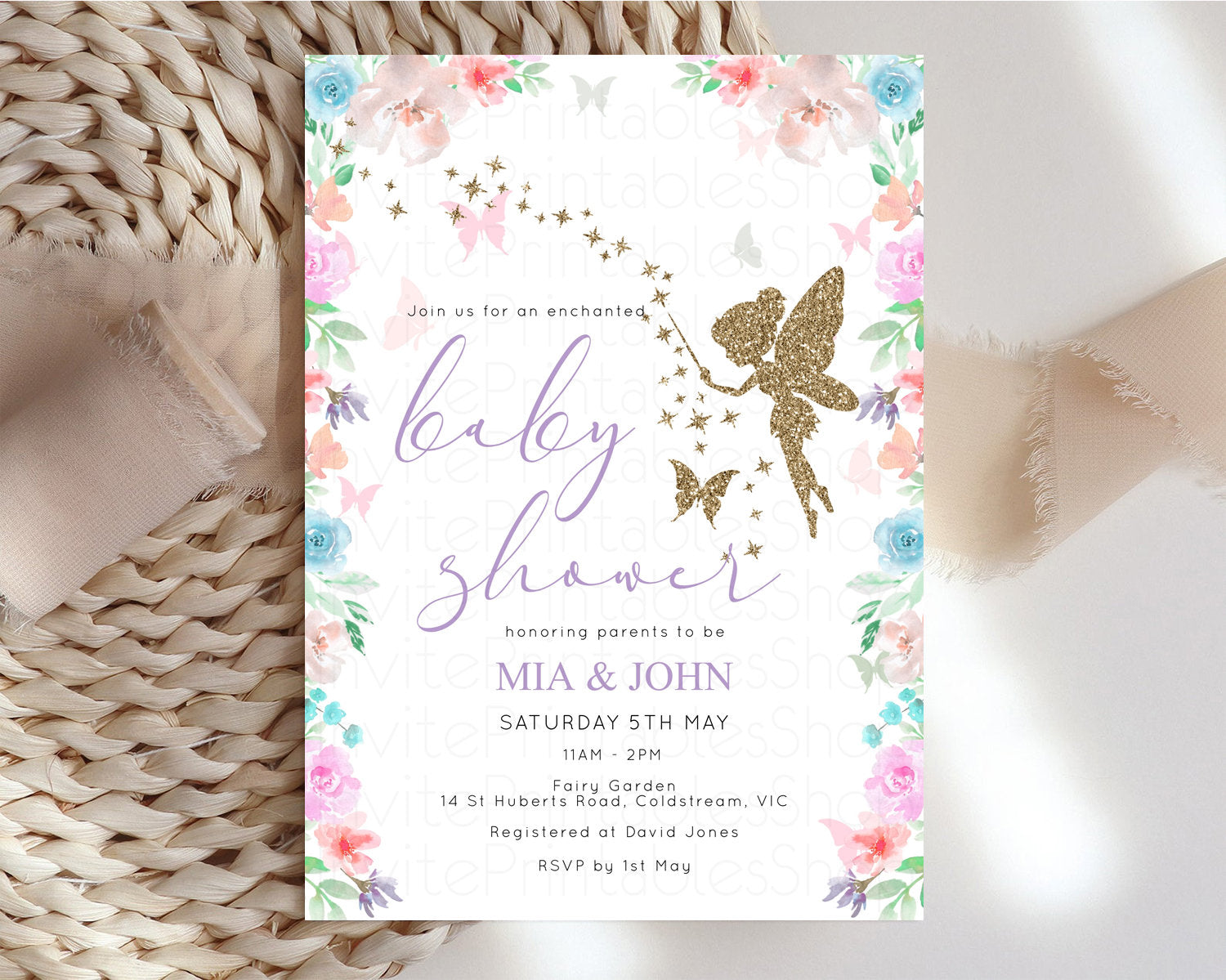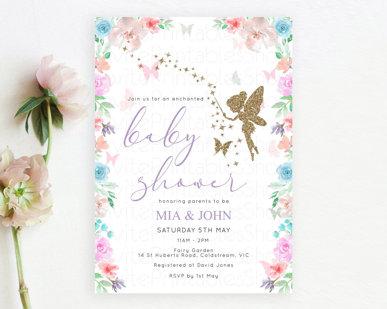 Fairy Baby Shower Invitation Fairy Garden Baby Shower Invitation Enchanted Garden Baby Shower Fairy Glitter Colorful Pastel Floral D10126