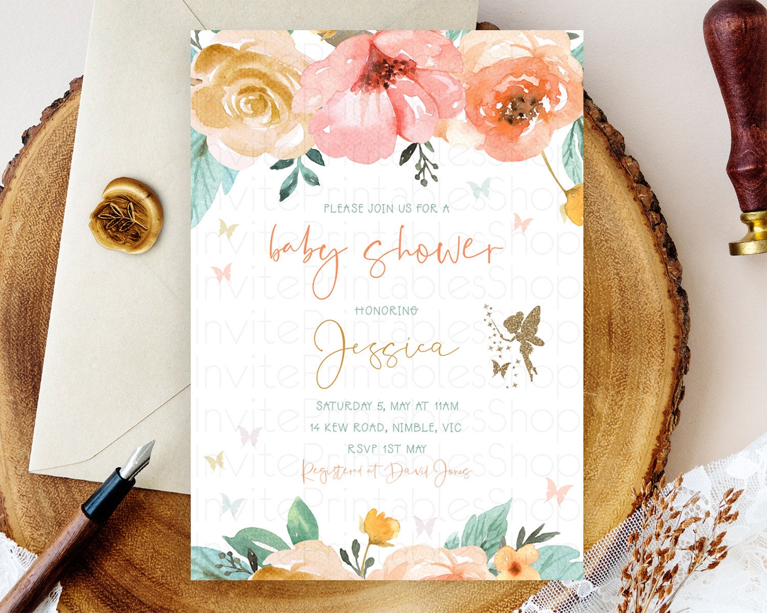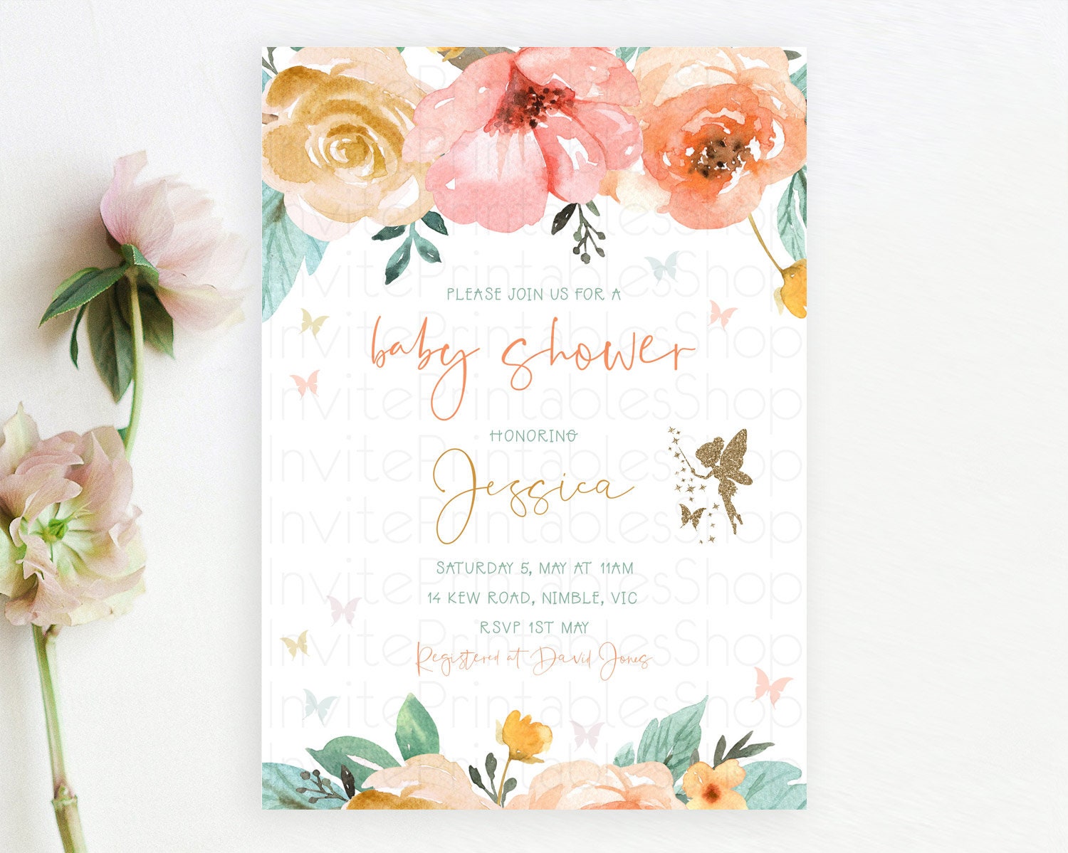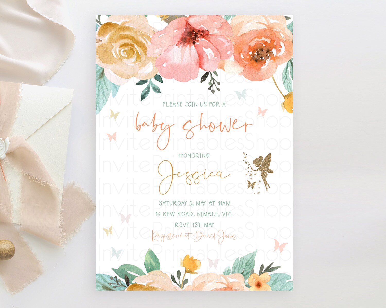Fairy Baby Shower Invitation Pastel Fairy Invites Fairy Tea Party Fairy Garden Theme Secret Garden Enchanted Garden Floral Butterfly D10346