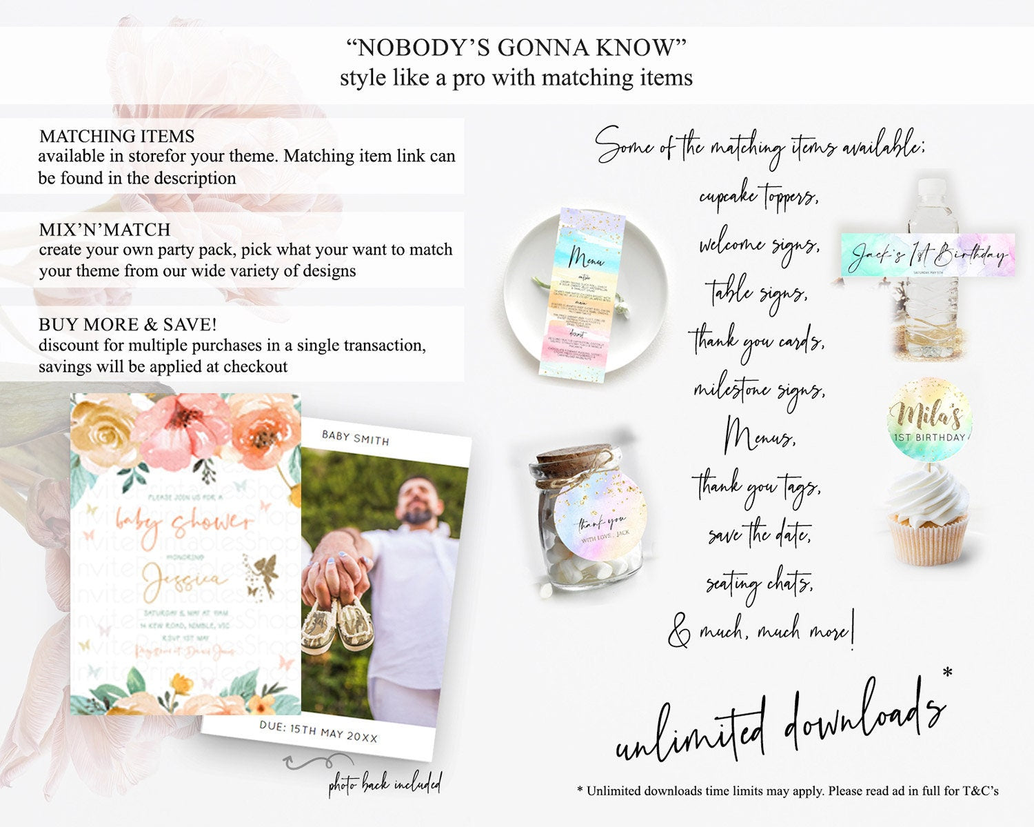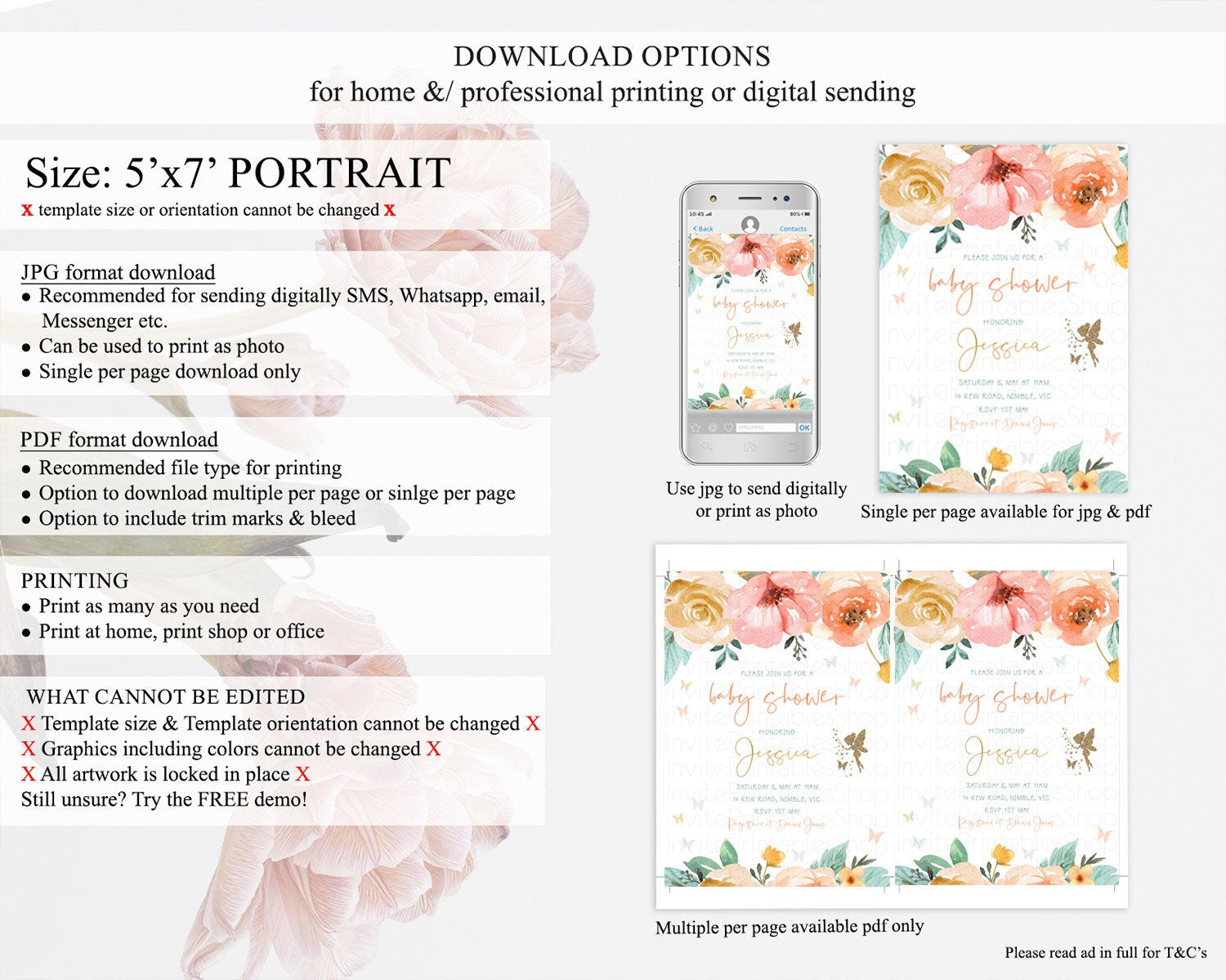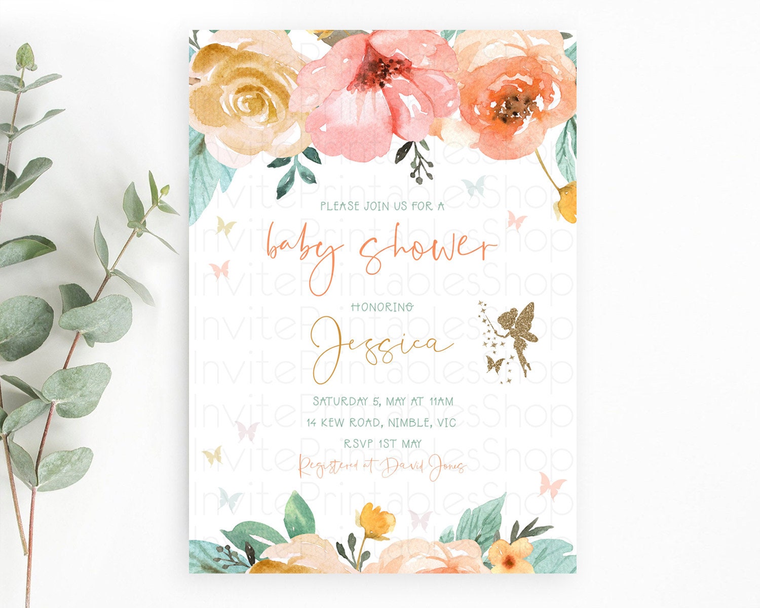 Fairy Baby Shower Invitation Pastel Fairy Invites Fairy Tea Party Fairy Garden Theme Secret Garden Enchanted Garden Floral Butterfly D10346