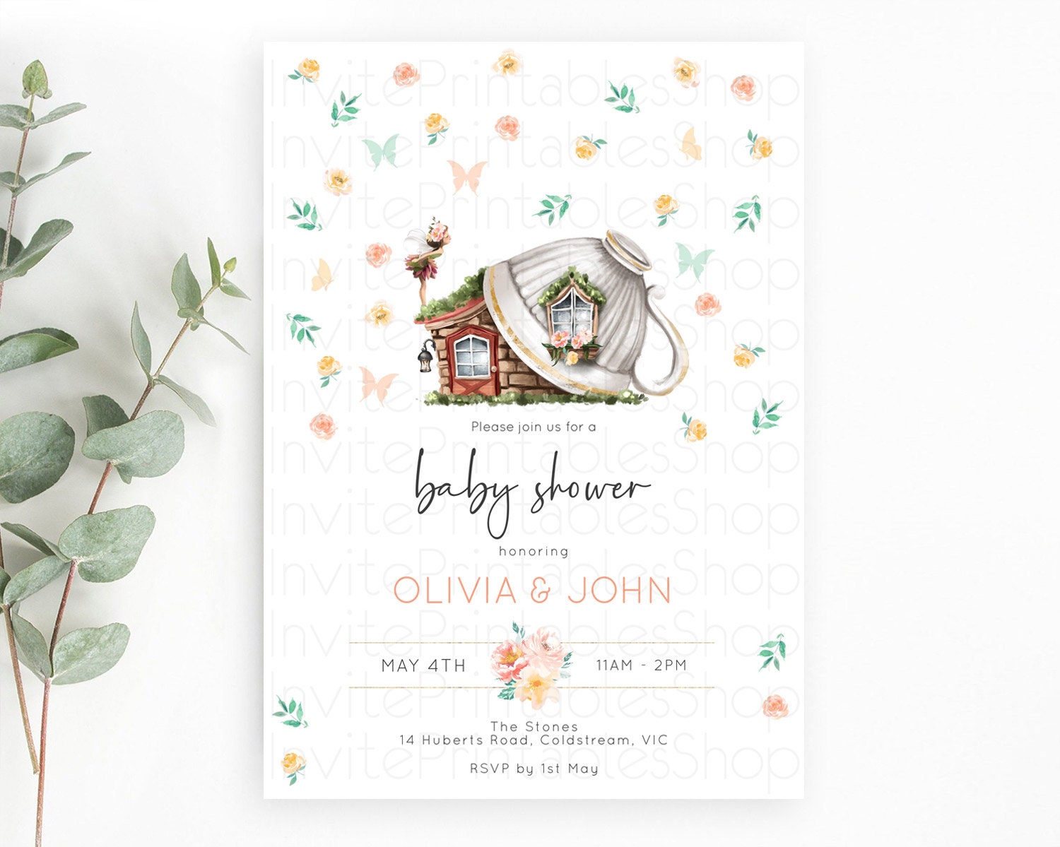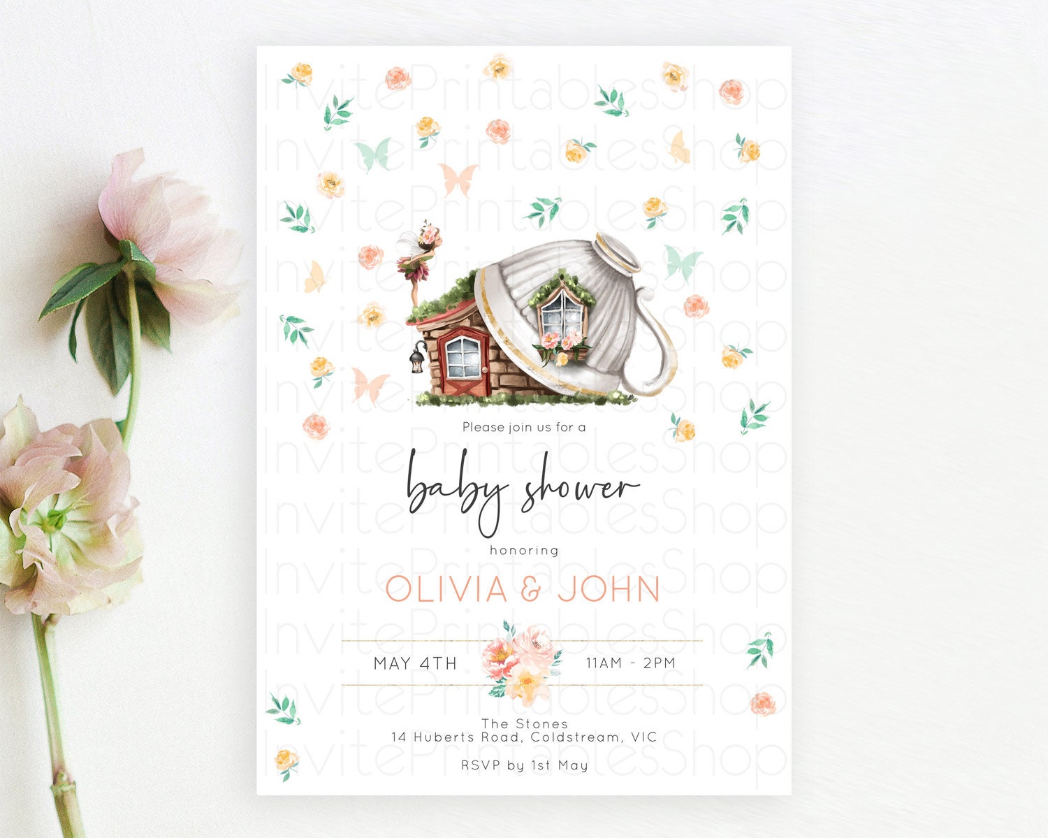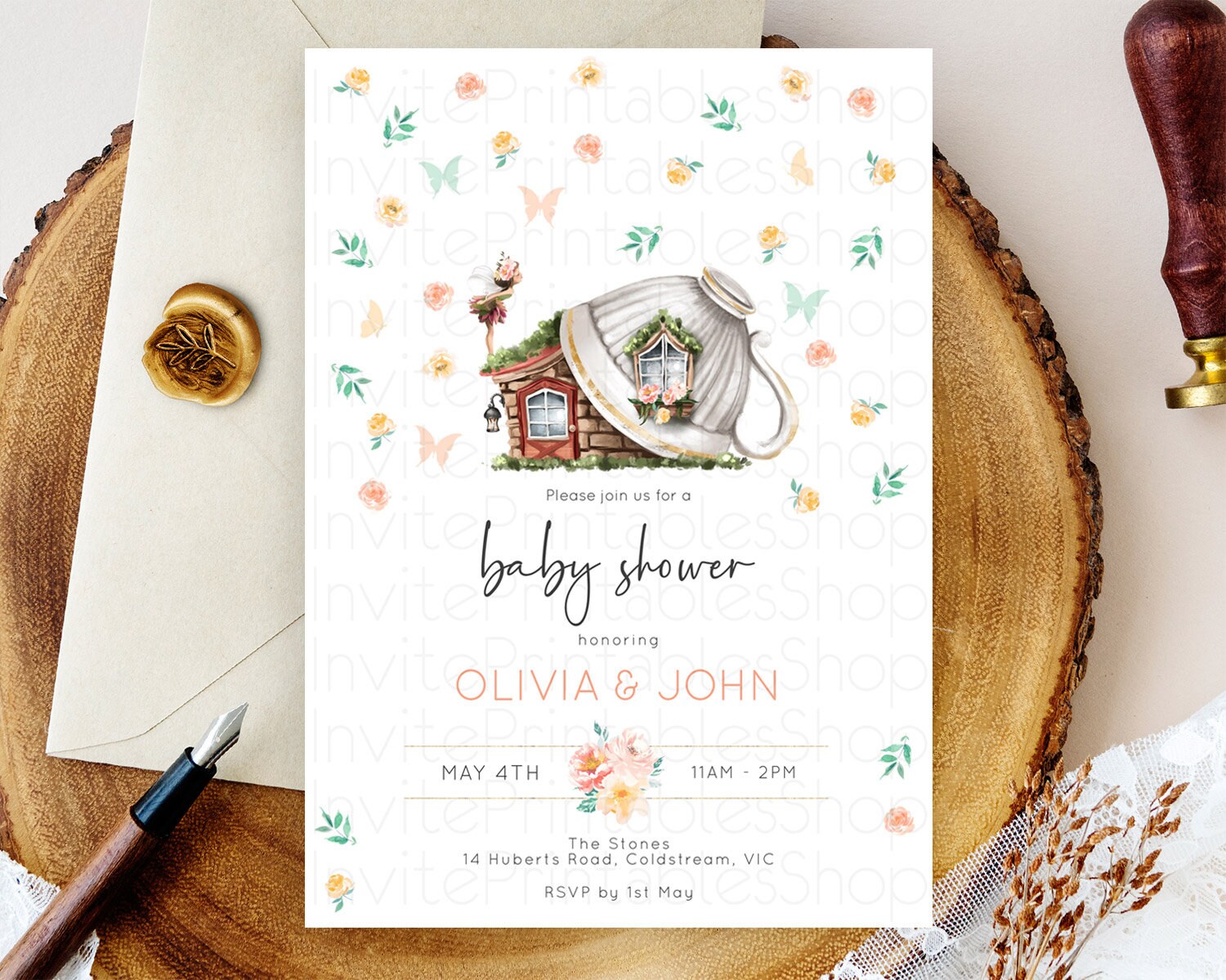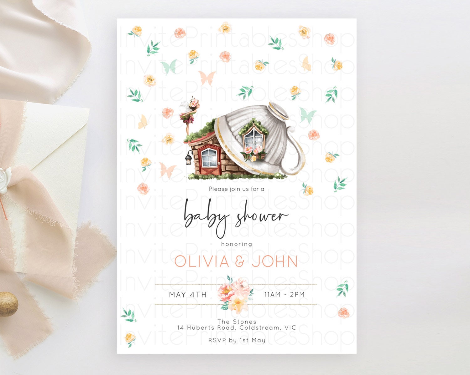 Fairy Baby Shower Invitation Pastel Fairy Invites Fairy Tea Party Fairy Garden Theme Secret Garden Enchanted Garden Floral Butterfly D10383