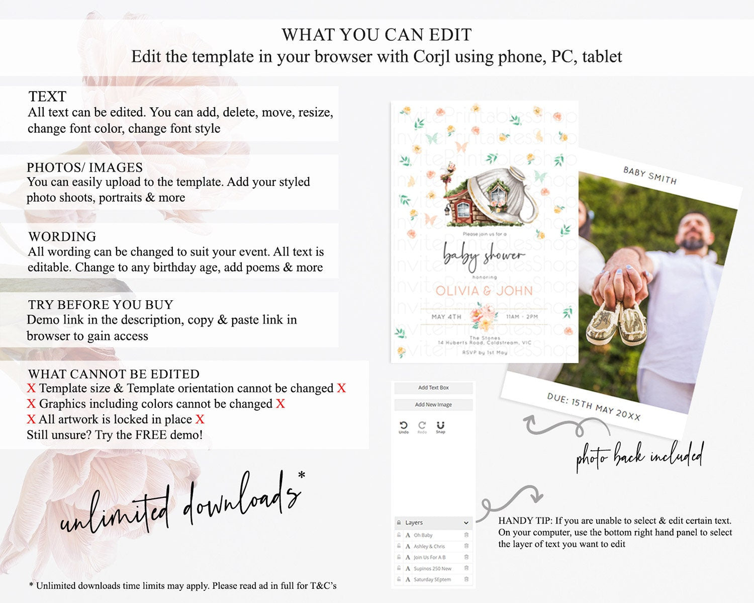 • After purchase, Corjl emails your editing link. Allow up to 15 minutes for delivery.