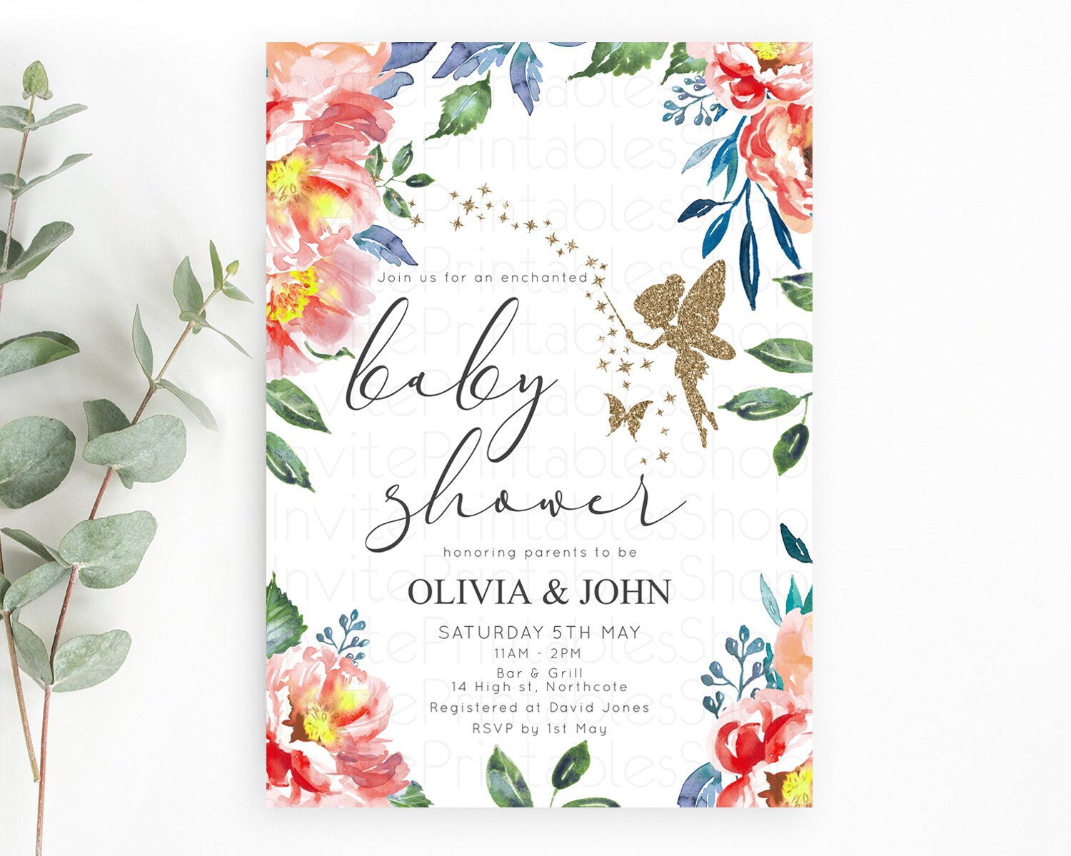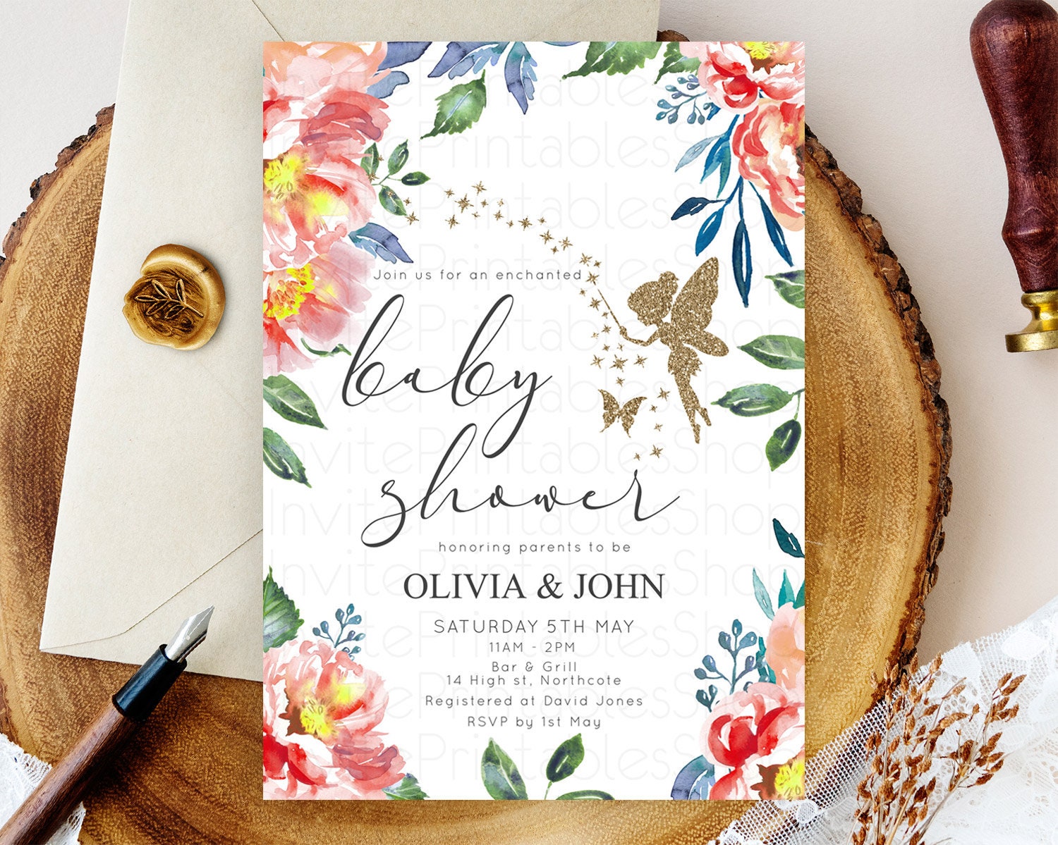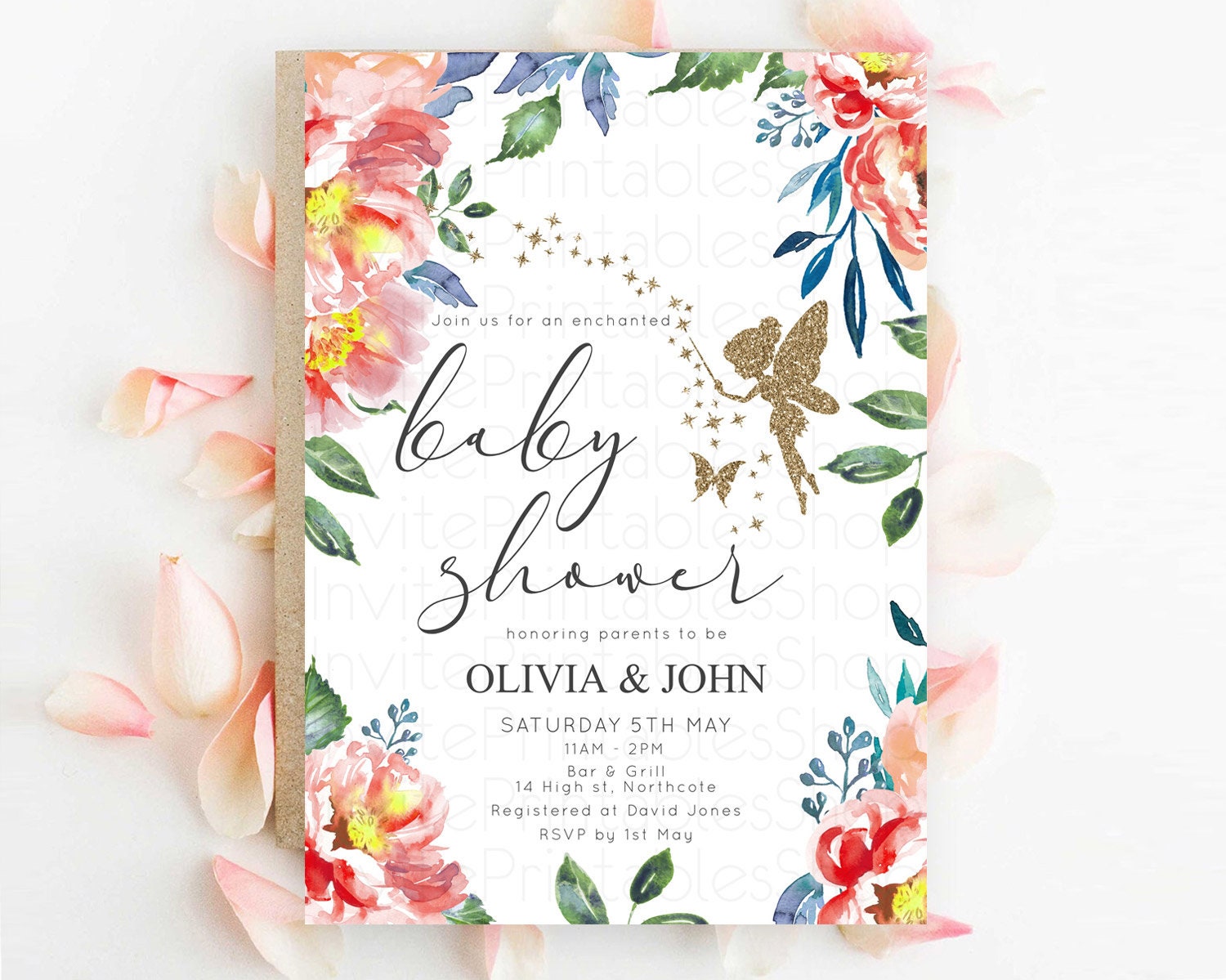 Fairy Baby Shower Invitation Pastel Fairy Invites Fairy Tea Party Fairy Garden Theme Secret Garden Enchanted Garden Floral Butterfly D10752