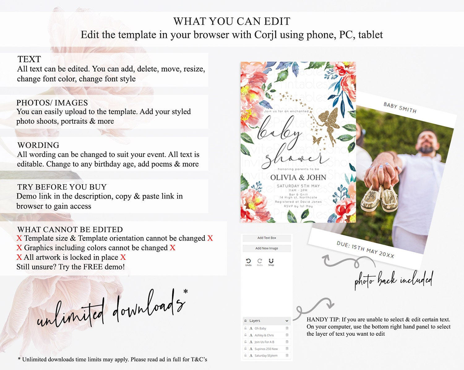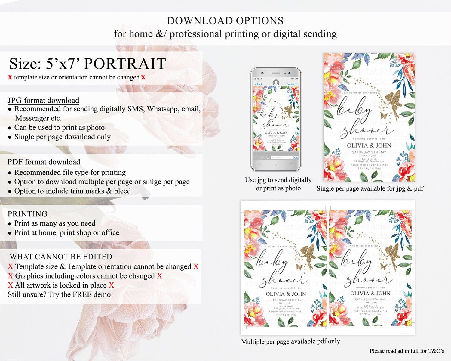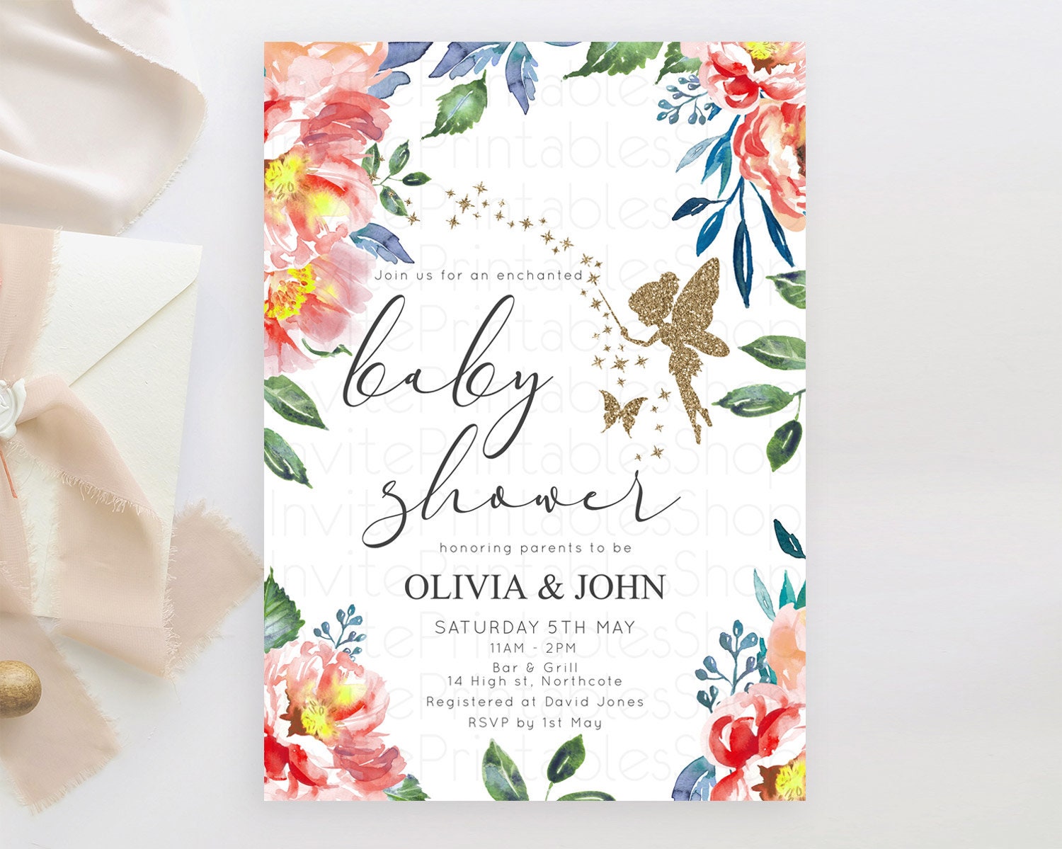 Fairy Baby Shower Invitation Pastel Fairy Invites Fairy Tea Party Fairy Garden Theme Secret Garden Enchanted Garden Floral Butterfly D10752