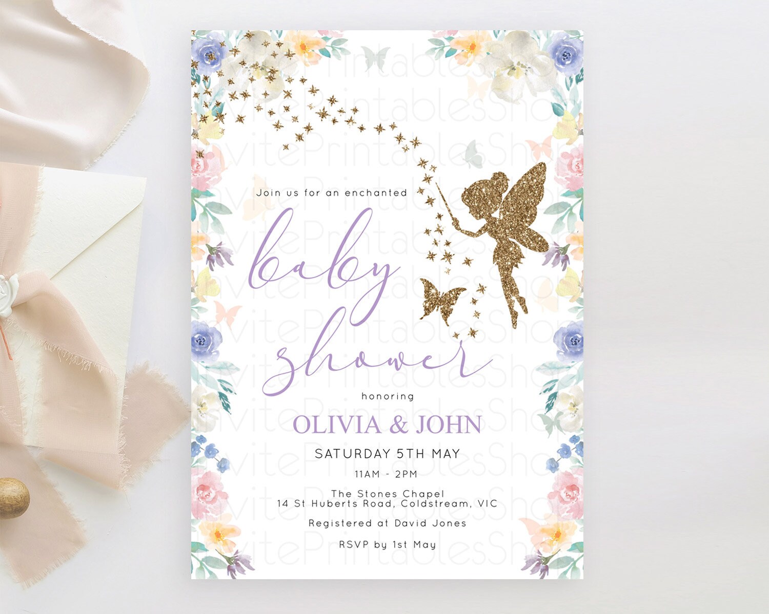 Fairy Baby Shower Invitation Pastel Fairy Invites Fairy Tea Party Fairy Garden Theme Secret Garden Enchanted Garden Floral Butterfly D10761