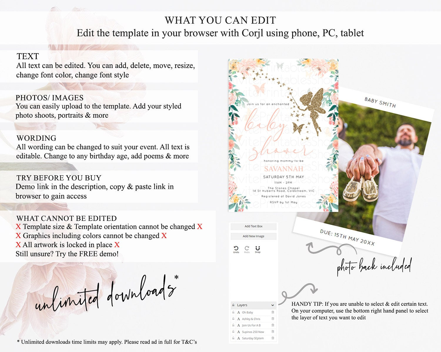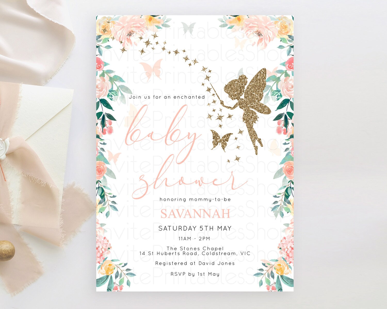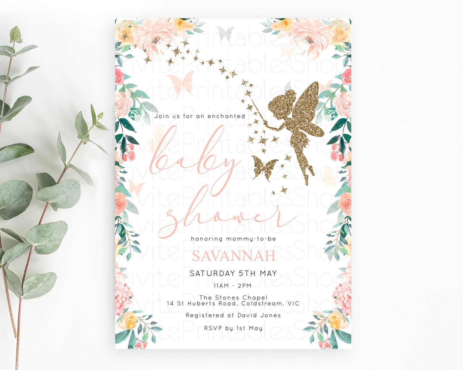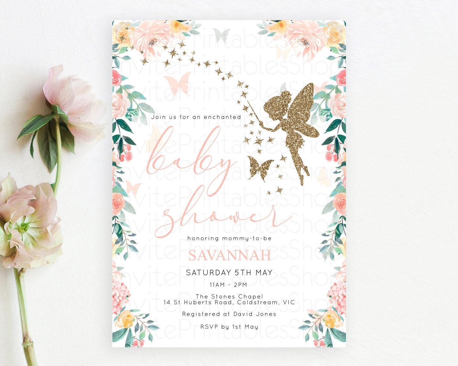 Fairy Baby Shower Invitation Pastel Fairy Invites Fairy Tea Party Fairy Garden Theme Secret Garden Enchanted Garden Floral Butterfly D10789