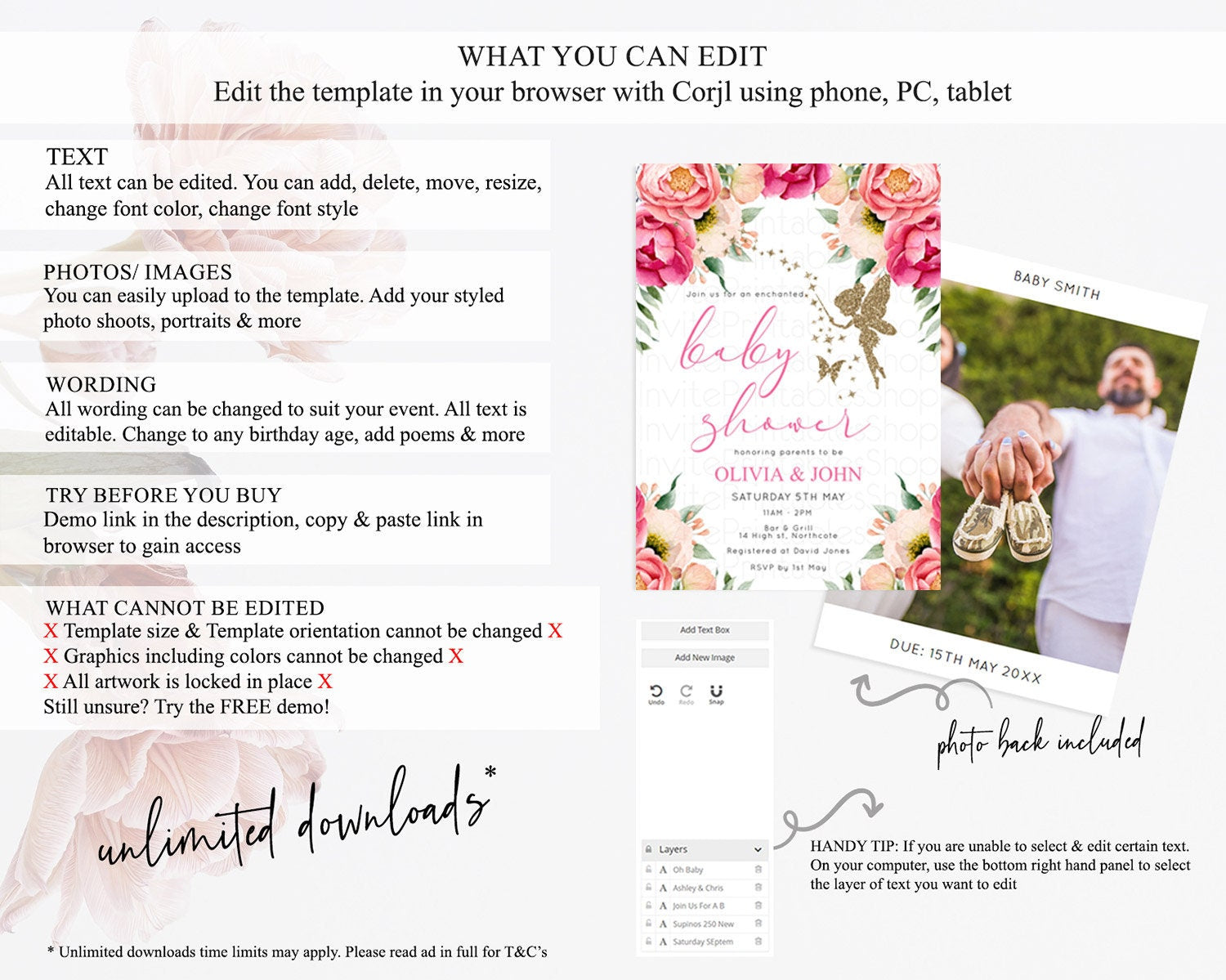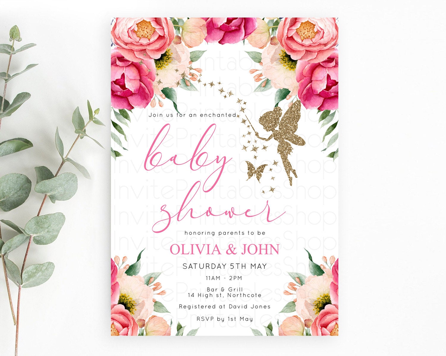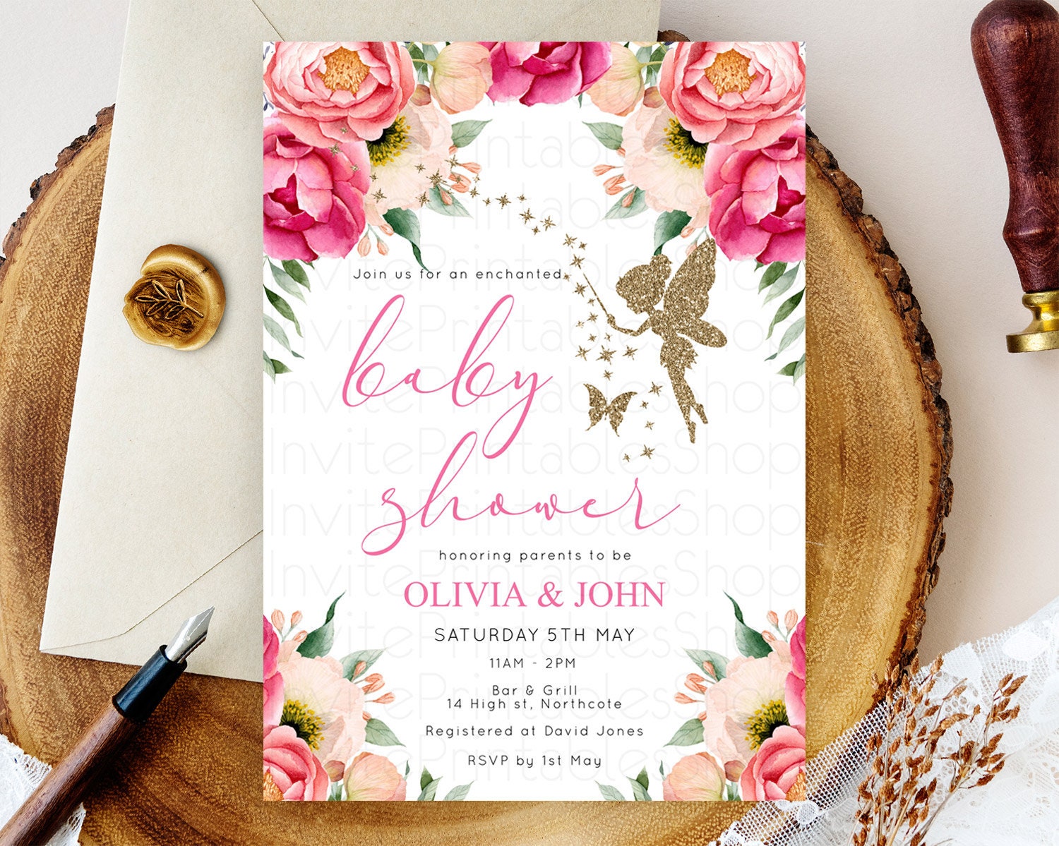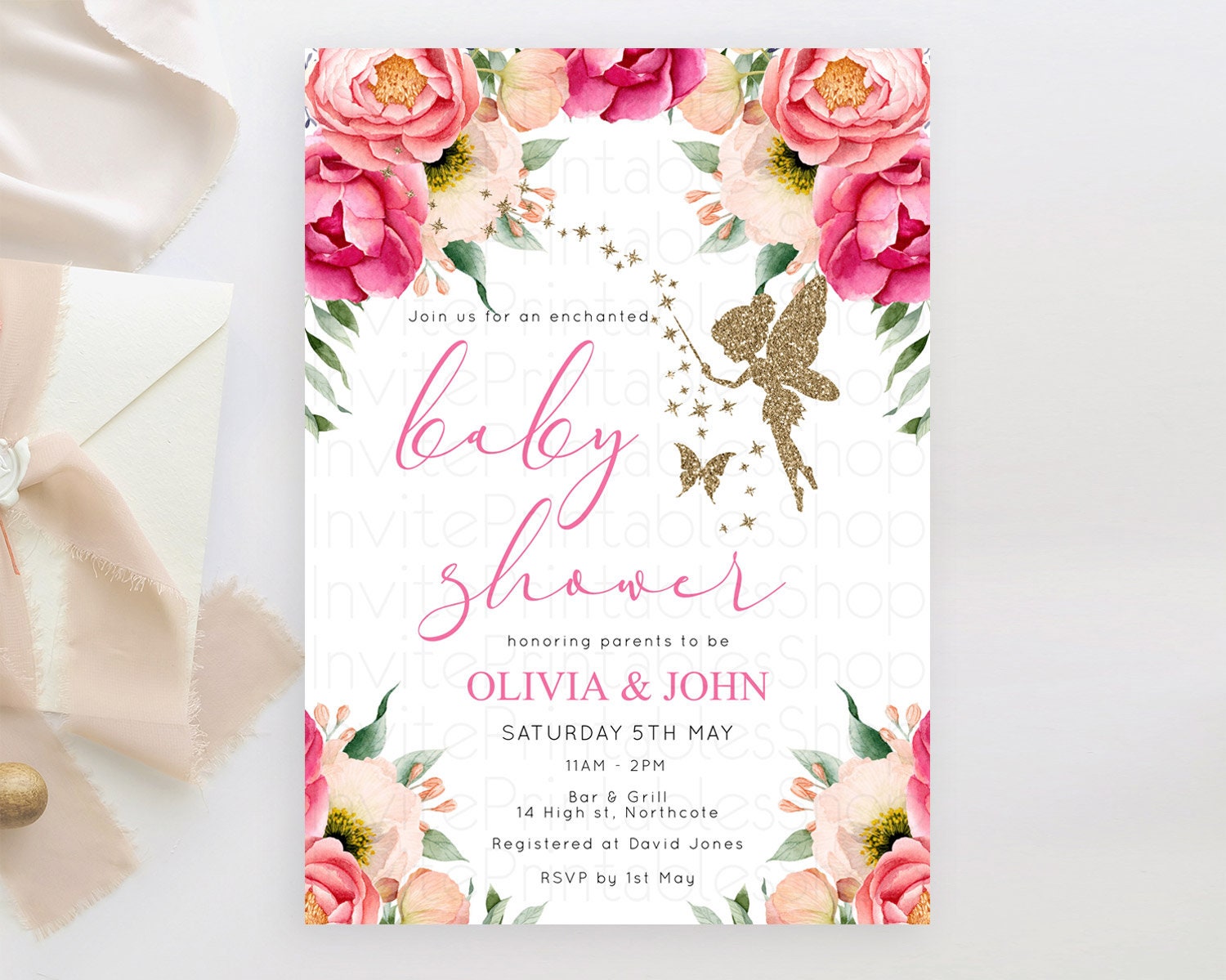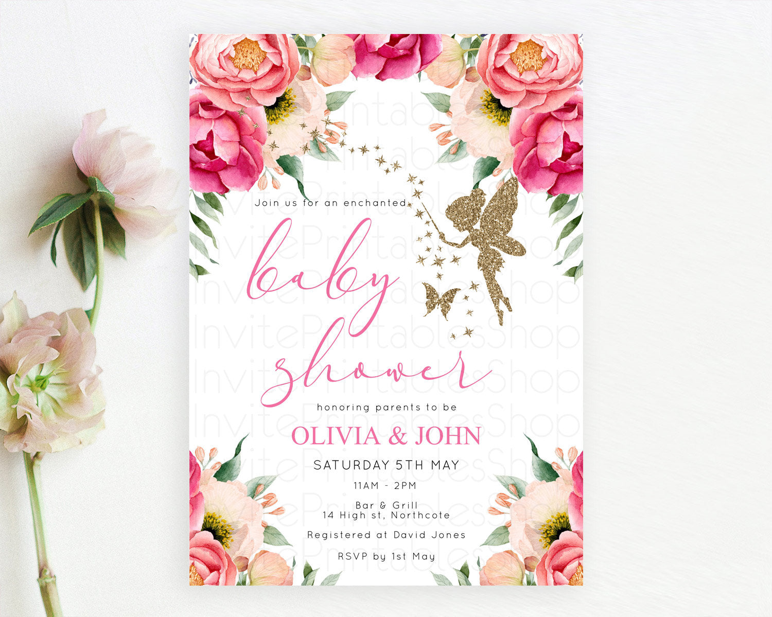 Fairy Baby Shower Invitation Pastel Fairy Invites Fairy Tea Party Fairy Garden Theme Secret Garden Enchanted Garden Floral Butterfly D10883