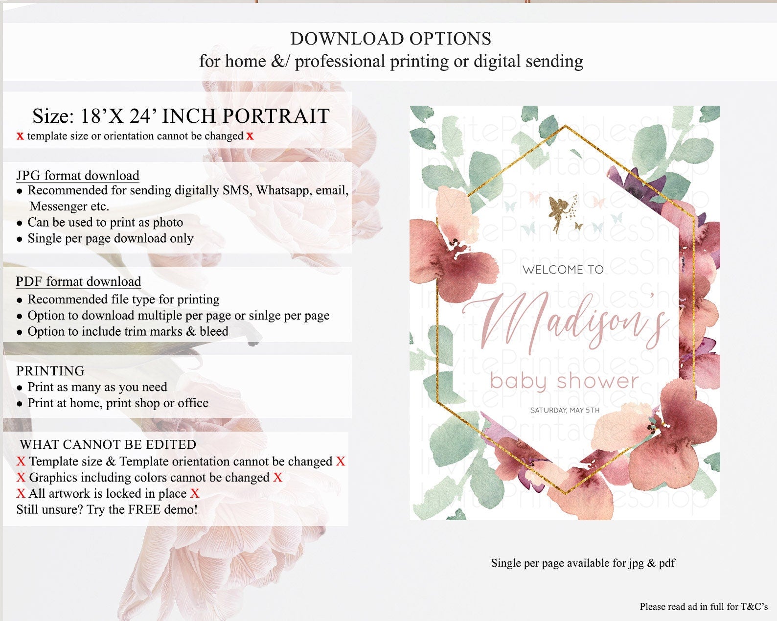 Fairy Baby Shower Welcome Sign Fairy Welcome Board Enchanted Garden Pastel Floral Butterfly Decor Secret Garden Fairy Welcome Sign D10460
