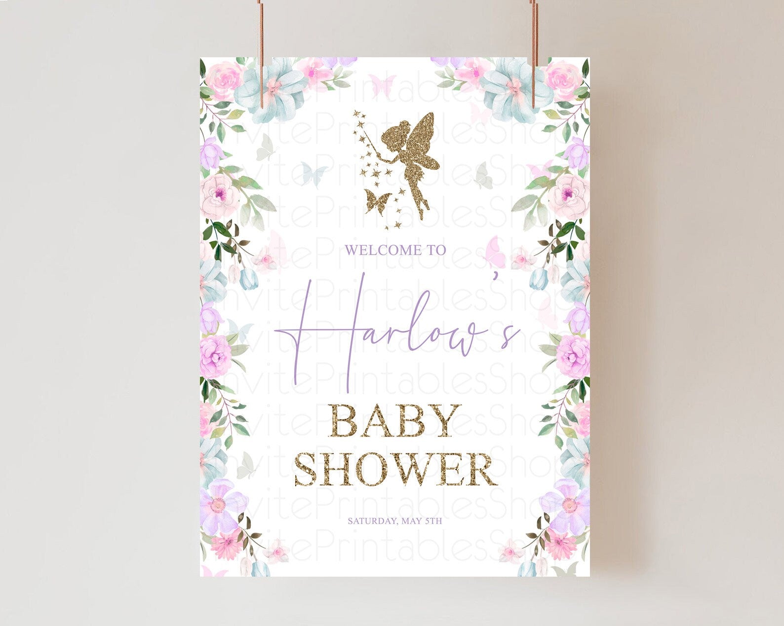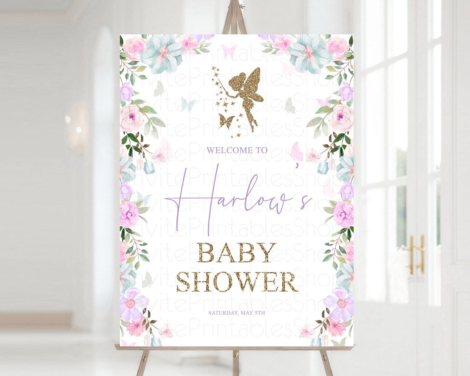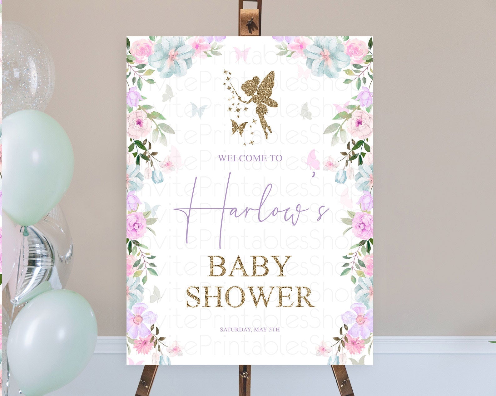 Fairy Baby Shower Welcome Sign Fairy Welcome Board Enchanted Garden Pastel Floral Butterfly Decor Secret Garden Fairy Welcome Sign D10475