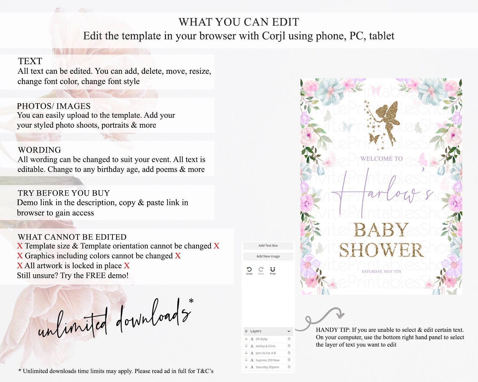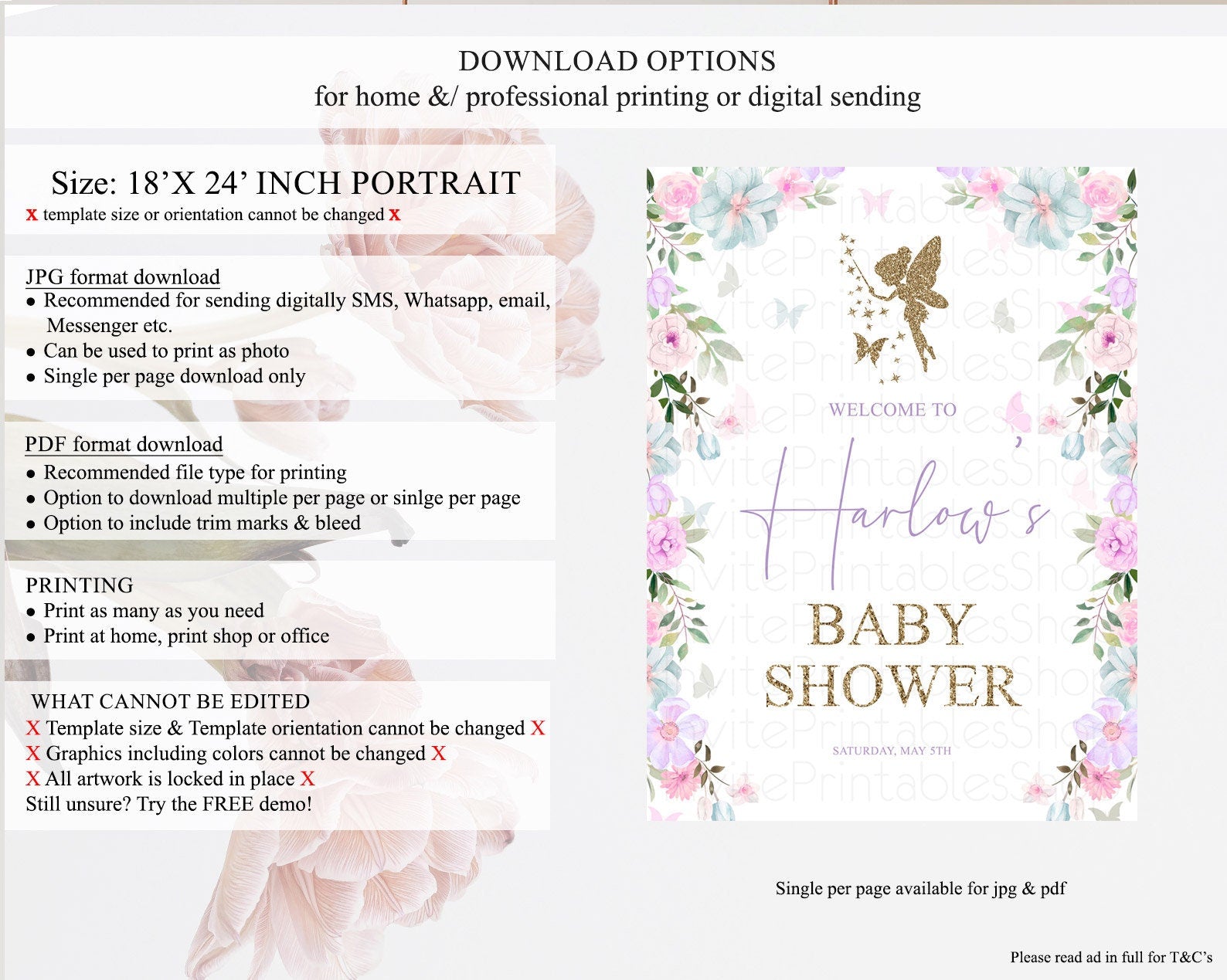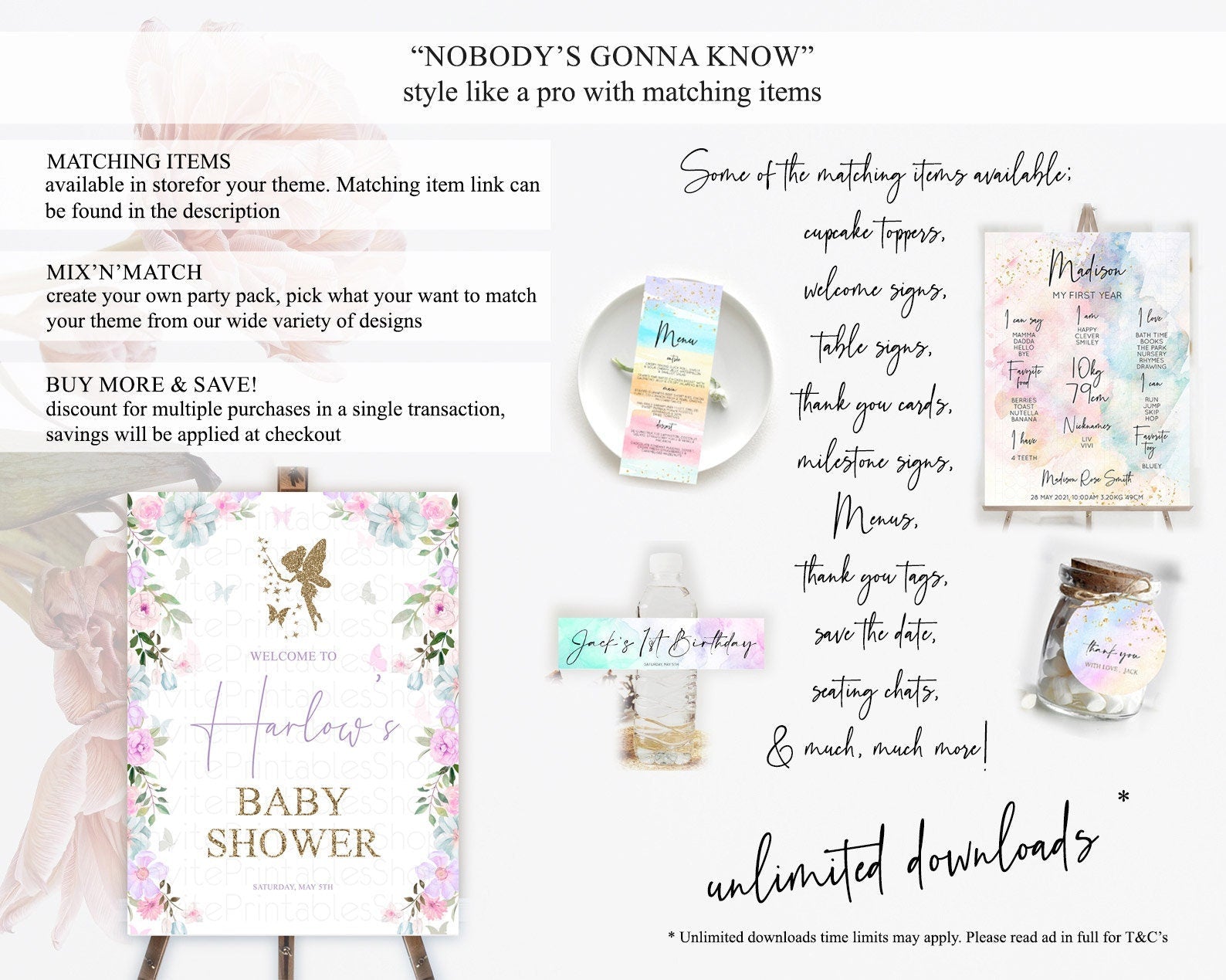 Fairy Baby Shower Welcome Sign Fairy Welcome Board Enchanted Garden Pastel Floral Butterfly Decor Secret Garden Fairy Welcome Sign D10475