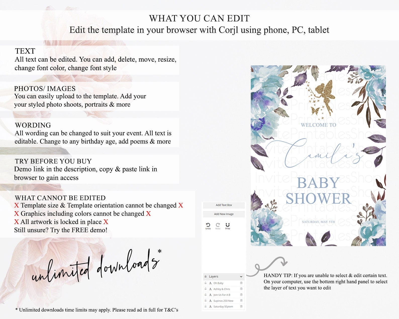 Fairy Baby Shower Welcome Sign Fairy Welcome Board Enchanted Garden Pastel Floral Butterfly Decor Secret Garden Fairy Welcome Sign D10728