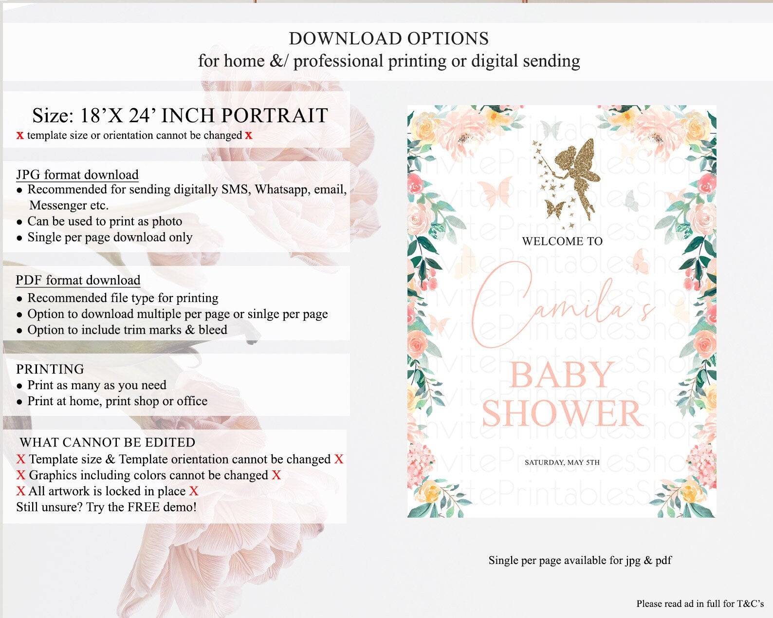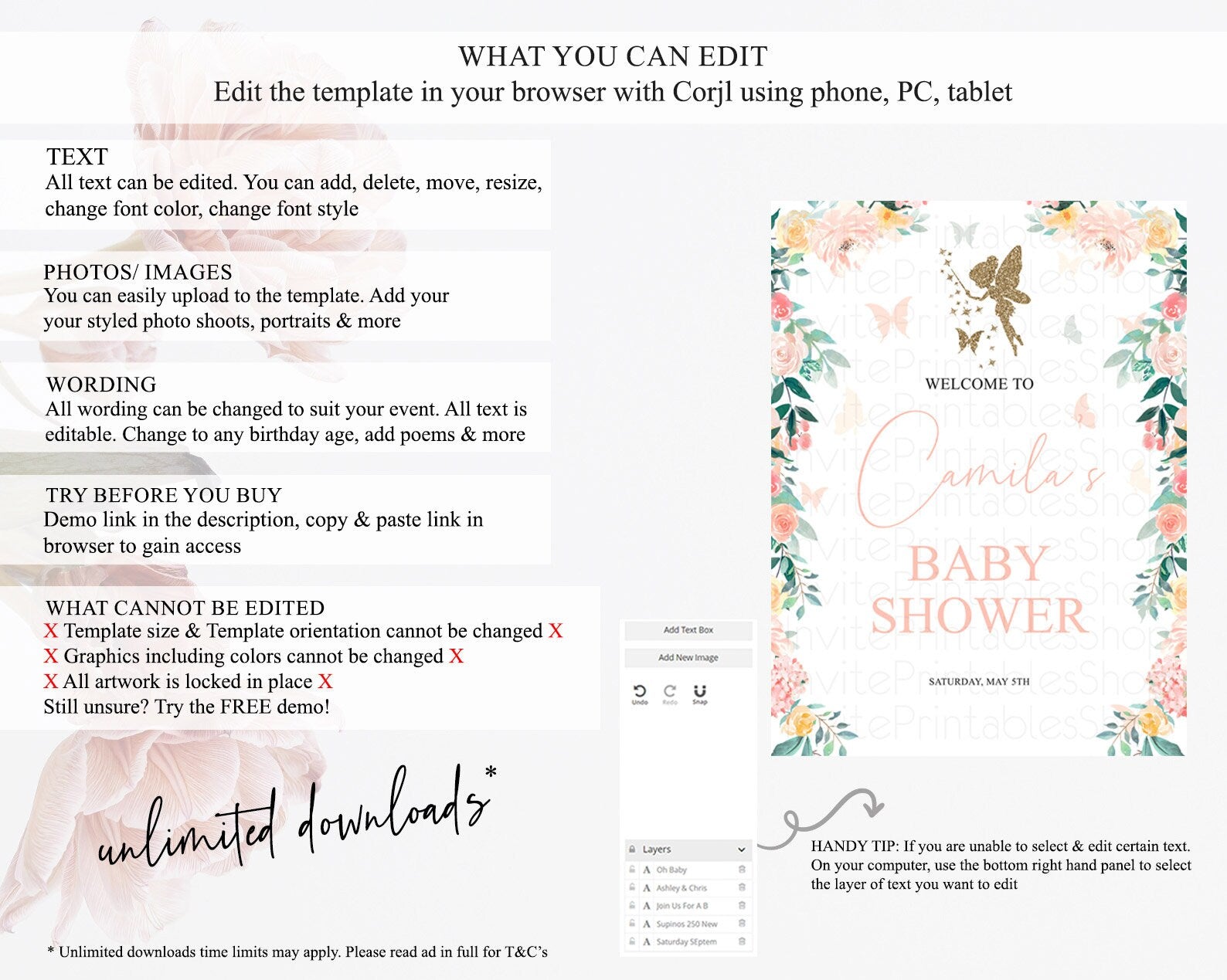 Fairy Baby Shower Welcome Sign Fairy Welcome Board Enchanted Garden Pastel Floral Butterfly Decor Secret Garden Fairy Welcome Sign D10789