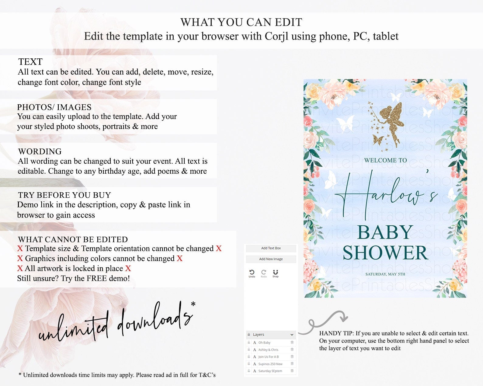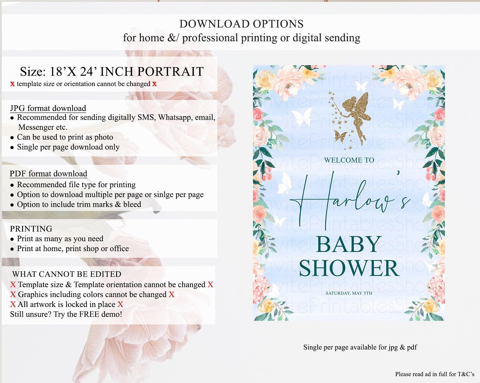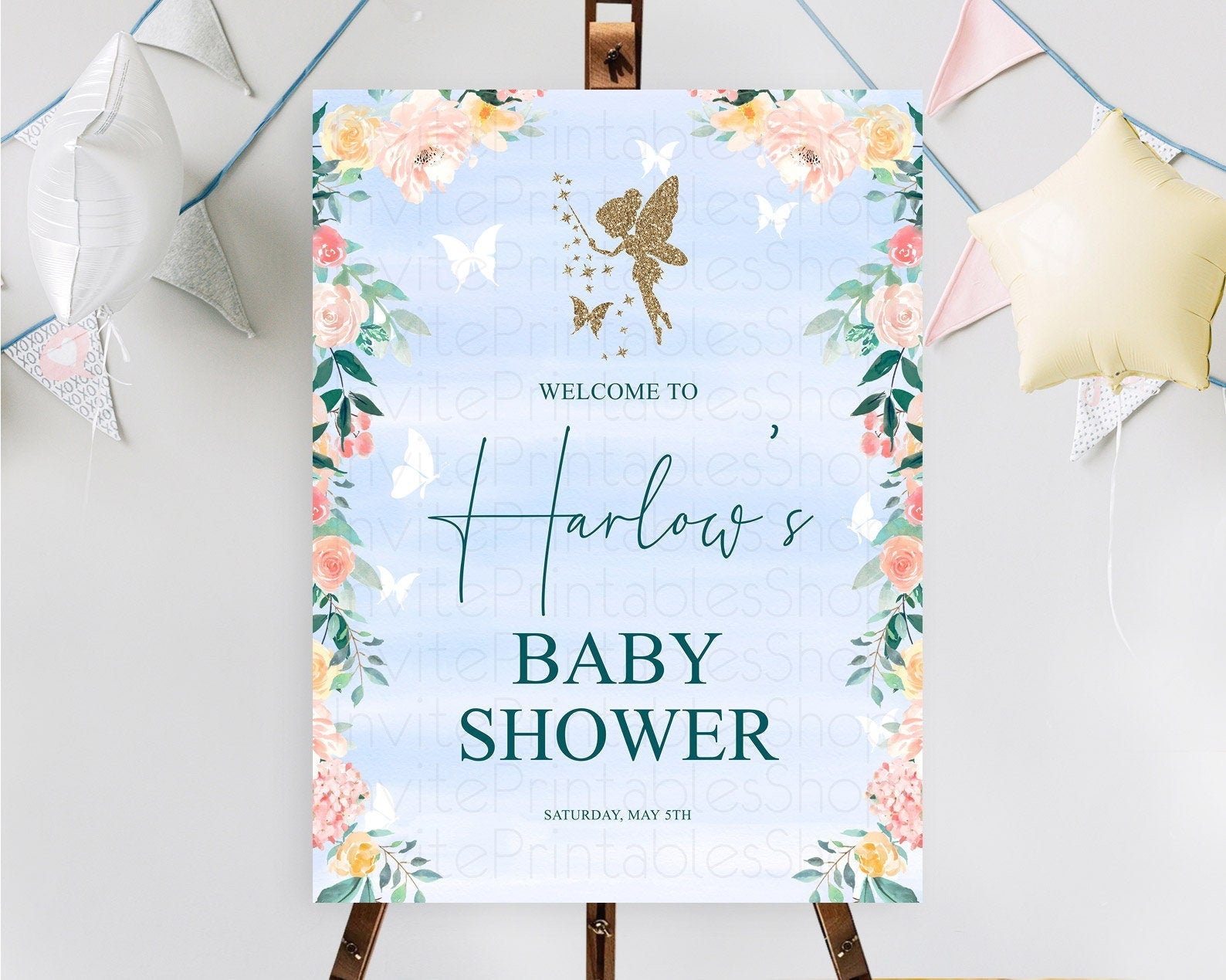 Fairy Baby Shower Welcome Sign Fairy Welcome Board Enchanted Garden Pastel Floral Butterfly Decor Secret Garden Fairy Welcome Sign D10794