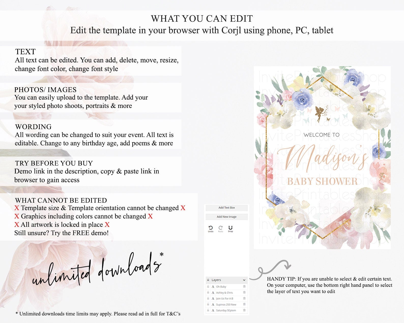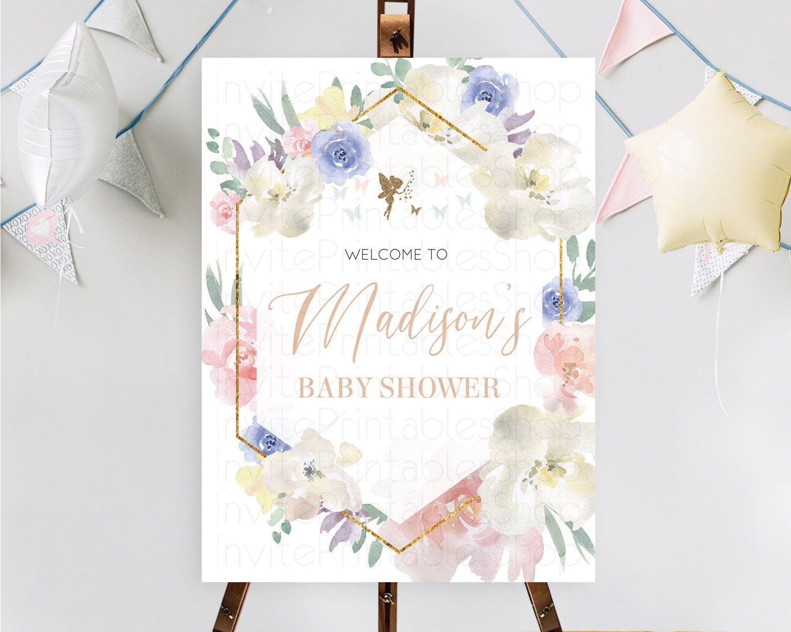 Fairy Baby Shower Welcome Sign Fairy Welcome Board Enchanted Garden Pastel Floral Butterfly Decor Secret Garden Fairy Welcome Sign D10829
