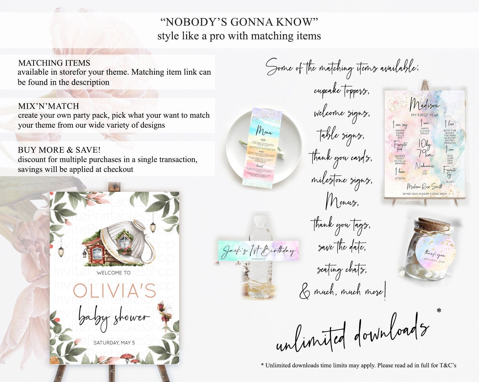 Fairy Baby Shower Welcome Sign Fairy Welcome Board Enchanted Garden Pastel Floral Butterfly Decor Secret Garden Fairy Welcome Sign D10851