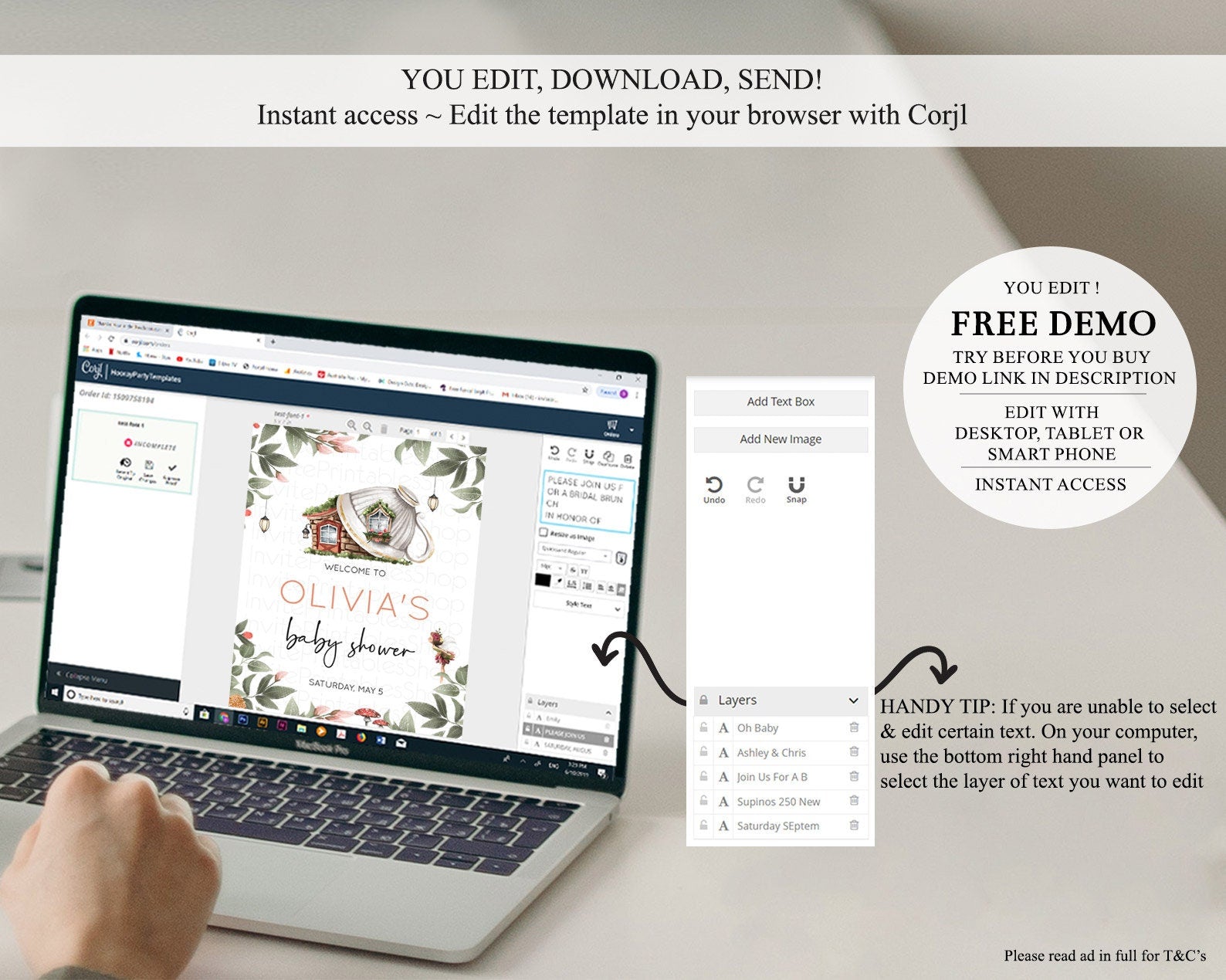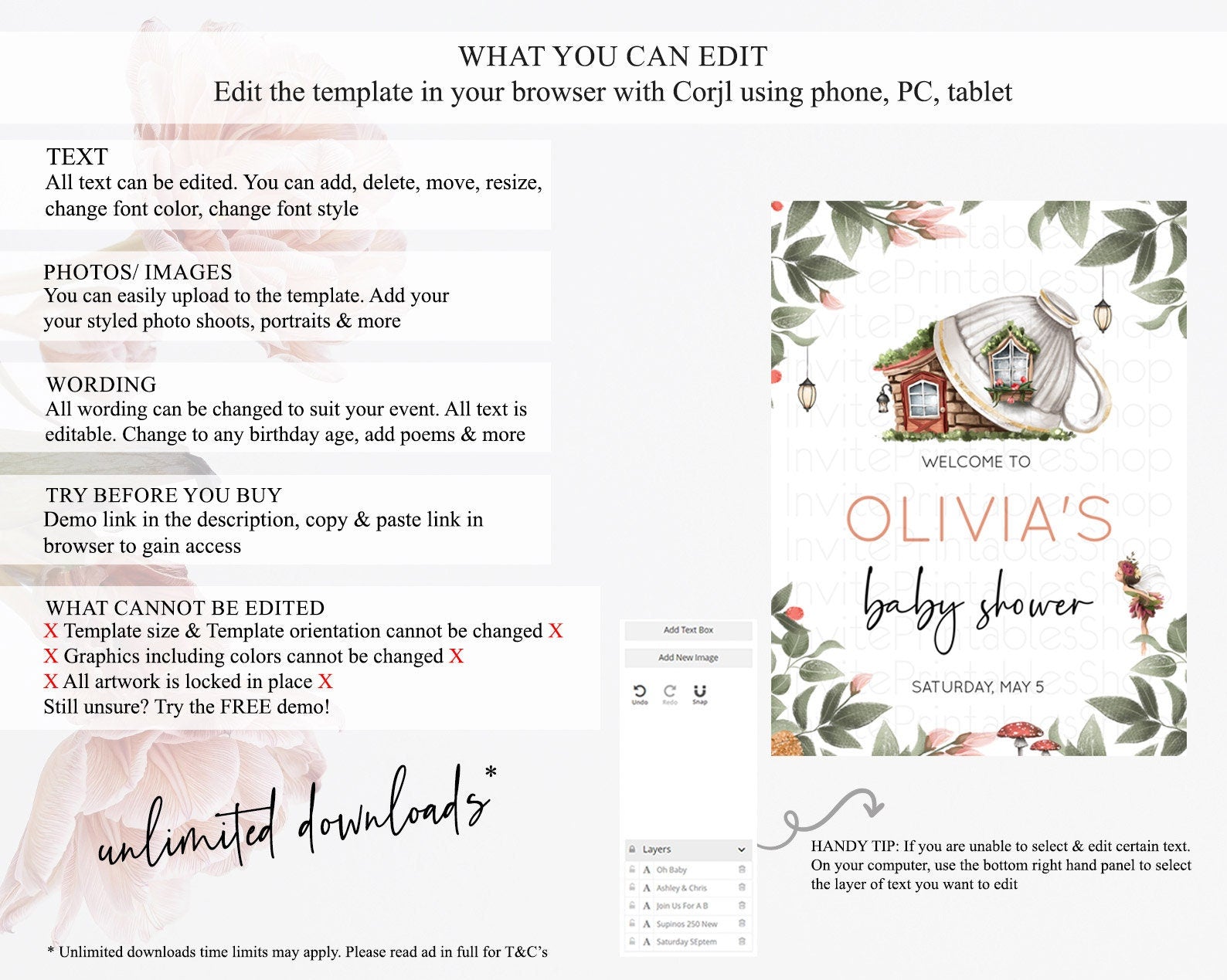 • After purchase, Corjl emails your editing link. Allow up to 15 minutes for delivery.