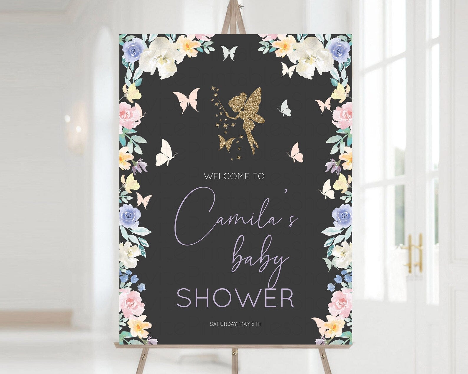 Fairy Baby Shower Welcome Sign Fairy Welcome Board Enchanted Garden Pastel Floral Butterfly Decor Secret Garden Fairy Welcome Sign D10881