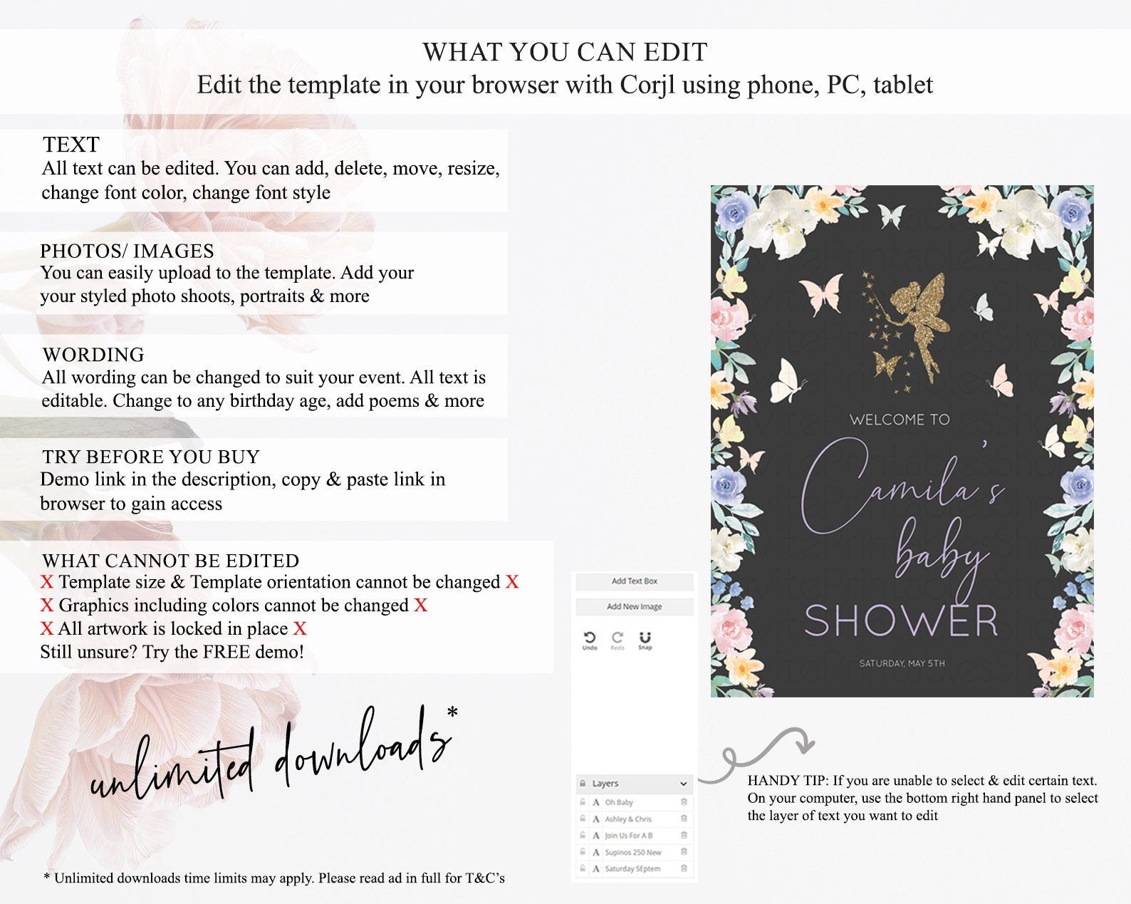 • After purchase, Corjl emails your editing link. Allow up to 15 minutes for delivery.