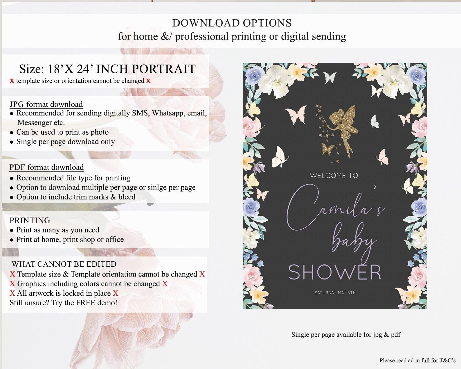 • Template size & orientation cannot be changed. Please use the demo link to confirm this product suits your needs.