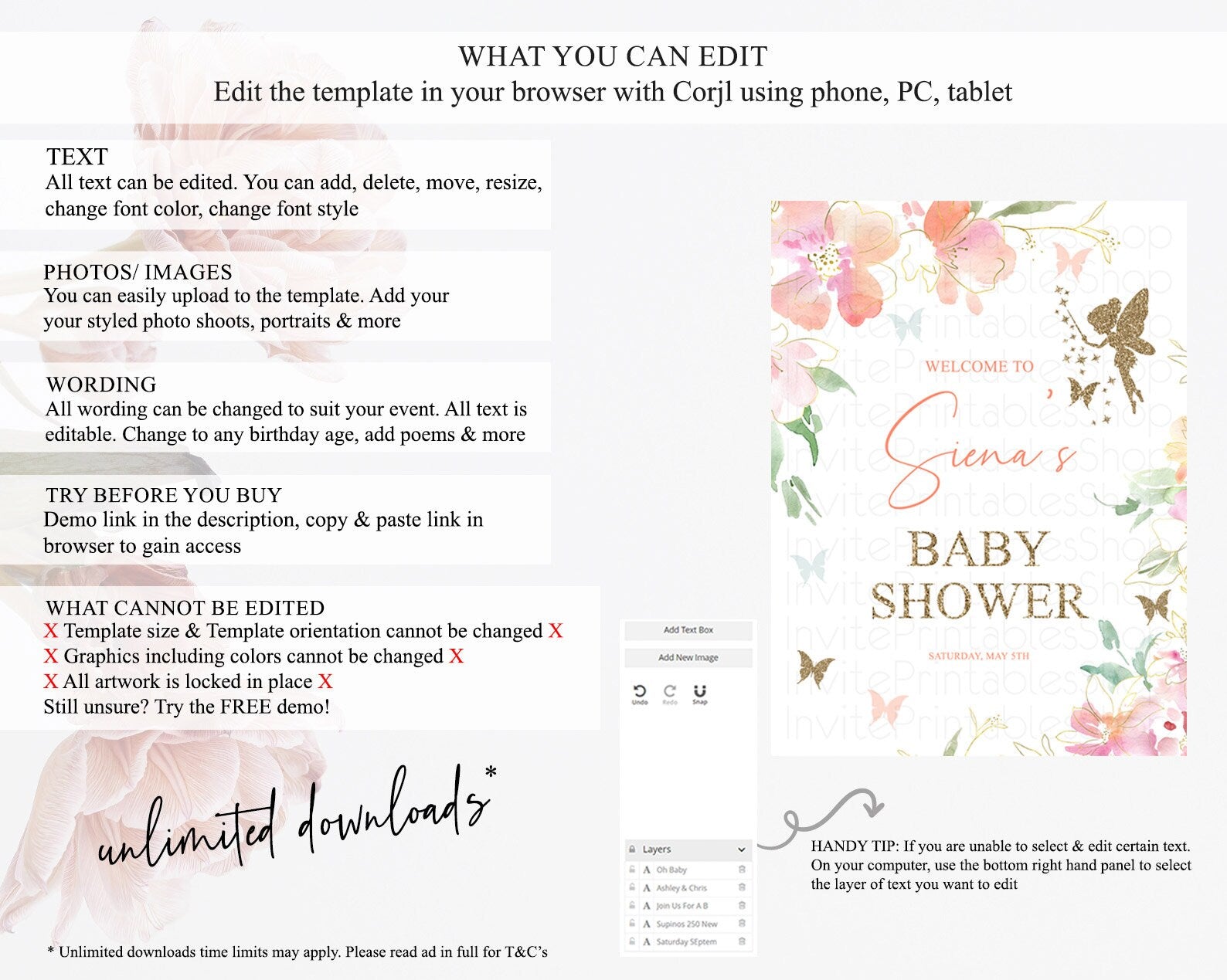 • After purchase, Corjl emails your editing link. Allow up to 15 minutes for delivery.