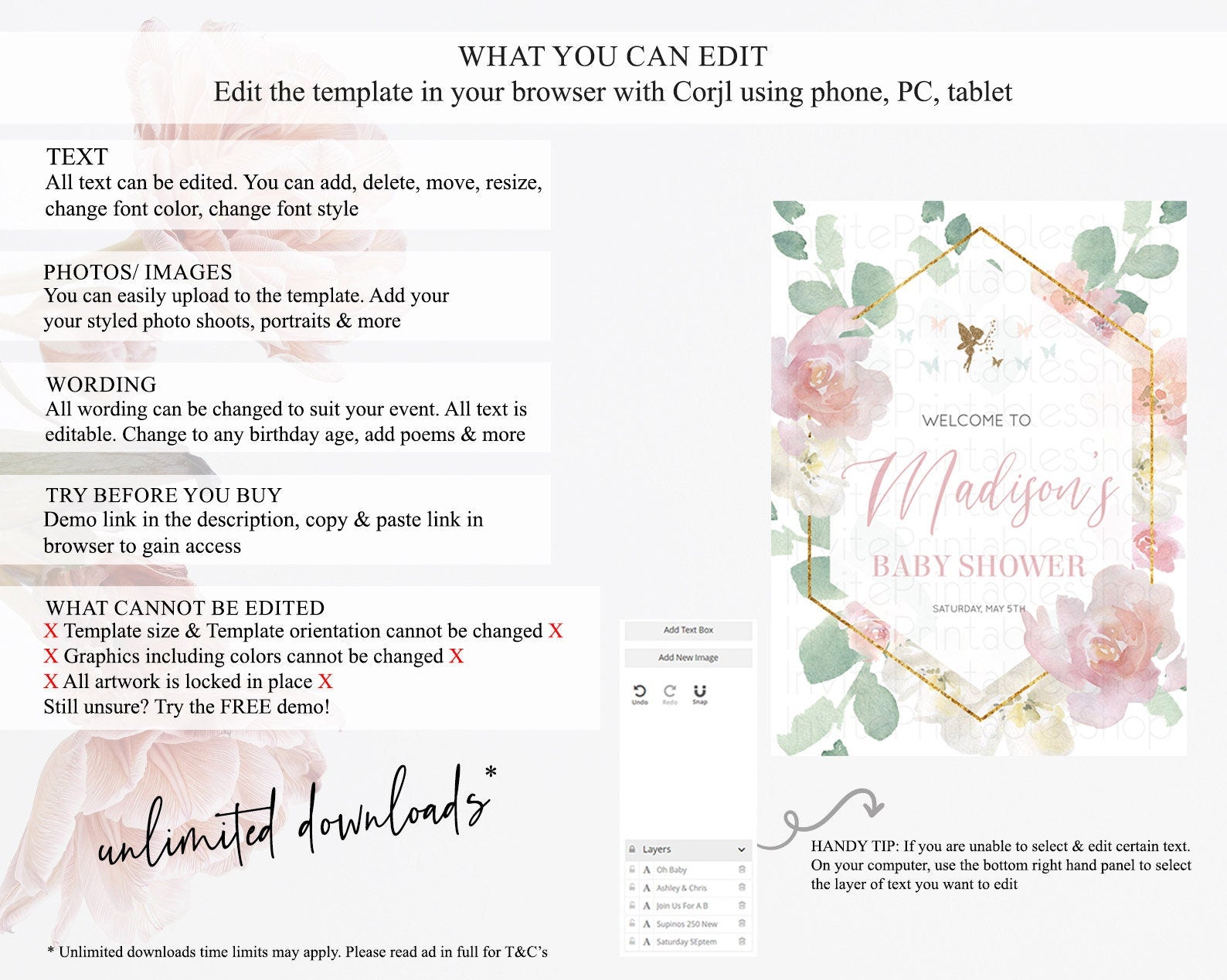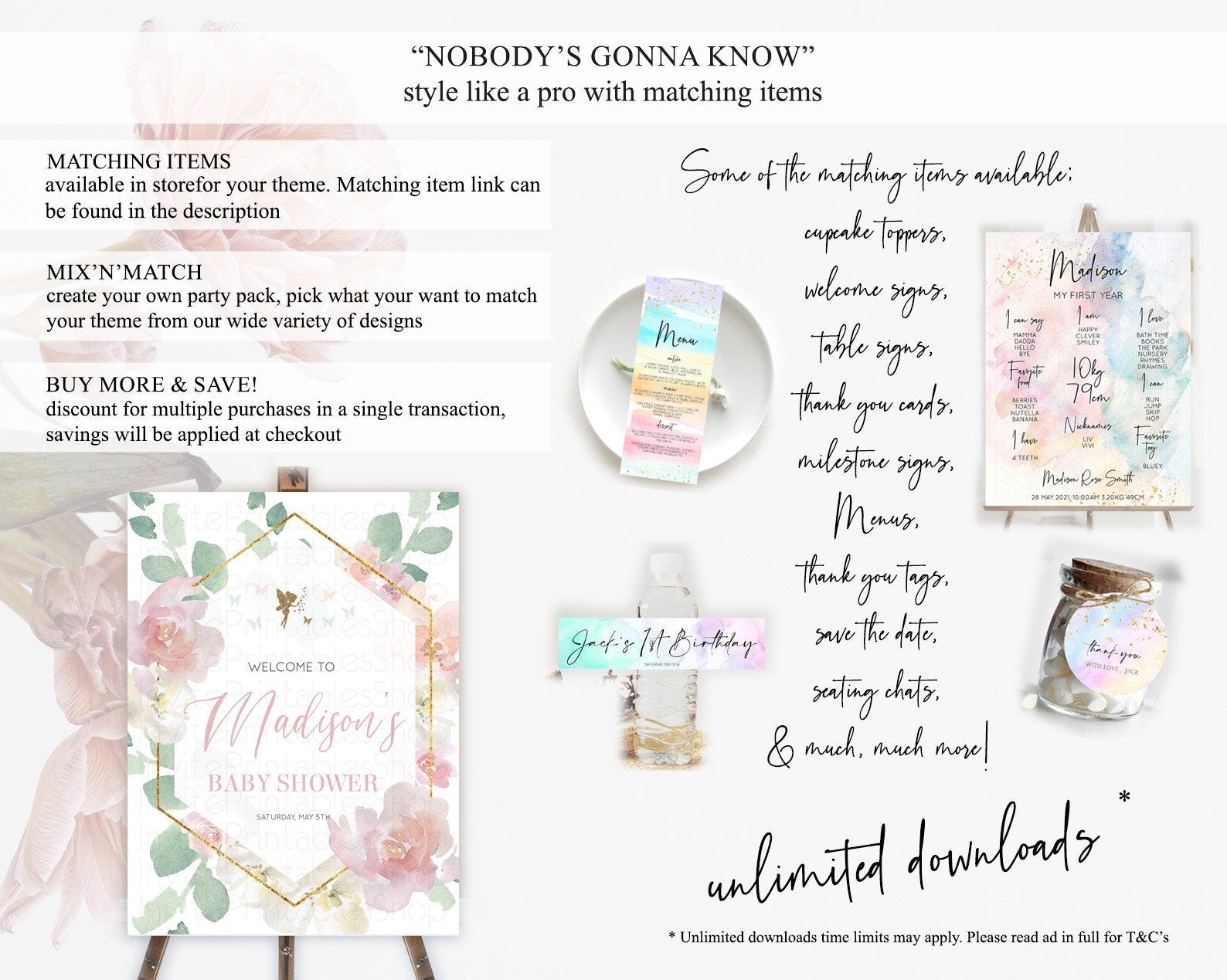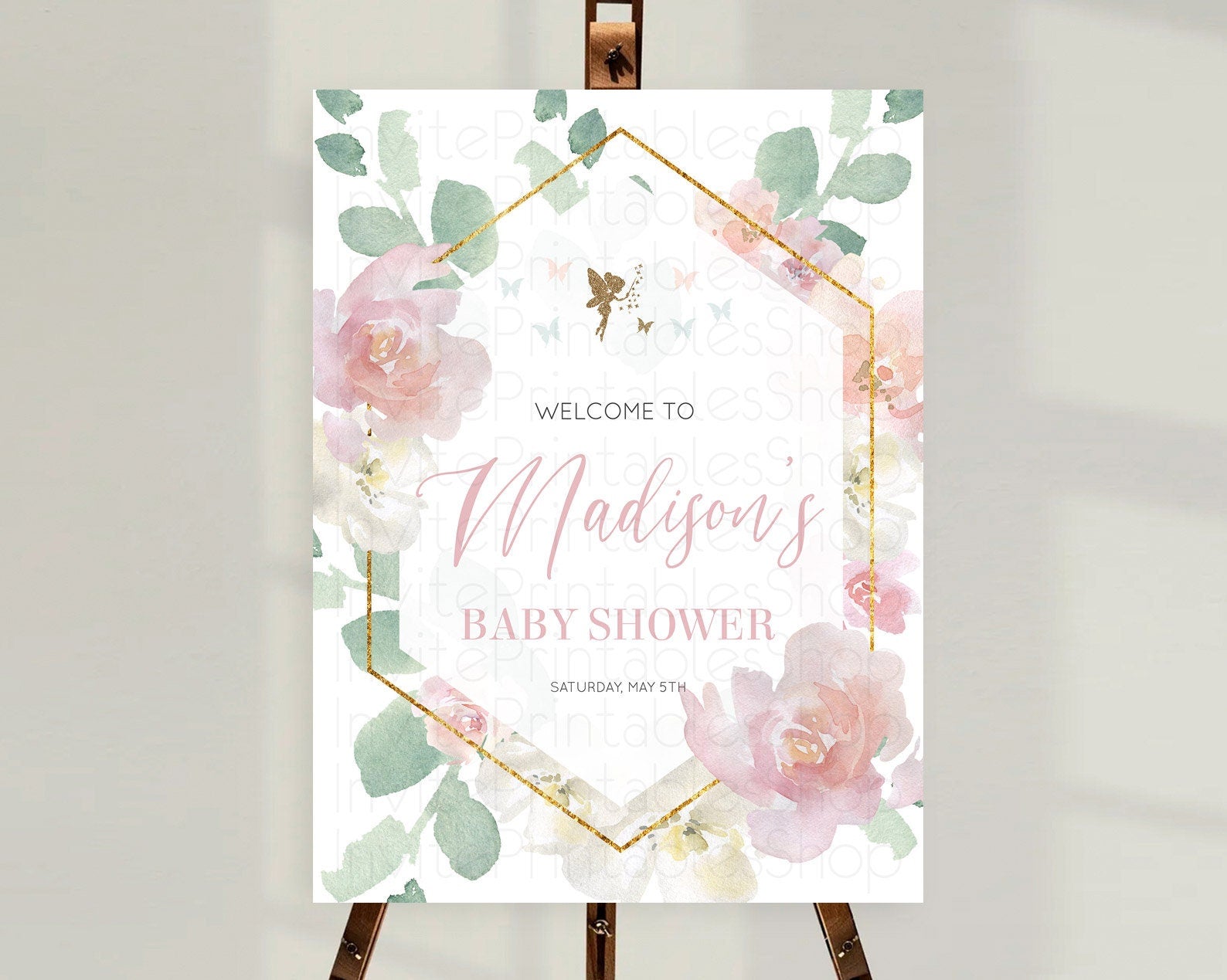 Fairy Baby Shower Welcome Sign Fairy Welcome Board Enchanted Garden Pastel Floral Butterfly Decor Secret Garden Fairy Welcome Sign D10965