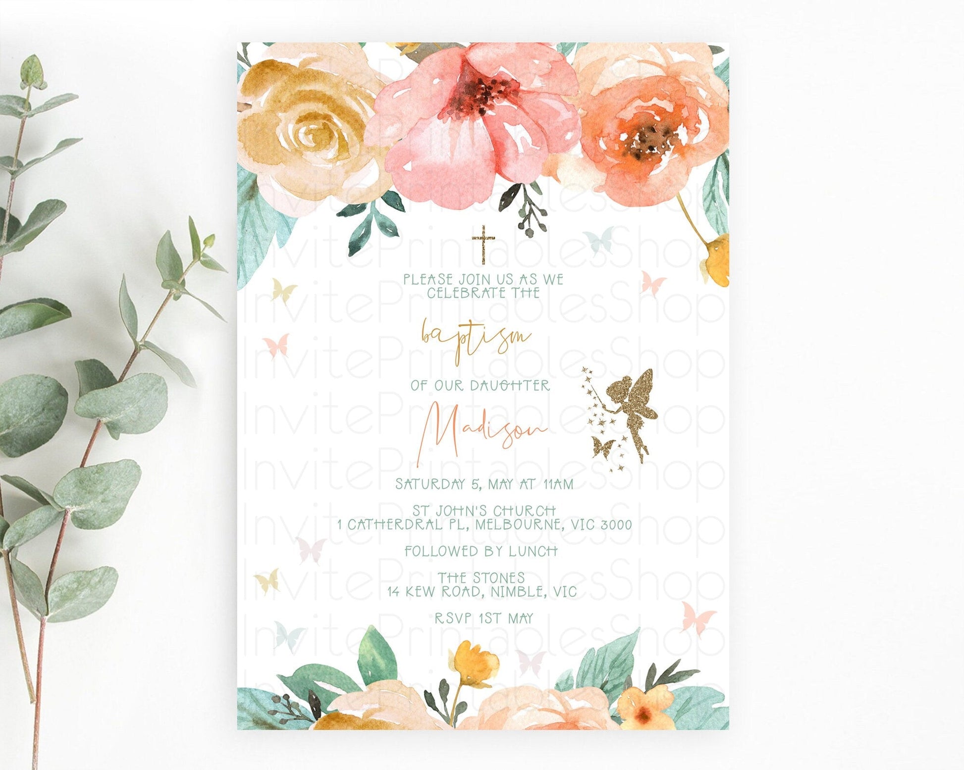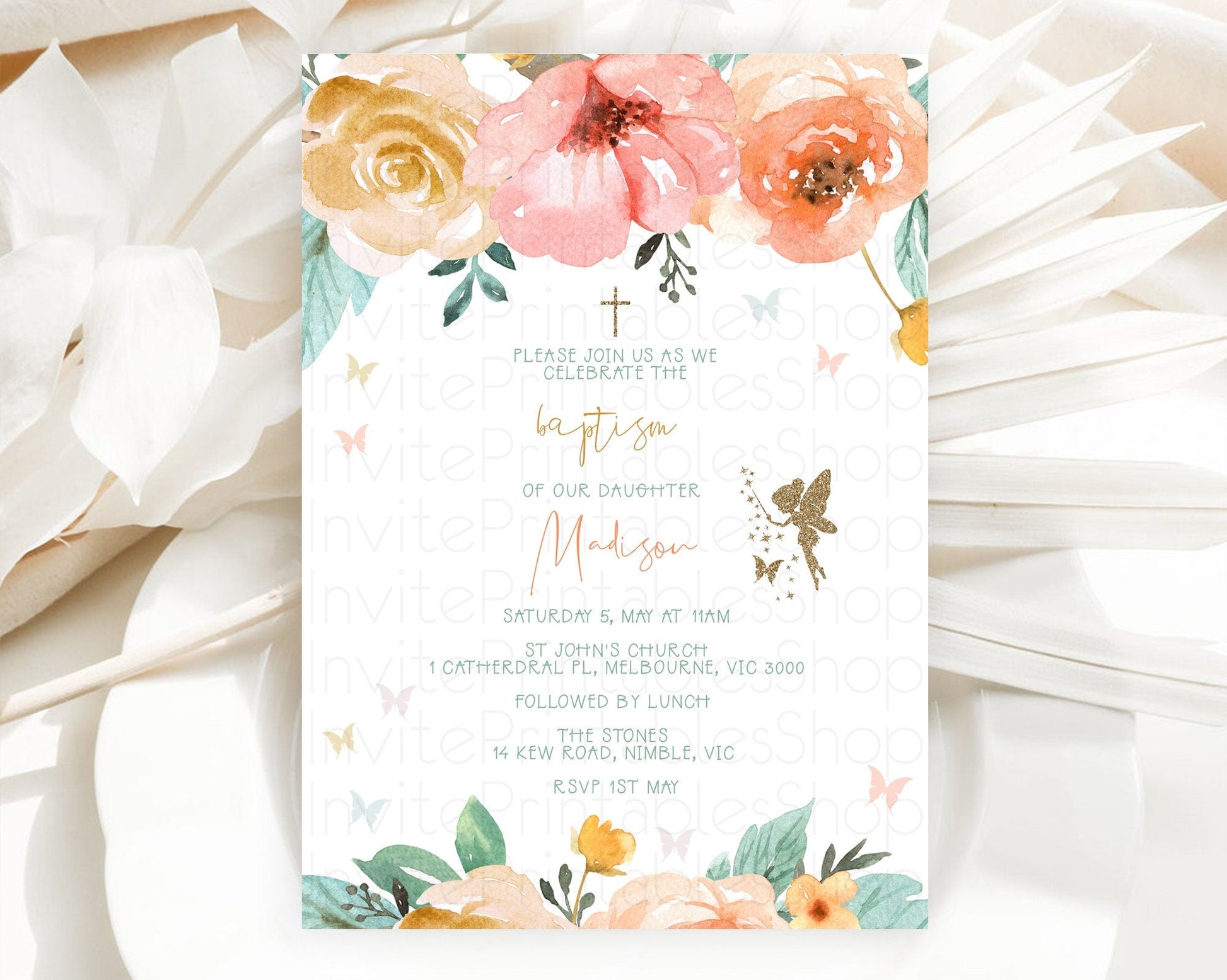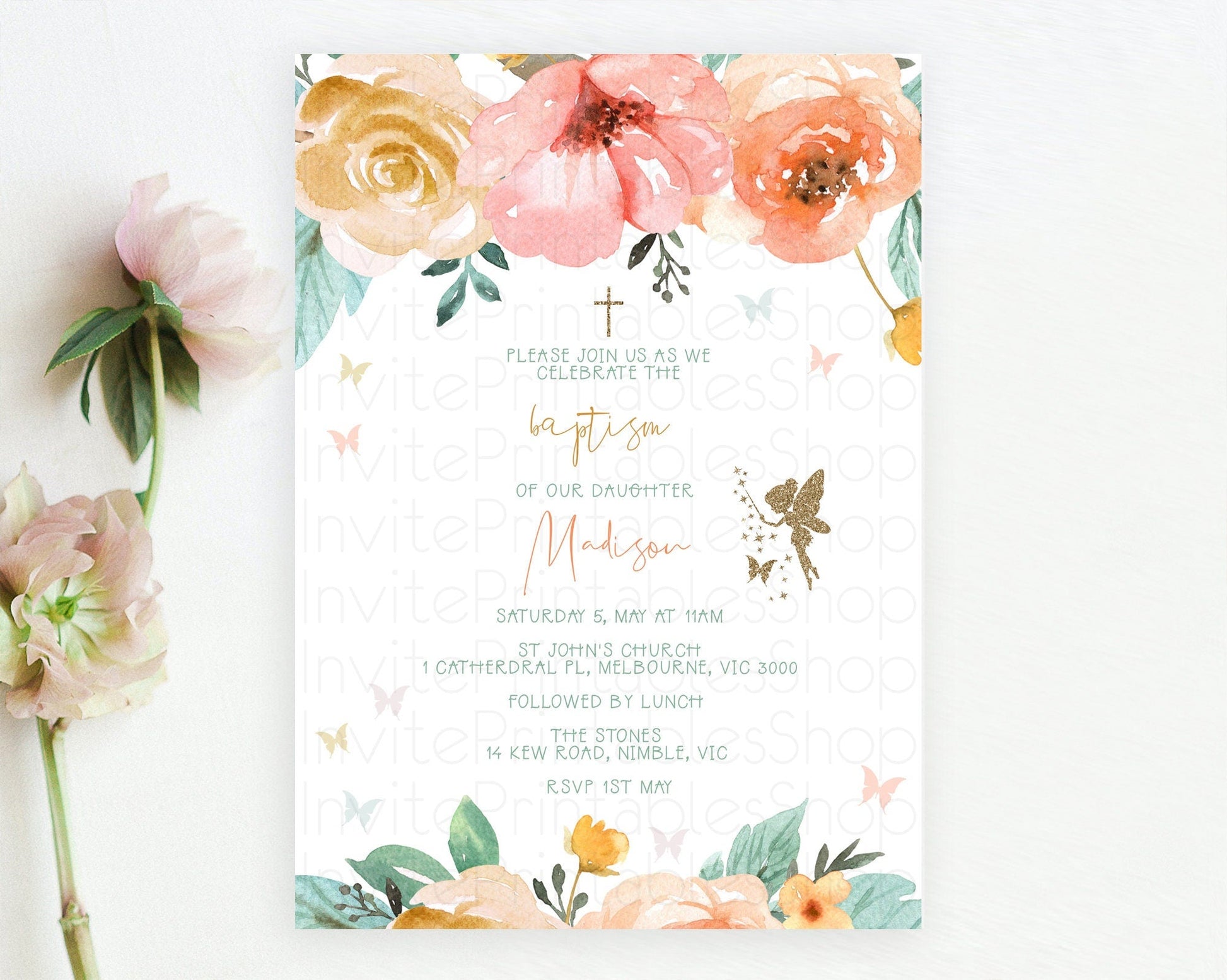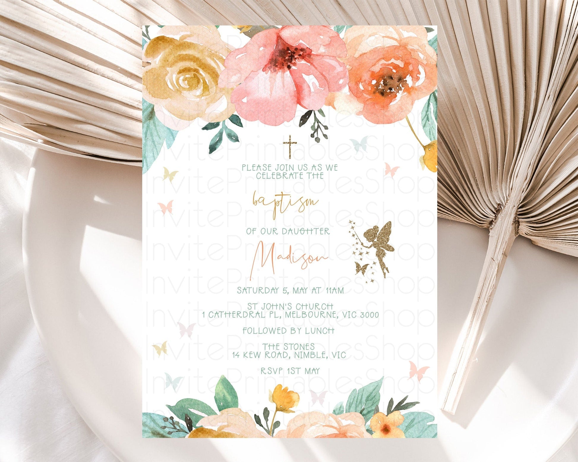 Fairy Baptism Invitation Fairy Baptism 1st Birthday Invitation Enchanted Secret Garden Christening Invite Pastel Floral Butterfly D10346