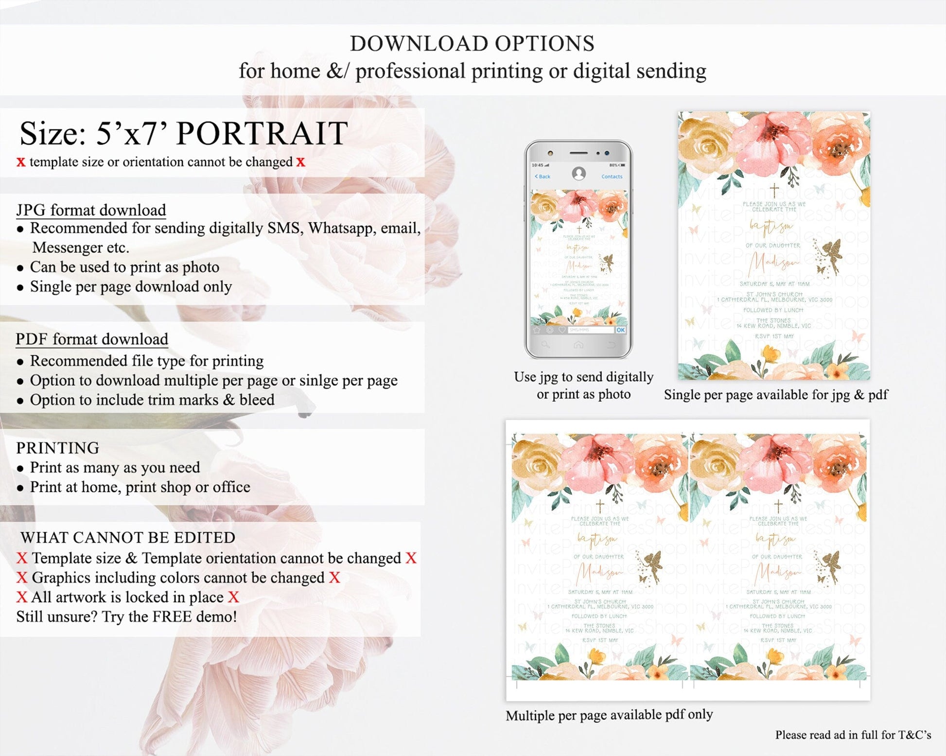 • Template size & orientation cannot be changed. Please use the demo link to confirm this product suits your needs.
